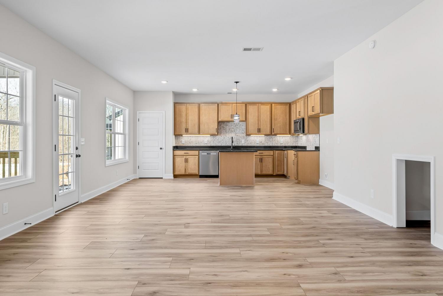 Welcome to the newest phase of Sycamore Hill, conveniently located just minutes from Gate 10 with quick access to Fort Campbell. This spacious three-bedroom home features an open-concept main living area and a generous bonus room, ideal for both everyday living and entertaining. The kitchen is thoughtfully designed with soft-close cabinetry and under-cabinet lighting. The primary suite showcases elegant coffered ceilings and a luxurious en-suite bath complete with a marble walk-in shower featuring dual shower heads and a glass enclosure, double vanities, and an expansive walk-in closet. The upstairs laundry room adds convenience to your daily routine. Designed with ample storage in mind, the home includes a pantry, two linen closets, a coat closet, and a large under-stair storage closet—perfect for bulk items or cleaning supplies. A dedicated pet nook provides a cozy space for your furry companions. Additional features include a 10-foot parking pad to the right of the garage, offering extra parking space. The builder is currently offering a $20,000 buyer incentive with a full-price contract.
