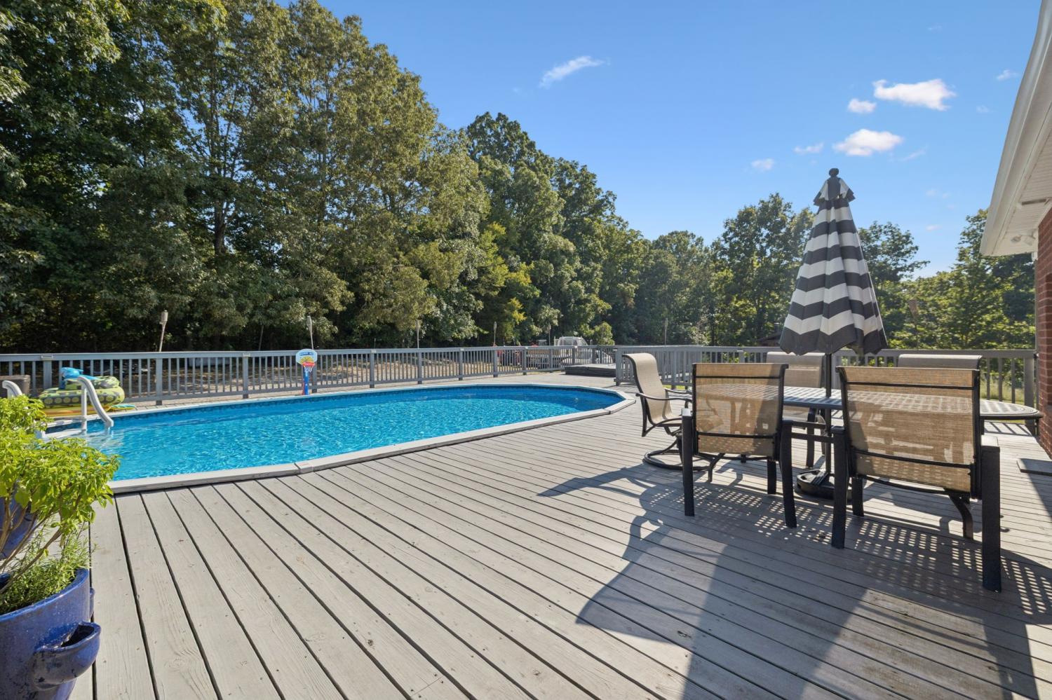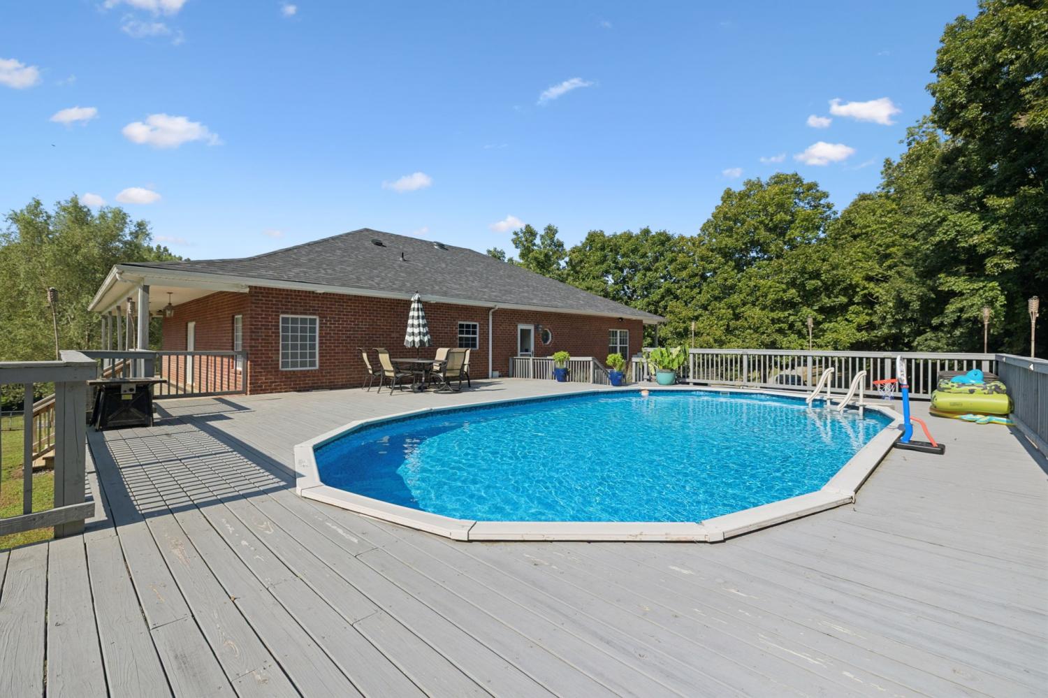 C M DUCKS!? Welcome to the farm! With a recently remodeled master bath and fresh paint throughout main floor, this beautiful home has room for everyone including the cows, goats and chickens~high ceilings throughout~granite & cooktop in kitchen~new hvac & water heater~large wrap around deck to sit back relax and enjoy your own piece of paradise~above ground pool w large deck and hot tub great for entertaining~basement recently remodeled for extra space~wood boiler for backup heat~and bring your fishing pole for the stocked pond