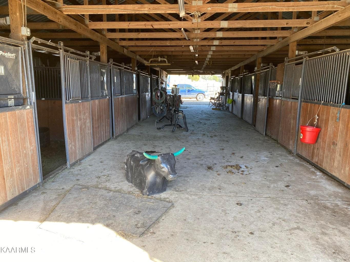 Farm living never looked so good! This turnkey 19.52 acre horse property features level to gently rolling pastures with stunning mountain views. The 90x60 barn offers 5 stalls (expandable to 10), plus a tack room, feed room, and wash bay. A 90x16 overhang provides additional storage for equipment and toys. Riders will love the 270x150 outdoor arena with sand/dirt footing, while automatic waterers in every pasture make chores a breeze. The 1836 sqft home on a permanent foundation includes 3 bedrooms and 2 bathrooms. The spacious primary suite features a walk-in shower, dual vanities, soaking tub and a large closet. Upgrades include LVP flooring throughout and a metal roof installed in 2021. Enjoy the expansive deck for sunrises, grilling, or cool off in the above ground pool on summer days. All tucked away in a private setting, yet less than an hour from Knoxville.