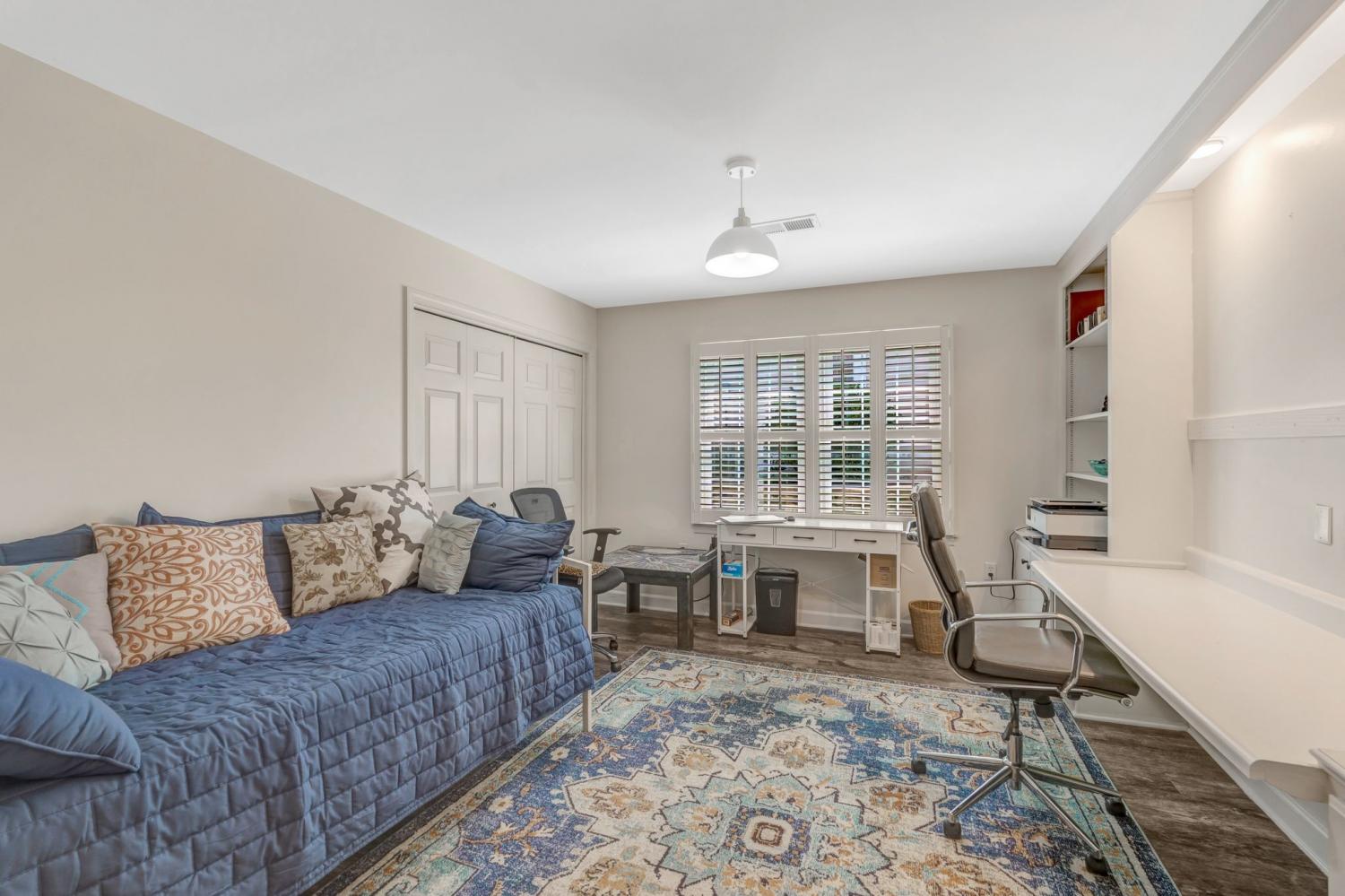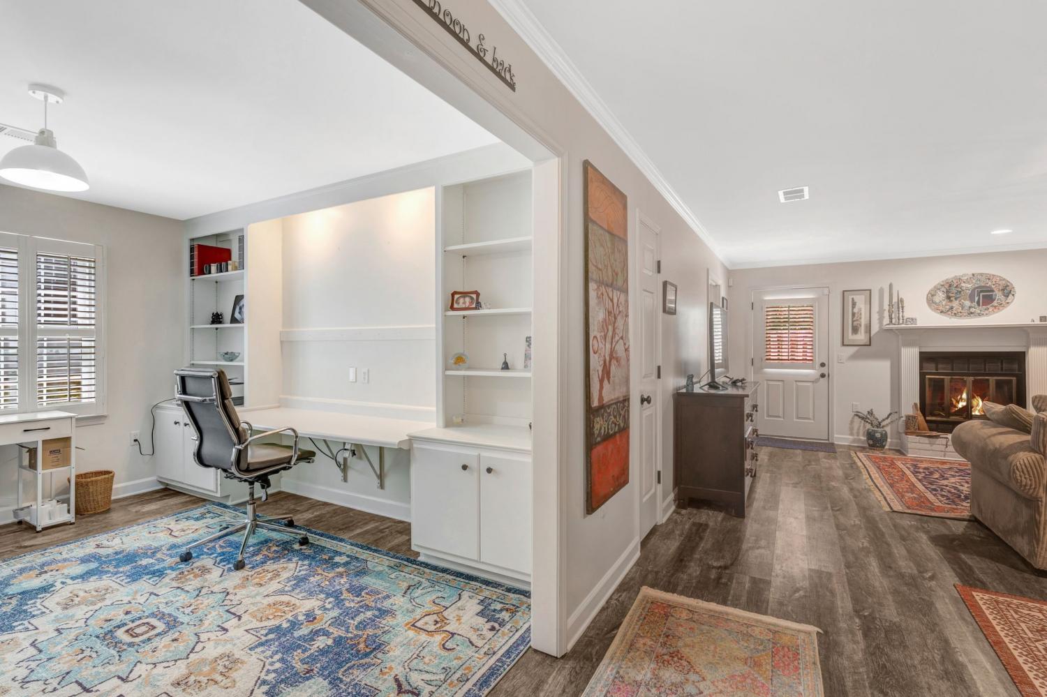Easy living awaits at this recently updated 3BD/2BA garden condo located at The Cloister at St. Henry, a 55+ community. Details like the walkable lot, one-level living & low-maintenance, move-in-ready home make for stress-free homeownership. Recently remodeled, the condo features new A/C, new floors & fresh paint. Convenience sets the tone the moment you enter. A guest bedroom is located near the front entry & a bathroom w/ new tile & vanity is just down the hall. A few steps further is the updated galley-style kitchen boasting new Carrara style marble countertops, subway tile backsplash, stainless steel gas range & microwave. A convenient serving window connects the kitchen to the dining area. Across from the kitchen, a naturally lit study features wall-to-wall custom built-ins & plenty of room to stage the space as a 3rd bedroom. Plantation shutters adorn windows throughout. A few steps from the study is the dining/living area, accented by a gas fireplace & entry to the patio/yard. The primary suite is also nearby, larger than the average bedroom & presenting w/ 2 private closets & an en suite bath. The primary suite bath has new tile, vanity & a new full-glass, zero-entry shower. Outdoors, owners enjoy all the benefits of a private oasis with none of the upkeep. Take in the front gardens from the covered front porch, or soak up the sun on the fenced back patio. Level walking areas around, into & throughout the home make mobility a breeze, & the attached garage means convenient grocery unloads no matter the weather. The Cloister at St. Henry is one of the most desirable communities in Nashville, granting residents & their guests access to walkable sidewalks on every street, a private clubhouse, heated pool, nature trails & frequent planned social activities. The HOA fee includes basic cable TV, lawn mowing, exterior maintenance, & trash pickup, meaning all one has to do is move in & start enjoying the good life at this coveted Belle Meade location.