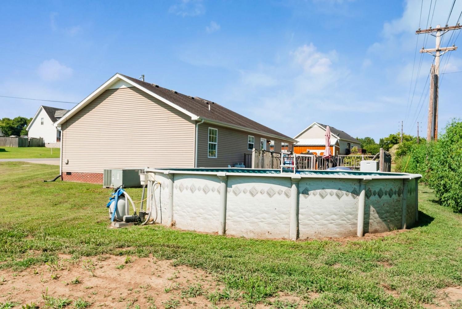 Excellent Location! Just 3 miles from I-65, this charming home is nestled in a quiet, small subdivision with no HOA restrictions. The property includes two spacious lots, offering plenty of potential for future expansion or outdoor enjoyment. Inside, you’ll find beautiful hardwood floors throughout—no carpet in sight! Fresh paint gives the home a clean, updated feel. Enjoy outdoor living with two large back decks and a 24-foot round above-ground pool—perfect for entertaining or relaxing with family and friends. Don’t miss this rare opportunity in a peaceful, convenient location!