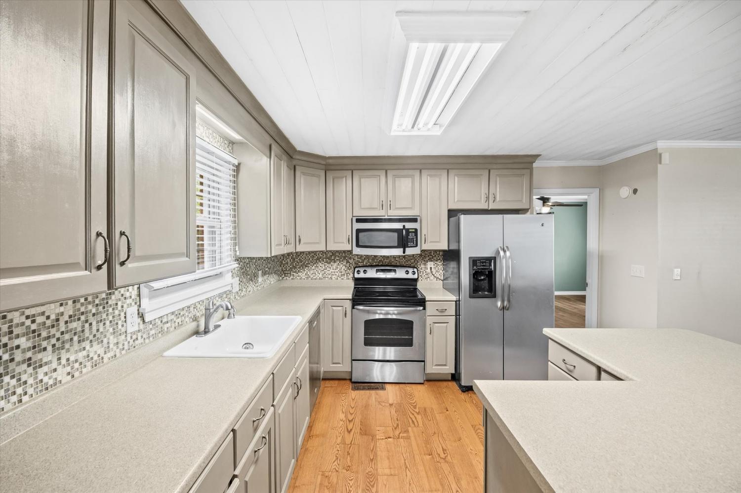 A ranch retreat nestled on a spacious 0.74-acre lot in a quiet, well-established neighborhood. Built in 1980, this single-level home offers over 2,100 square feet of comfortable living space with 4 bedrooms and 2.5 bathrooms. Inside, you'll find a warm and inviting living area anchored by a beautiful gas-log fireplace, perfect for cozy evenings or hosting guests. The home’s layout is both functional and flexible. One of the standout features of this property is the spacious screened-in back porch with vaulted ceilings. Whether you're enjoying morning coffee, reading a book, or entertaining friends, this outdoor space offers a perfect blend of comfort and connection to the surrounding wooded landscape. Located in the backyard, you'll find an adorable playhouse. The finished basement adds even more flexibility, ideal for a media room, hobby space, or home office, and the oversized two-car garage provides ample storage. Located just minutes from downtown Cookeville and with easy access to I-40, you're never far from shopping, dining, or outdoor recreation—including nearby Burgess Falls State Park and a brand new Target being built. With its combination of thoughtful updates, natural beauty, and quiet surroundings, 1575 Rosebank Avenue is a place you’ll love to call home. Brand new roof! ADT System throughout.