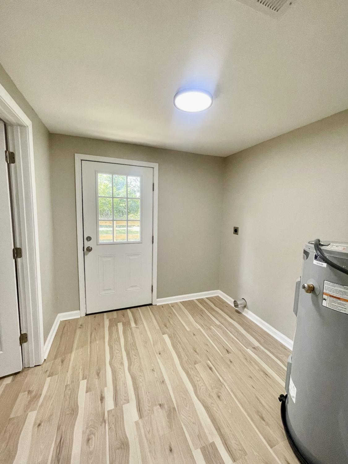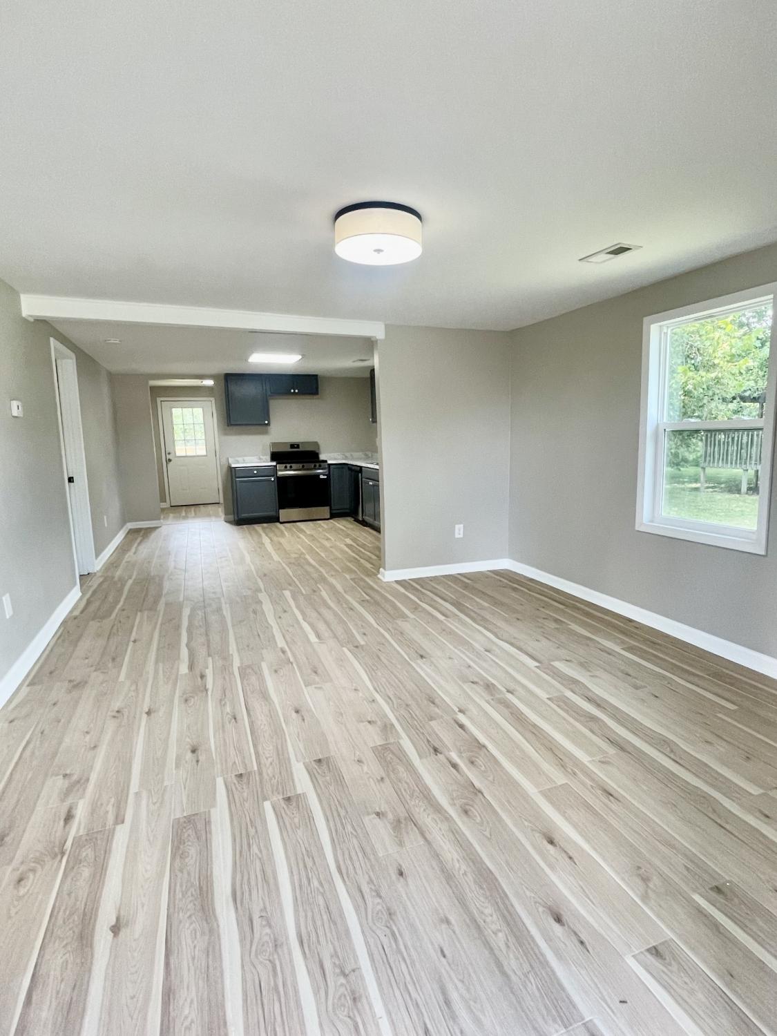 What a perfect starter home! This 2 bedroom, 1 bath home has been completely gutted and renovated. The open floor plan makes this home feel spacious. You will enjoy a separate laundry room and a large deck on the back of the house. Brand new unit, roof, windows, stainless appliances, hot water heater, are just a few of the bonuses in this like new, functional home.