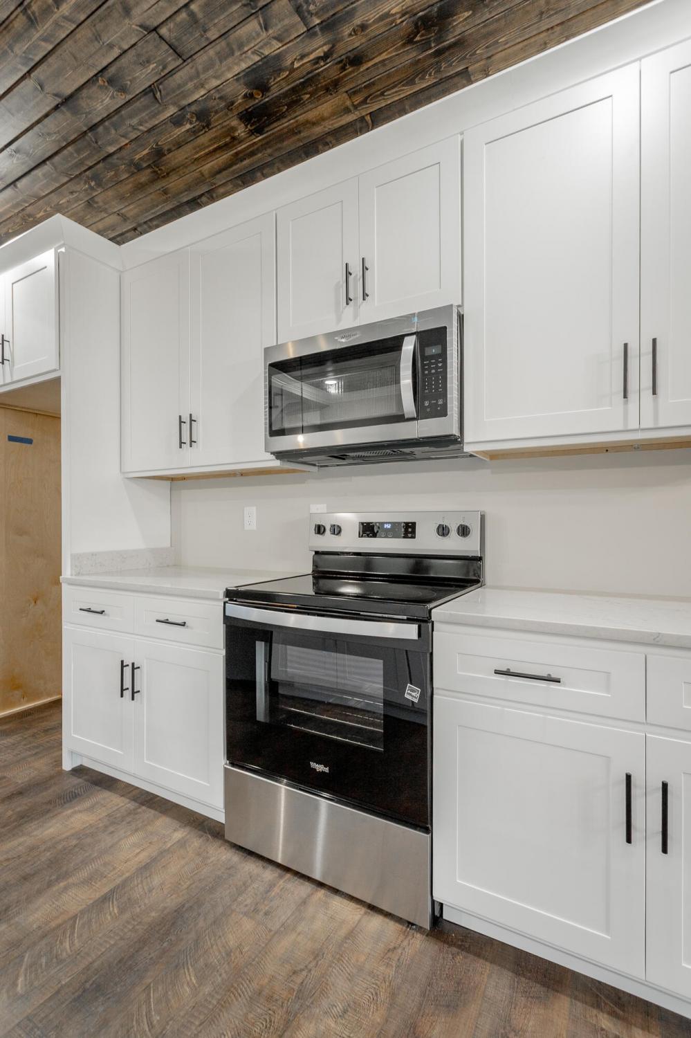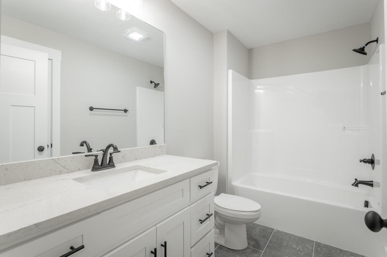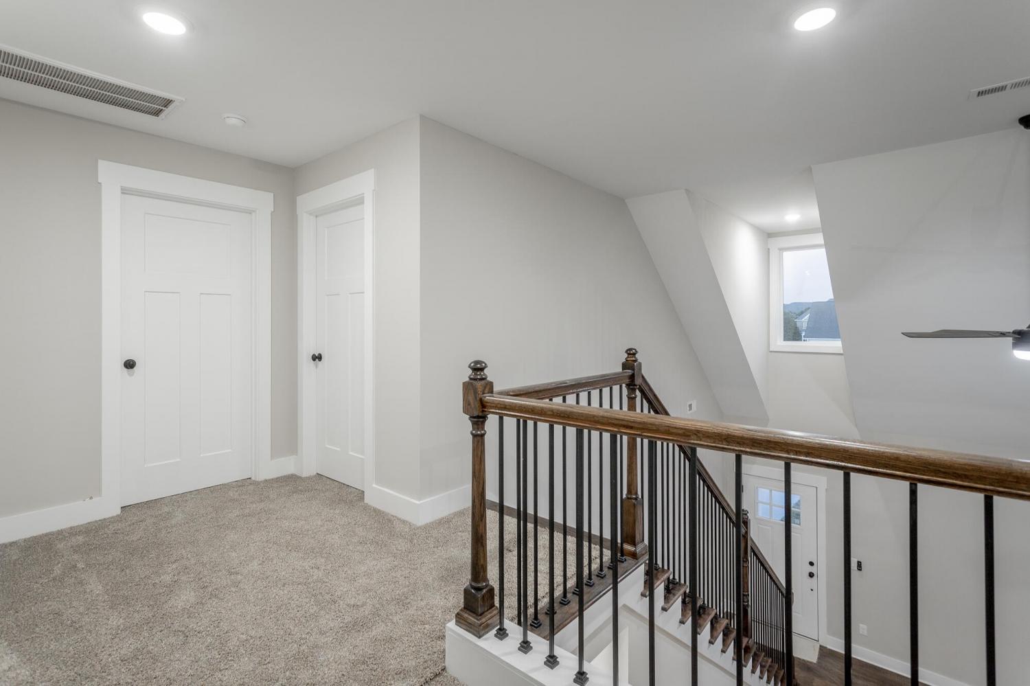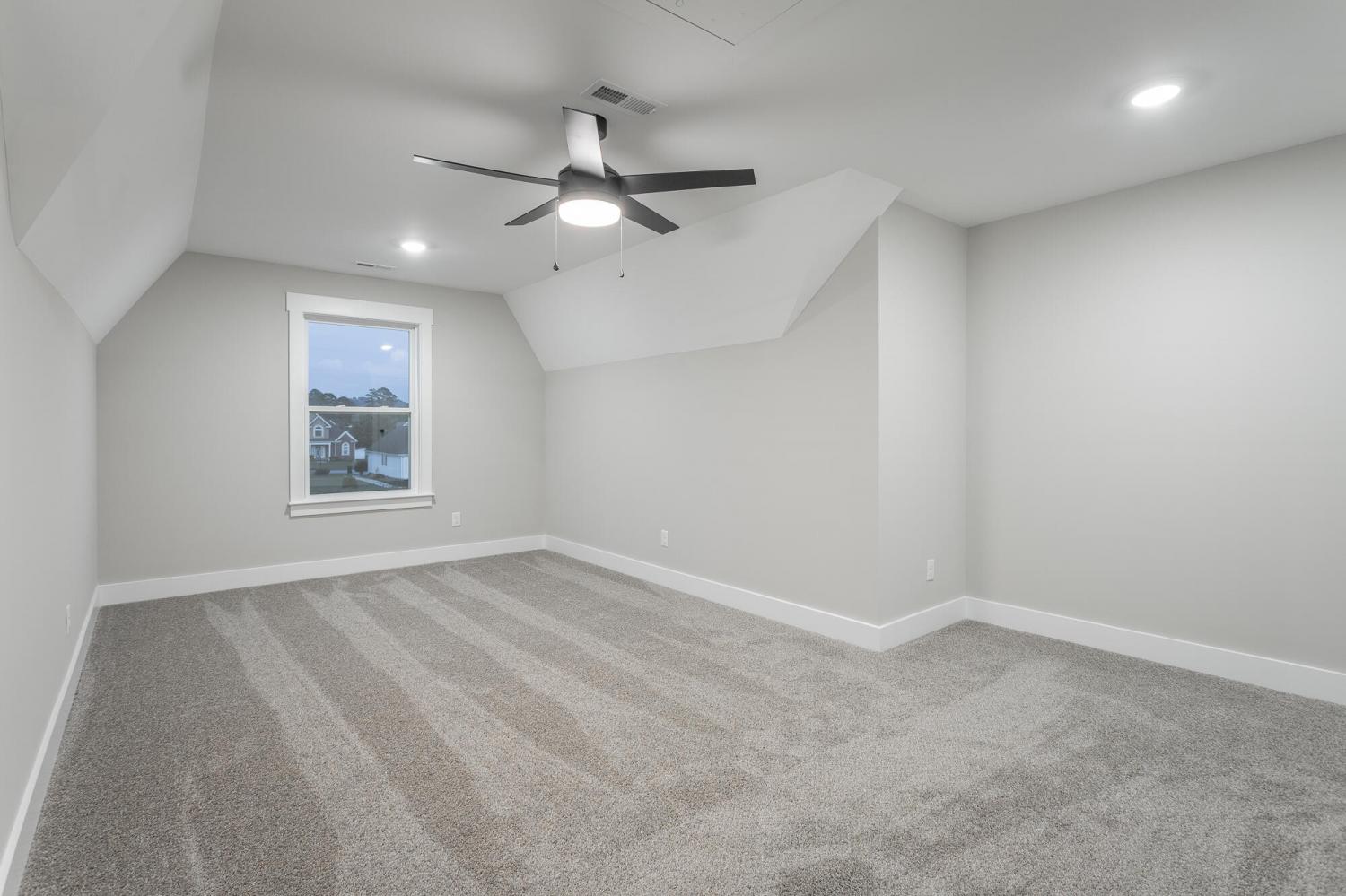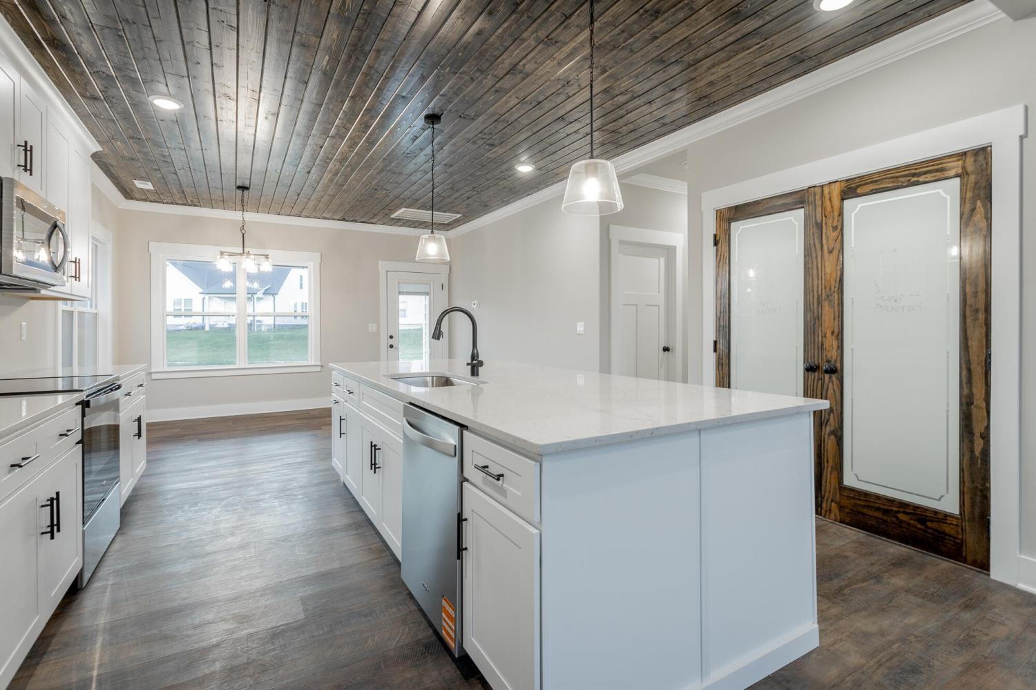 Welcome to The Grove, a convenient Ringgold neighborhood zoned for Heritage schools. This NEW 4 Bedroom, 3.5 Bath home, spanning just under 2,400 square feet, includes a builder's new home warranty for peace of mind. The exterior features low-maintenance fiber cement siding, brick on the foundation elevation, low-E vinyl windows, a zero-entry raised slab foundation, and a fully sodded, landscaped yard. This charming sidewalk-lined neighborhood has a swimming pool, community pond, and walking paths, and it's just 2.7 miles from I-75 at Battlefield Parkway—23 minutes to Dalton and 19 minutes to downtown Chattanooga. The Great Room (15'4'' x 20'10'') welcomes you with a vaulted ceiling, gas log fireplace with stone surround and wood beam mantel, and ''Wine Barrel'' SPC vinyl plank flooring—waterproof and scratch-resistant—flowing into the Kitchen and Dining Areas. The Kitchen includes an oversized island, stainless steel sink, quartz countertops, Whirlpool stainless appliances, soft-close cabinetry, double-door pantry, and stained v-groove ceiling. An adjacent Dining Area (14'5'' x 11') overlooks the covered back porch with views of the community pond. The main-level primary suite (14'2'' x 16'1'') offers a vaulted ceiling, barn door to an ensuite bath with an oversized tiled shower, 6-foot soaking tub, Delta fixtures, quartz countertops, and a walk-in closet connected to the Laundry Room (6'10' x 9'9''). Located on the back of the home, the primary suite also has windows with pond views. Upstairs, you'll find three bedrooms and two full baths. Bedroom 2 includes a full ensuite bath. Unlike other homes, this functional floor plan has generously sized closets and bedrooms. Enjoy picturesque sunsets over the community pond from your back porch, stroll the many walking paths around the community, or use the community swimming pool on hot summer days. Move-in ready, this home provides a practical, low-maintenance home with a thoughtfully designed, efficient floor plan.
