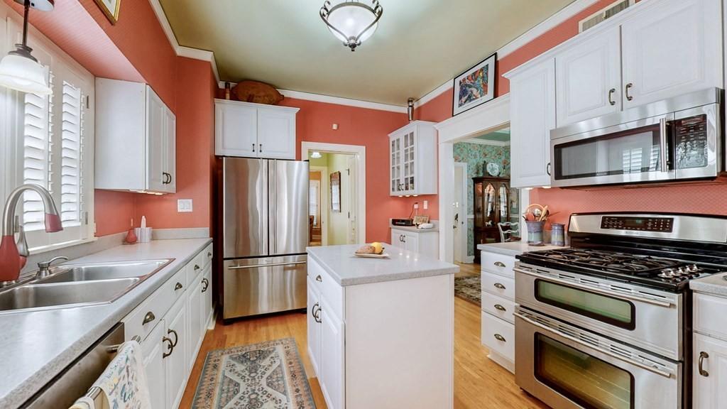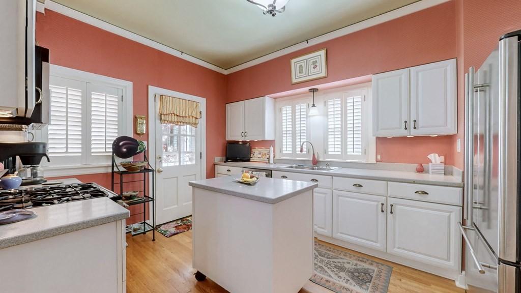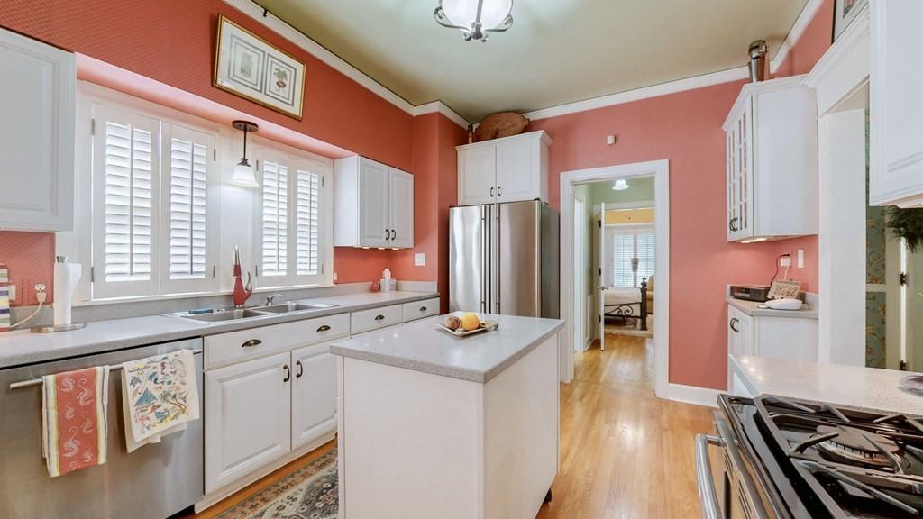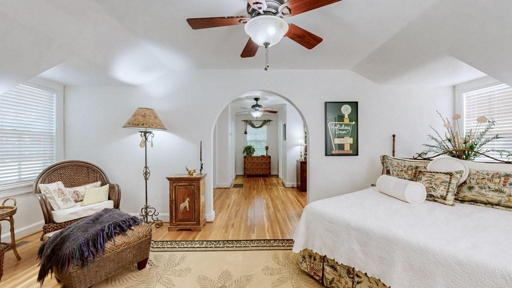 Classic Charm and location, you will love with this home offering 4 Bedrooms, 3 1/2 Tiled Baths, beautiful original re-finished hardwood floors, built-in bookshelves, walk-in closet and a separate Guest House! New Roof 2020 and exterior paint 2021. Enter a lovely front foyer area into a spacious Living Room with gas log fireplace and Office/Sunroom with pocket doors. Kitchen has Stainless Steel appliances, gas range, dual convection oven, island area, solid surface counter tops, broom or pantry closet. Dining Room off Kitchen. Main level in-law/Guest Bedroom with walk-in closet, access to full bath, and a GE Profile Combination washer/dryer. Stunning Stairway to Second level with three bedrooms. The spacious Primary is 14x20 with Full Bath and large walk-in closet. Additional Full Bath and two Bedrooms - one featuring walk-out French doors to a private deck and walkway to Guest House. Full basement with recreation room, wood burning fireplace, exterior entrance, abundant storage, safe room, half bath, and second laundry. Guest House includes Living Room, Bedroom, Kitchen with all appliances, Full Bath and separate HVAC unit. Double attached garage with passage door, wood doors, electric openers, shelving, plus an additional 15x24 garage with rear storage. Enormous concrete parking pad for family, guests, or basketball games! Brick patio with incredible shade trees throughout this gorgeous 1.15 Acre Corner Lot close to shopping, schools and downtown Paris. Total Square Footage including Guest House is approximately 4100 sq ft. Square footage based on county tax records. Please see Highlights of this lovely home in documents! Schedule your private showing today and discover what makes this home so special!