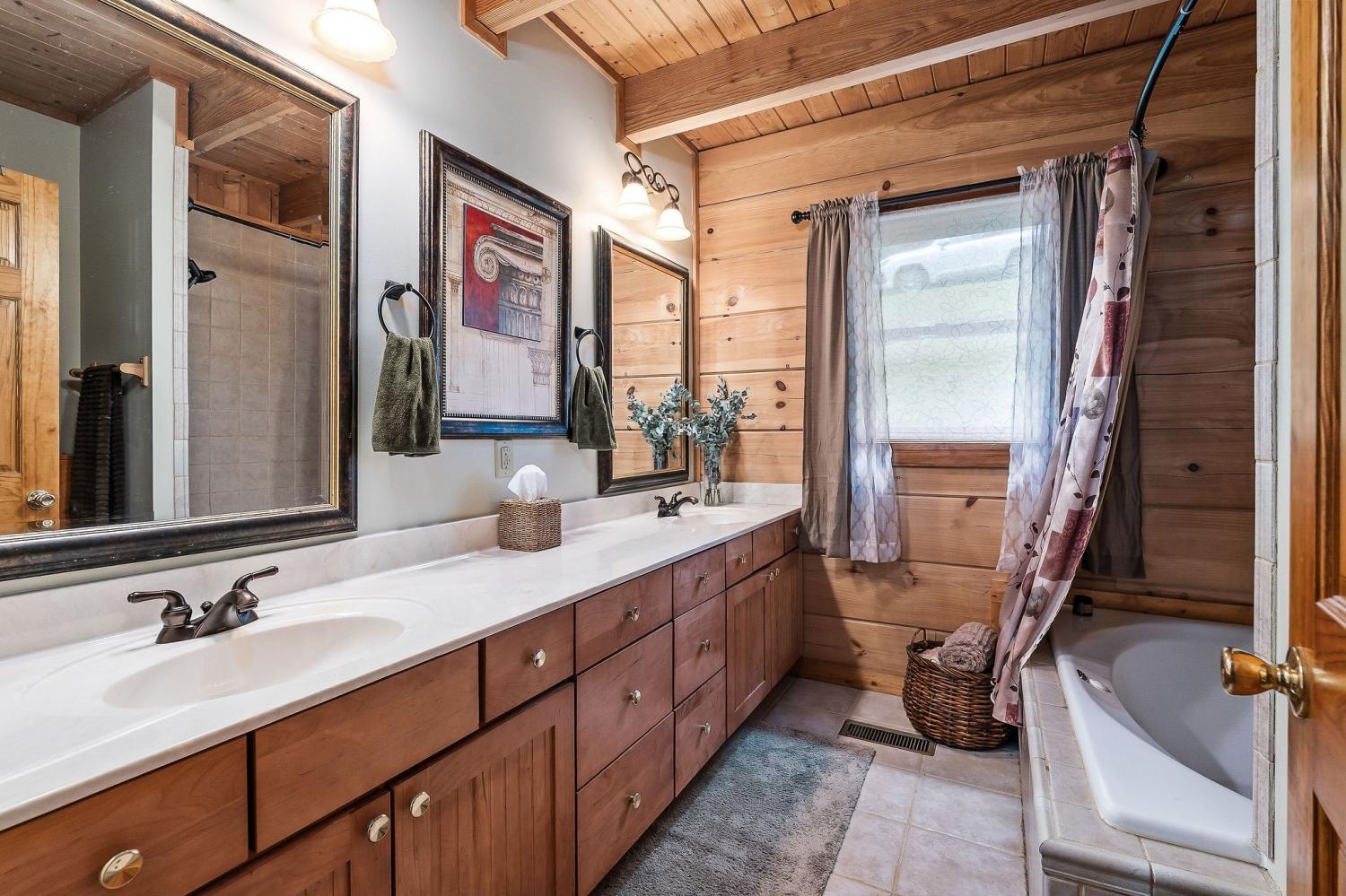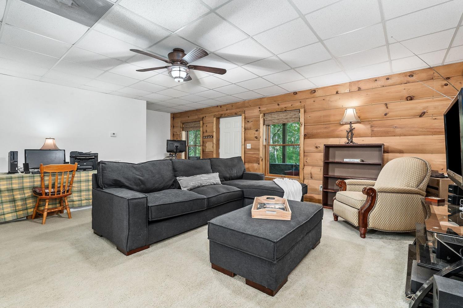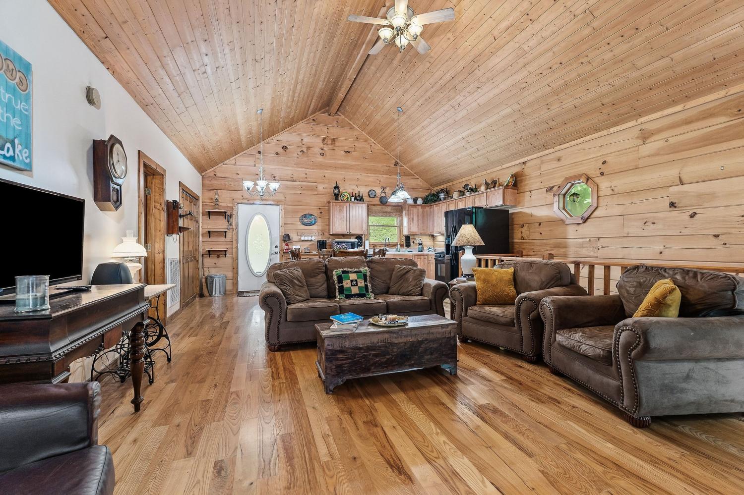 Escape to Center Hill and experience rustic lake living in this charming home, located in Cove Hollow’s gated community and only 5 minutes to Center Hill Marina & Yacht Club. Perfect for boating, fishing, kayaking, and lakeside dining, this location makes the lake lifestyle effortless. Freedom Boat Club of Nashville members can even have boats delivered directly to the marina for convenient days on the water. Blending rustic character with modern comfort, the open floor plan features a vaulted-ceiling living room with warm wood tones, abundant natural light, and a cozy gas fireplace. The kitchen includes a gas range, while the main-level primary suite offers a tranquil retreat with a spa-style bath—double vanities, soaking tub, and walk-in closet. The lower level offers two spacious bedrooms, a full bath, and also provides flexible living with an additional den—perfect for guests or entertaining. Outdoor living is a highlight with an upper covered and uncovered deck and a covered patio below, all overlooking your peaceful backyard setting. A concrete drive and community amenities—including a playground, maintained roads, and a dock with rental slips—add to the appeal. Short-term rentals are permitted, making this rustic Center Hill Lake home an ideal retreat or investment opportunity.