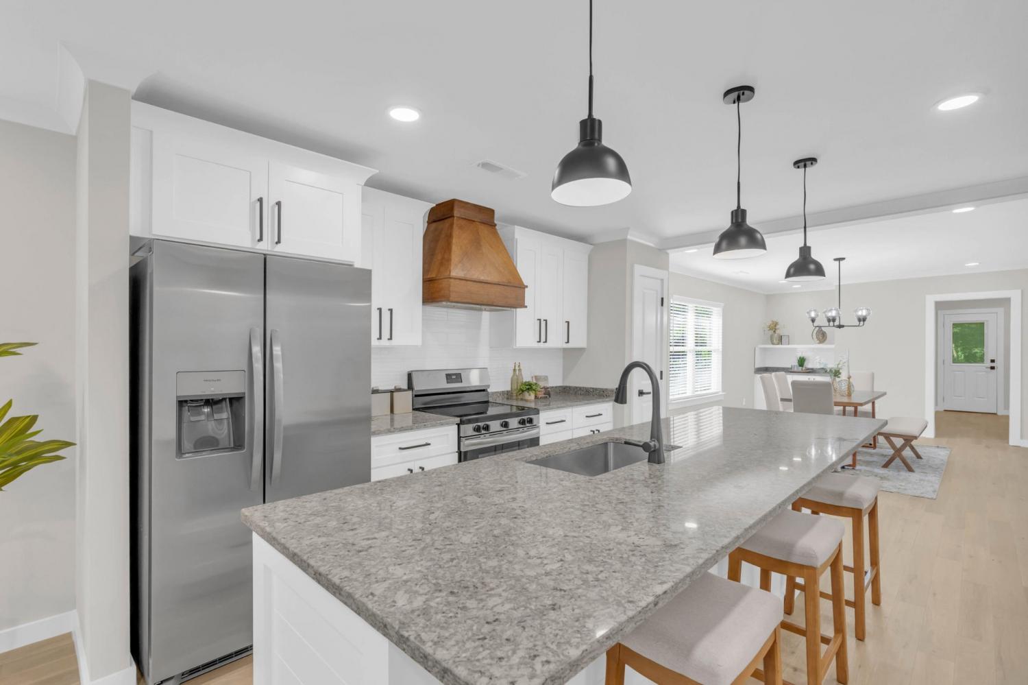 ✨ Completely Remodeled in the Heart of East Ridge! ✨ This 4-bedroom, 2-bath home has been fully gutted to the studs and thoughtfully rebuilt with modern comfort in mind. Step inside to find beautiful hardwood floors throughout the main living areas, accented by LED can lighting for a bright and welcoming feel. The spacious kitchen is the centerpiece of the home, featuring a large kitchen island and plenty of room for gathering. The adjoining dining area is flexible enough to serve as two separate spaces—ideal for entertaining or creating a cozy breakfast nook. Both bathrooms have been fully updated with tiled showers, including a luxurious rain shower head in the primary suite. Enjoy relaxing mornings and evenings outdoors with a brand new deck perfect for grilling and a charming rocking chair front porch that also features a beadboard ceiling. This home blends the charm of East Ridge with the comfort of modern updates—making it truly move-in ready.