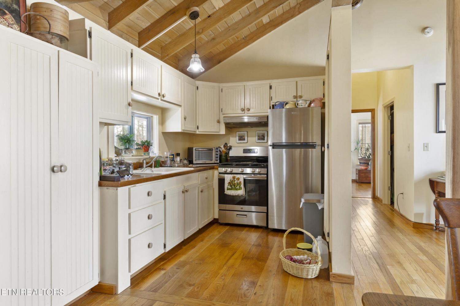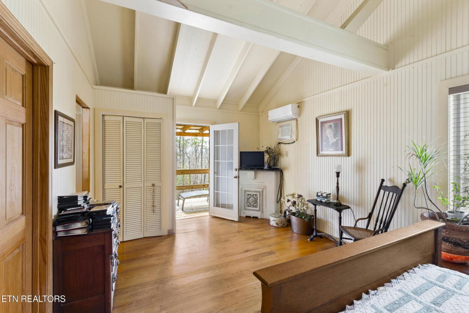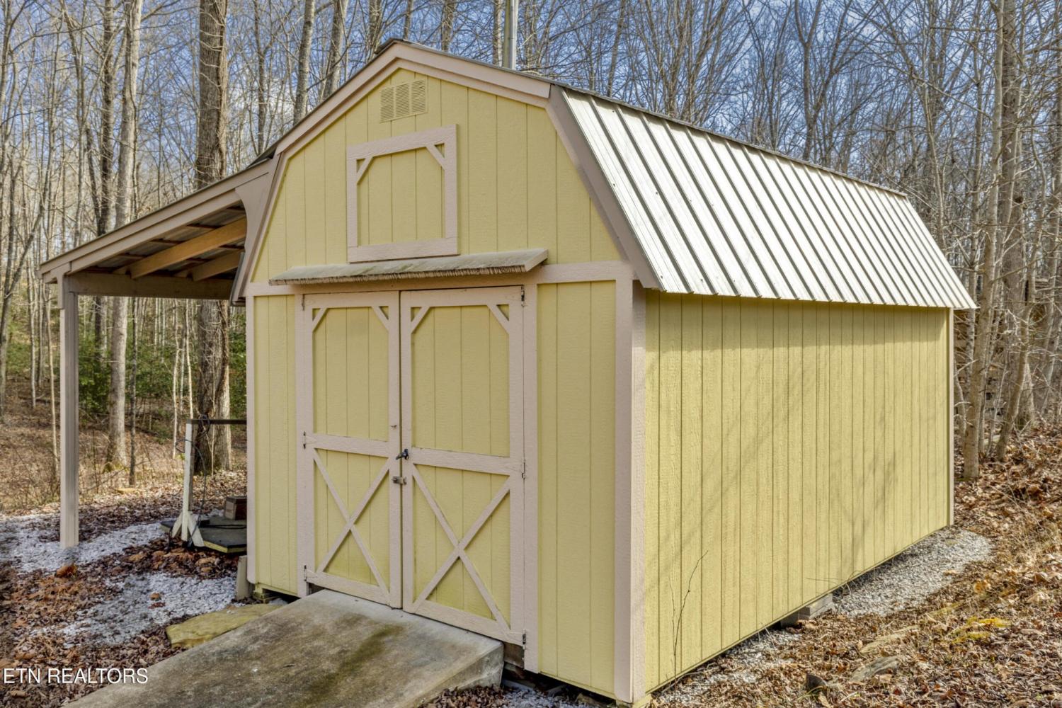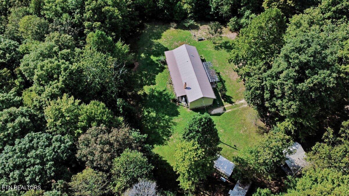 PRICE IMPROVEMENT. 89 ACRES OF UNRESTRICTED WOODLAND come with this lovely, well maintained 2 bedroom, 2 full bath home. A creek runs just inside the southern border of the land attracting wildlife. This could be your very own hunting preserve. The lack of restrictions opens up many other possibilities. The property is close to the attractions of the Obed Wild and Scenic River National Park with white water rafting, kayaking and world class climbing and also Frozen Head State Park with miles of hiking trails and overlooks. Some cabins could be built beside the creek for additional income from people visiting the parks. Or put in a few RV pads, or even a whole campgound. There are two outbuildings. One of them is an electrified workshop. Perhaps you always wanted to do woodworking or open up a motorcycle repair shop. This is your opportunity! There are also no restrictions against livestock or poultry. The other outbuilding has a chicken coop attached with wire strung across the top to keep the chickens in and the hawks out. But maybe you just want to enjoy the privacy and pristine beauty. A covered deck runs almost the entire length of the back of the house providing a wonderful place to have your morning coffee while listening to the birds sing and laughing at the squirrels playing in the trees, or to watch the fireflies on a warm tranquil summer evening. Trees in the back and side of the house could be cut down to open up views of the mountains. The inside of the house features an open concept with post and beam construction, gleaming hardwood floors and separated bedrooms. The primary bedroom has glass doors directly to the deck and its own fireplace allowing you to dream by the fire on a Winter's evening in privacy. A second fireplace in the living room is a natural place for friends and family to gather. And a wood stove keeps everything warm and cozy on even the coldest of days. Built in storage in the wall between the kitchen and living room keeps books, etc.