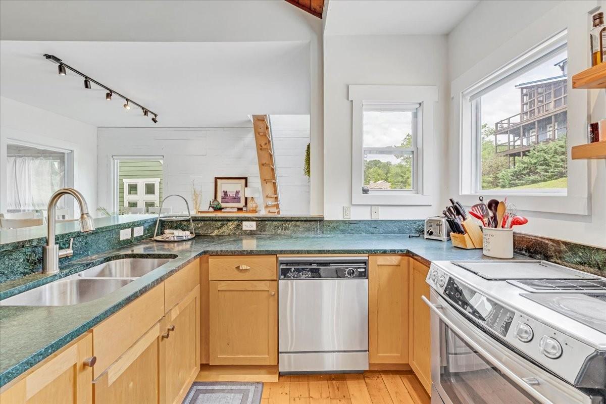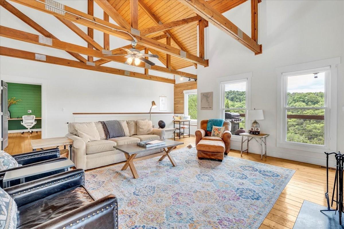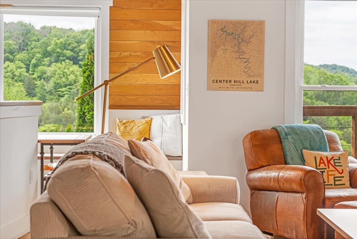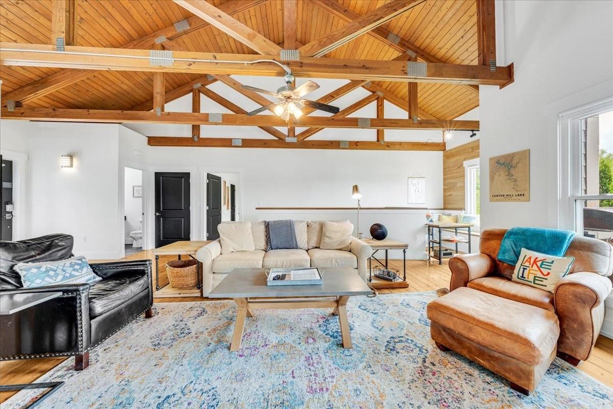 Whether you're looking for a lake house getaway or short term rental income property this custom home with a beautiful lake view delivers both. Overlooking Center Hill Lake this **fully furnished** house comfortably hosts 11 guests with a spacious open floor plan, soaring vaulted ceilings, beautiful hardwood floors, wood burning fireplace, soapstone countertops & stainless appliances. Soak in the views in the hot tub on one of two porches overlooking the lake. Basement media/game room w/ pool table. HVAC replaced 2021, exterior completely re-painted 2022, newer windows on back of home. Short term rentals are allowed. Lawncare included in HOA. Blue Water Bay offers a community pool with incredible lake views and club house. Conveniently located 6 miles from downtown Smithville. Hidden Harbor Marina 13 miles from house. Municipal airport 3 miles. Buyer eligible for 1% preferred lender credit when financing with the Wedig Team at CMG Home Loans.