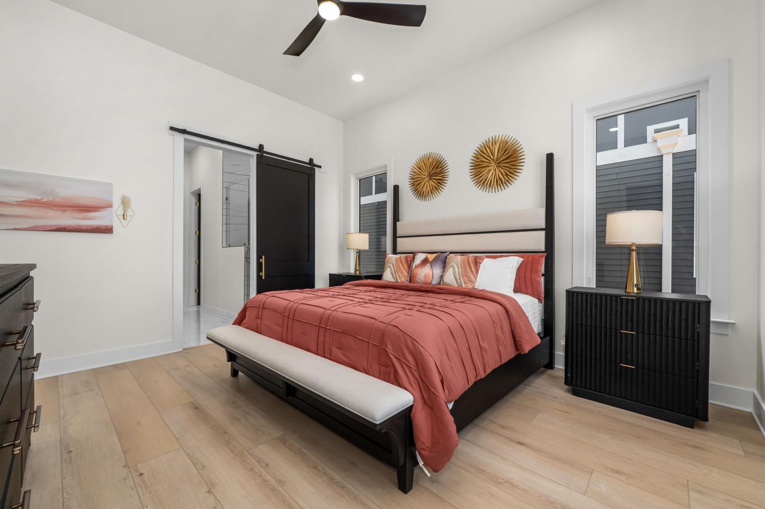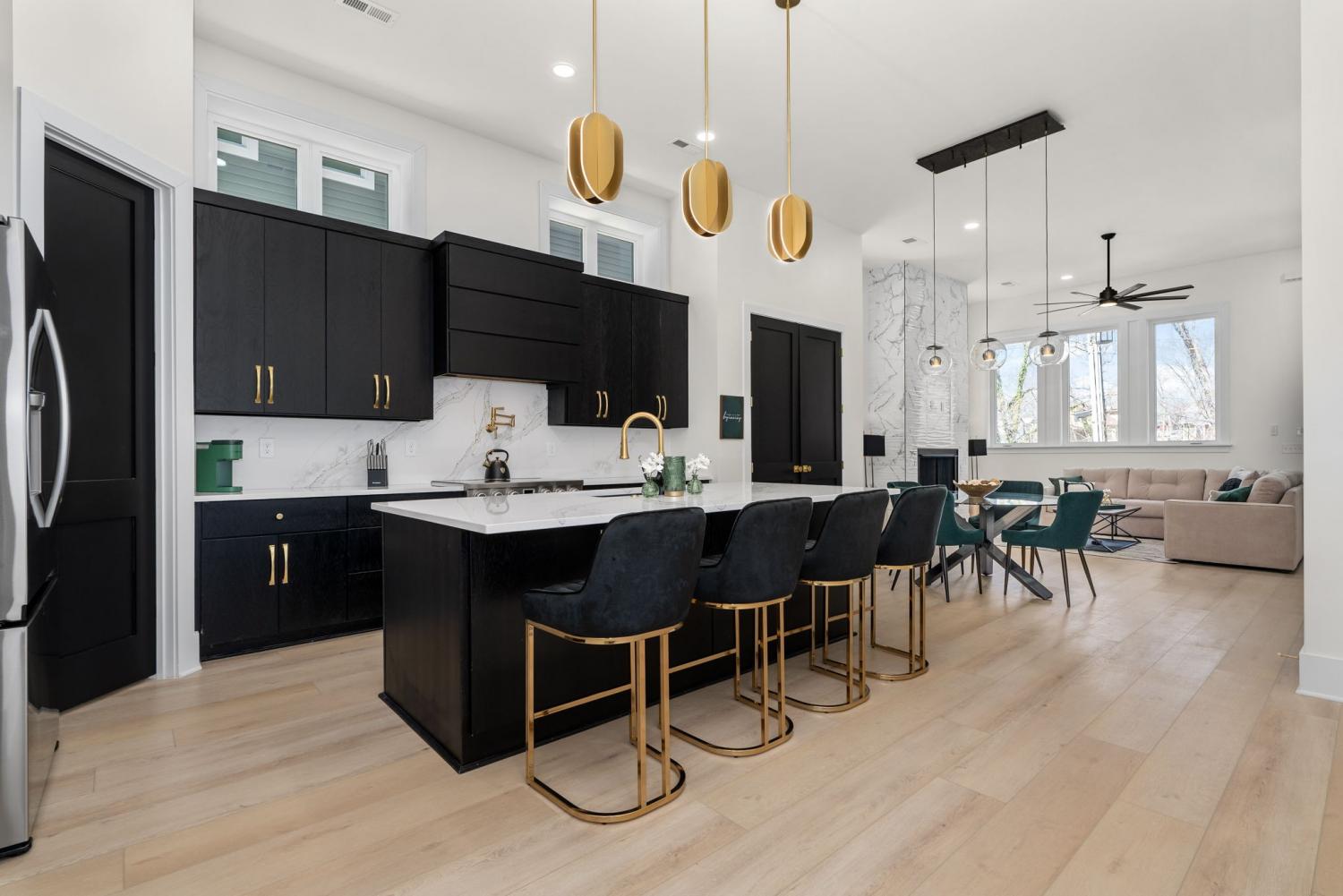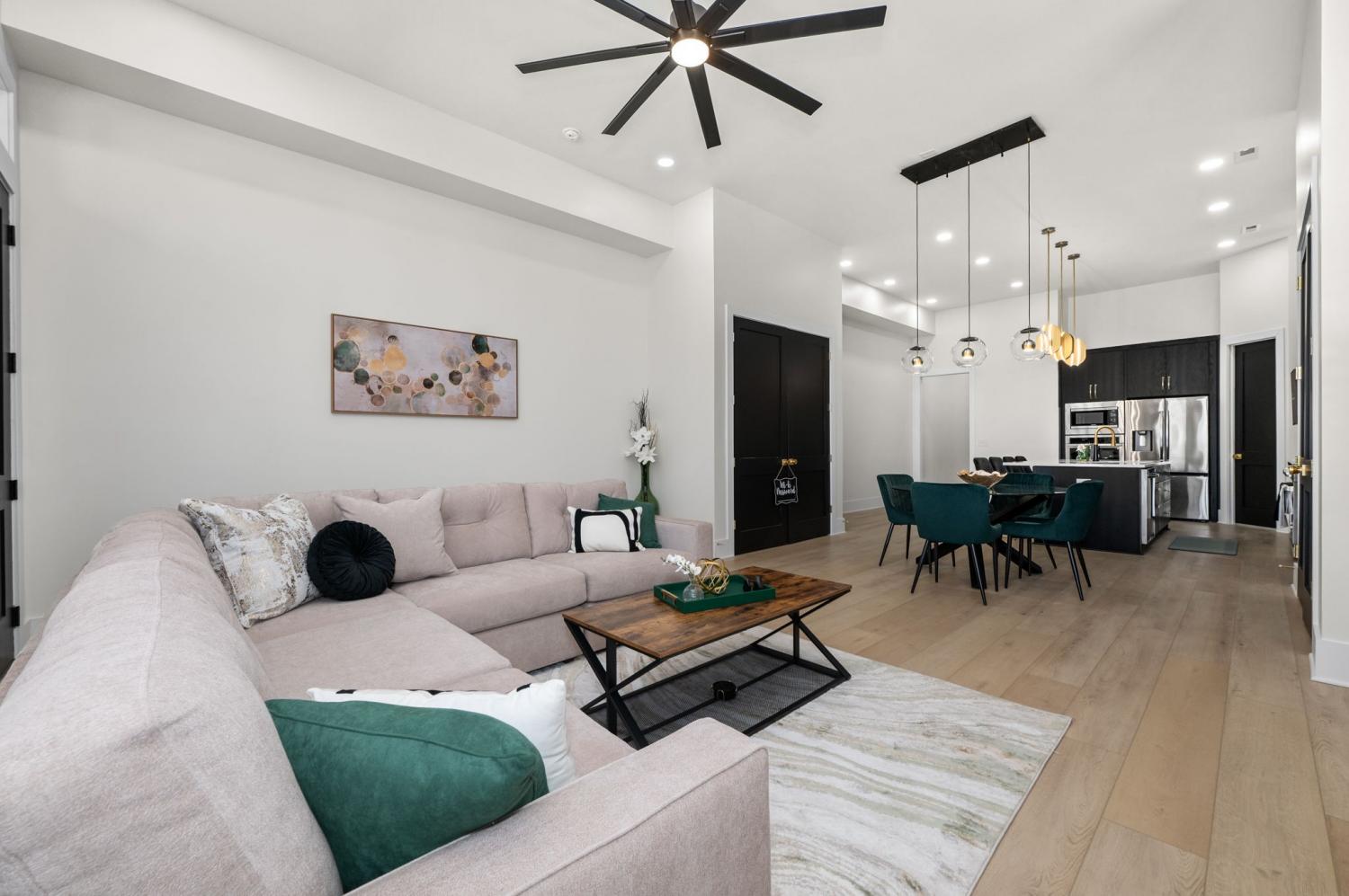 FULLY FURNISHED luxury new construction rental in Lockeland Springs! 30+ day rental minimum. Available for Dec 1st Move-in: 4 bedroom / 4 bath home with attached 2 car garage, 2 rooftop decks in private nook of Lockeland Springs. Each of the 4 bedrooms has a private en suite bath, with the primary suite featuring 11-foot ceilings, dual closets, multi-faucet shower heads, backlit mirrors, and a sliding barn door. The open floor plan with 12-foot ceilings on the main level offering loads of natural light. The chef’s kitchen includes a large island, with custom cabinetry, dual ovens, pot filler, and a walk-in pantry. Hardwood & tile flooring throughout home. Rear alley-loading large 2-car garage prepped for EV charging. Pets welcome with deposit. Both bedrooms on top floor offer access to outside decks. Credit/background check required, Application fee of $55. Trash/yard/landscaping included in rent. Google fiber wifi