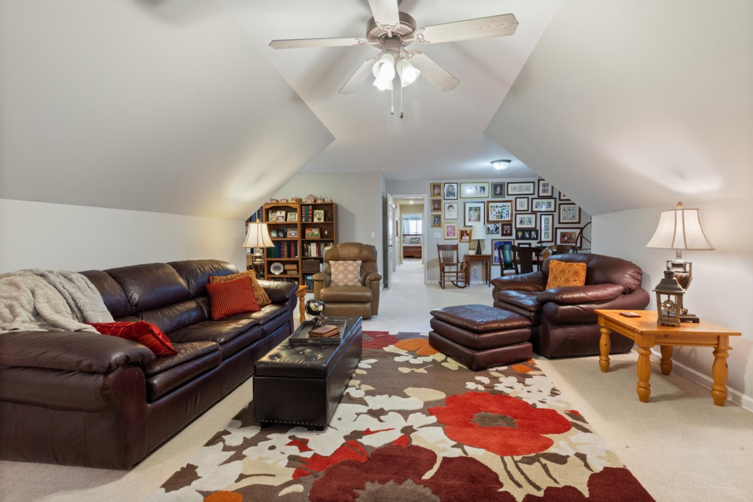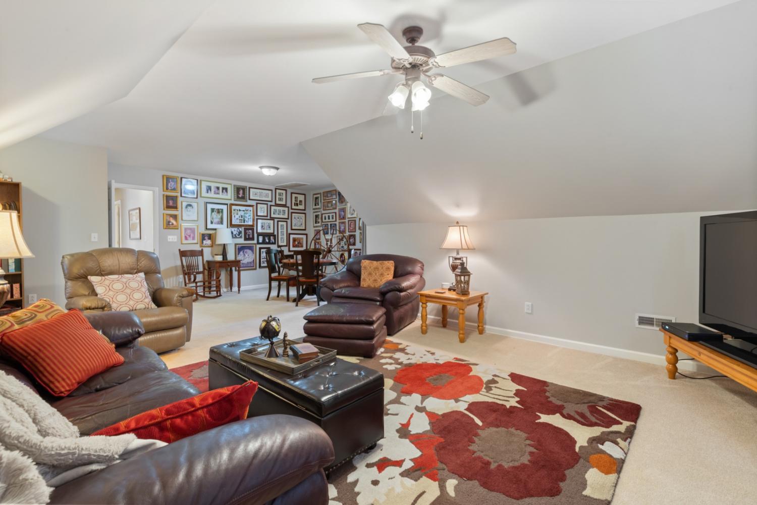 Welcome to this immaculate 3481 sq. ft. home, nestled among mature trees and framed by lush landscaping that offers both charm and privacy. Inside, natural light fills the great room, where a cozy gas fireplace creates an inviting focal point. The upgraded kitchen includes a breakfast nook--perfect for casual mornings or weekend gatherings. The primary suite is conveniently located on the main level and features a garden tub, separate shower and two walk in closets for a true retreat experience. Upstairs, you'll find a spacious bonus room ready for work or plan, along with three generously sized bedrooms and a full bath. Step out onto the beautiful screened -in porch-ideal for year-round enjoyment-or envision the possibilities in the full unfinished basement. With a two-car attached garage on the main level, classic curb appeal and thoughtful updates throughout, this well-loved, move in ready home offers room to grow and space to breathe. enjoy peace and privacy with easy access to schools shopping and I-40. This rare find won't last long!