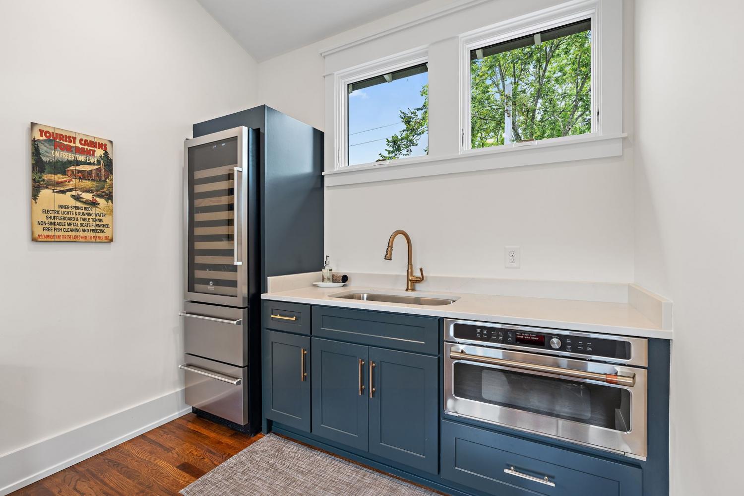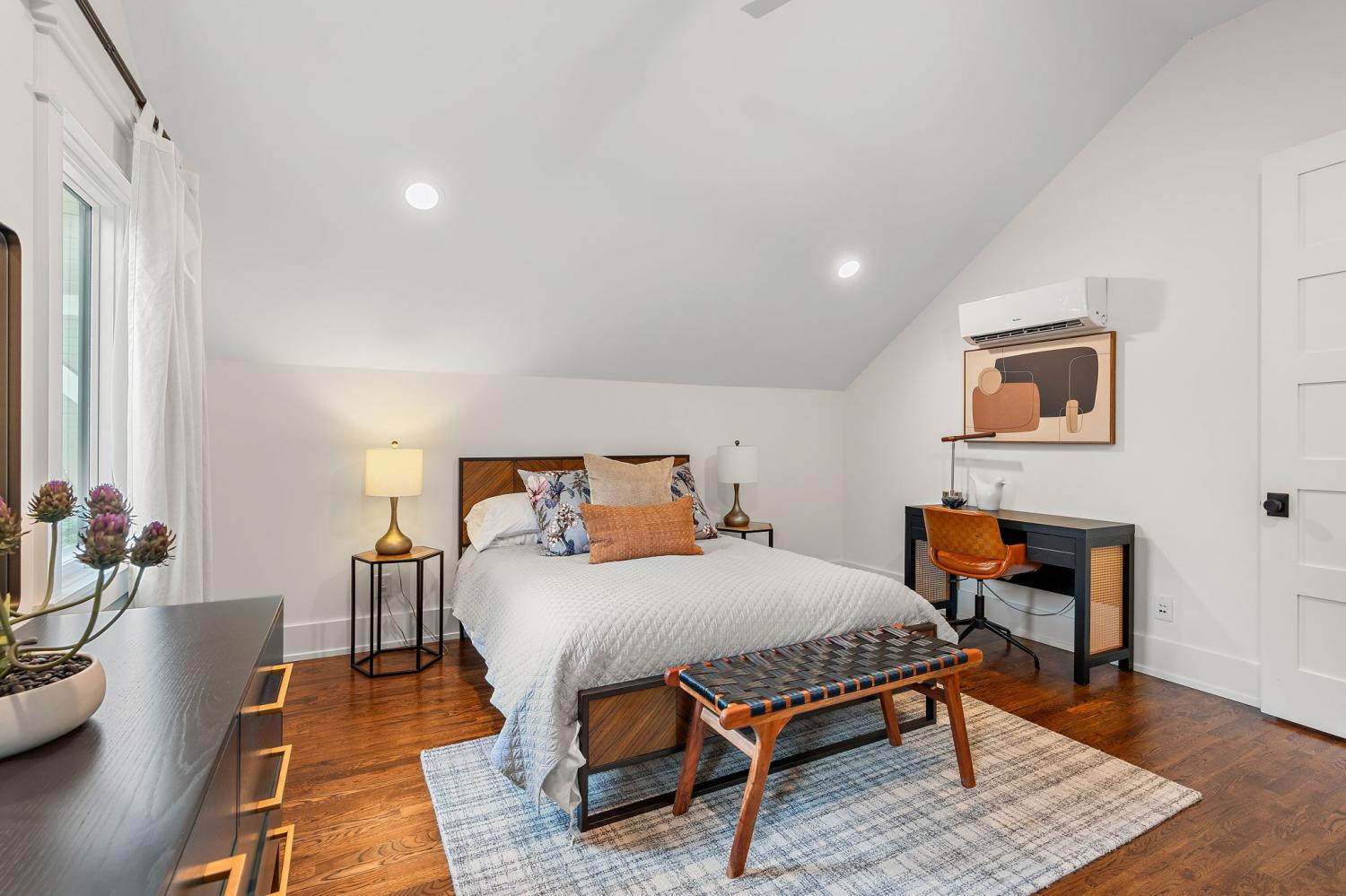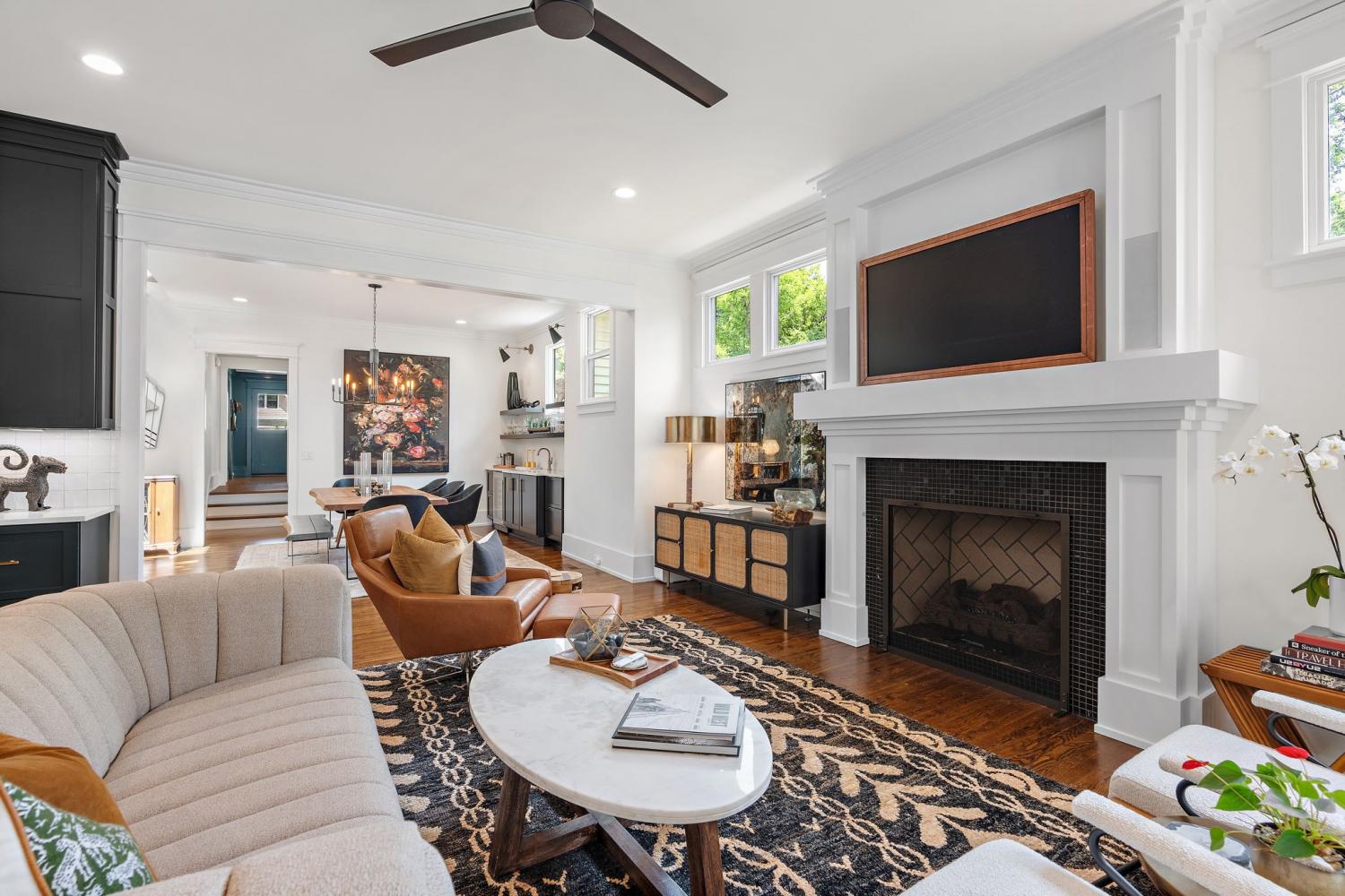 Impeccably renovated 1915 Craftsman in the heart of Belmont Hillsboro / 12 South — the ultimate blend of historic charm and modern luxury. Completely reimagined in 2022, this designer home offers high-end finishes, indoor-outdoor living, and a rare heated plunge pool just steps from 12th Ave South and Hillsboro Village's shopping, dining, and coffee scene. Relax or entertain year-round on the covered outdoor living room with built-in heaters, a gas fireplace, and a heated soaking pool with waterfalls and jets. The marble patio and professional landscaping with turf lawn create a serene, low-maintenance backyard oasis. Inside, the open-concept floor plan is flooded with natural light and designer details — from the dramatic wall of windows framing the floating staircase to the custom chef’s kitchen with oversized island, premium appliances, and floor-to-ceiling cabinetry. Seamless indoor-outdoor flow makes this home an entertainer’s dream. Offering two primary suites (one up, one down) plus two additional ensuite bedrooms and a dedicated home office, the layout is ideal for modern living and multi-generational flexibility. The two car garage is finished with a California Closet system for abundant storage, epoxy floors, a half bath, and a refrigerator — perfect for hobbies, entertaining, or extra prep space. Above the garage is a one-bedroom guest house with full bath offering income potential, an in-law suite, or private studio space. Located on a quiet, tree-lined street with ample parking, this home is perfectly positioned between Belmont Blvd, Hillsboro Village, and 12 South. Enjoy walkability, historic charm, luxury amenities, and a move-in-ready lifestyle in one of Nashville’s most desirable neighborhoods.