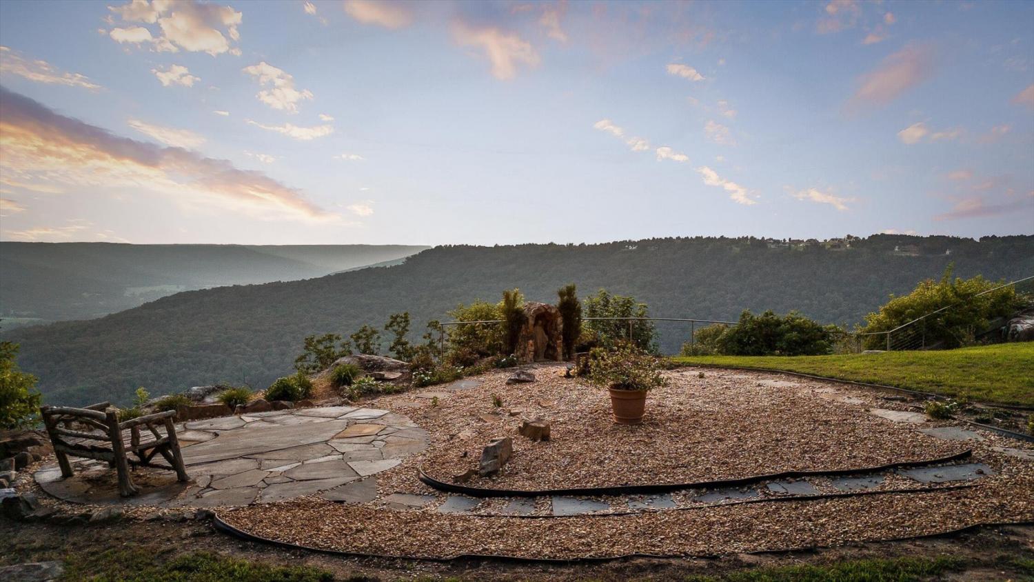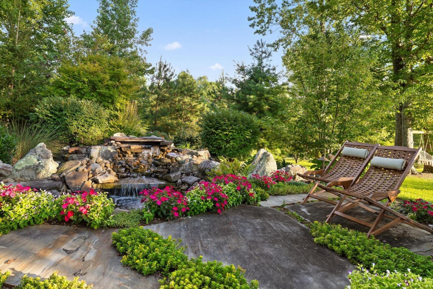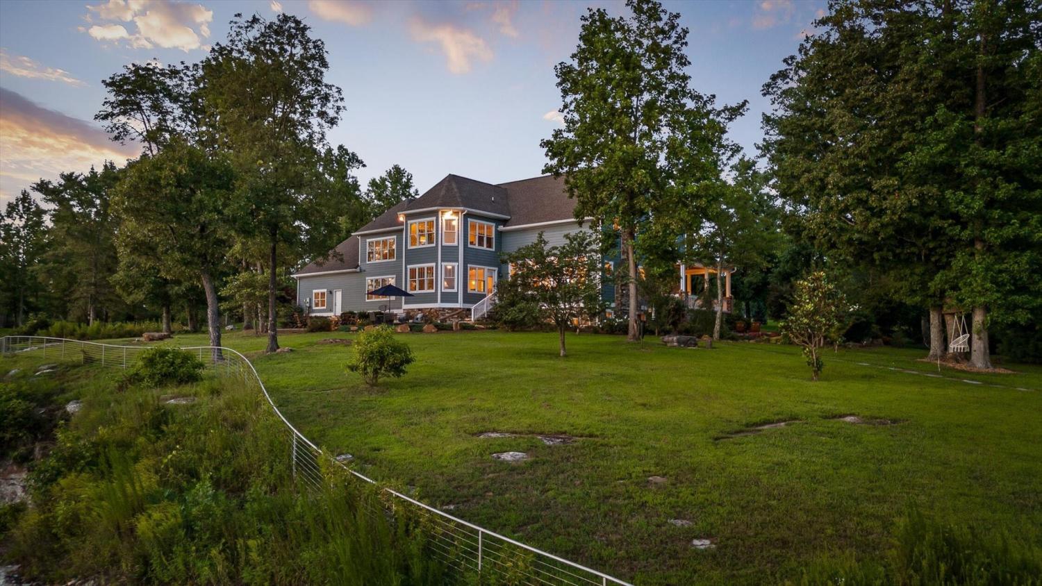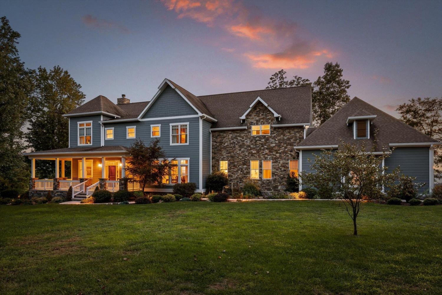 Nestled atop a bluff in the highly sought-after Jasper Highlands community, this stunning estate offers nearly 5.3 acres of pristinely landscaped grounds adorned with flowering gardens, dogwood, crabapple, and redbud trees, and a peaceful waterfall. A spacious patio overlooks the sweeping bluff views, providing the perfect setting to enjoy both sunrise and sunset, each more breathtaking than the last. The exterior blends craftsman and modern farmhouse charm, with soft blue siding, crisp white trim, and natural stone accents. Expansive windows along the back of the home capture the views and flood the interiors with natural light, while a walkout patio and shaded dining area create an inviting space for outdoor living. Step inside and you are greeted by a dramatic foyer that opens into a grand living room, where a floor-to-ceiling stone fireplace anchors the space. Rows of windows frame the panoramic scenery, connecting the interior to the remarkable outdoors. Just off the living room, the piano room provides a touch of elegance, while the dedicated dining room creates a warm and welcoming place for gatherings. The gourmet kitchen features a large island, walk-in pantry, and a breakfast nook that flows seamlessly into the sunroom—an ideal spot to relax while soaking in the views year-round. A bar area off the living room adds to the entertaining appeal. Multiple offices, including one on the main level and another in the finished basement, make working from home both private and convenient. The second floor opens to a spacious family room and balcony area overlooking the living room below. The primary suite is a true retreat, offering a luxurious spa-inspired bath with a double walk-in shower, an oversized soaking tub, and a vanity area designed for comfort and style. The large walk-in closet includes custom built-in shelving and organization, making storage both functional and elegant.