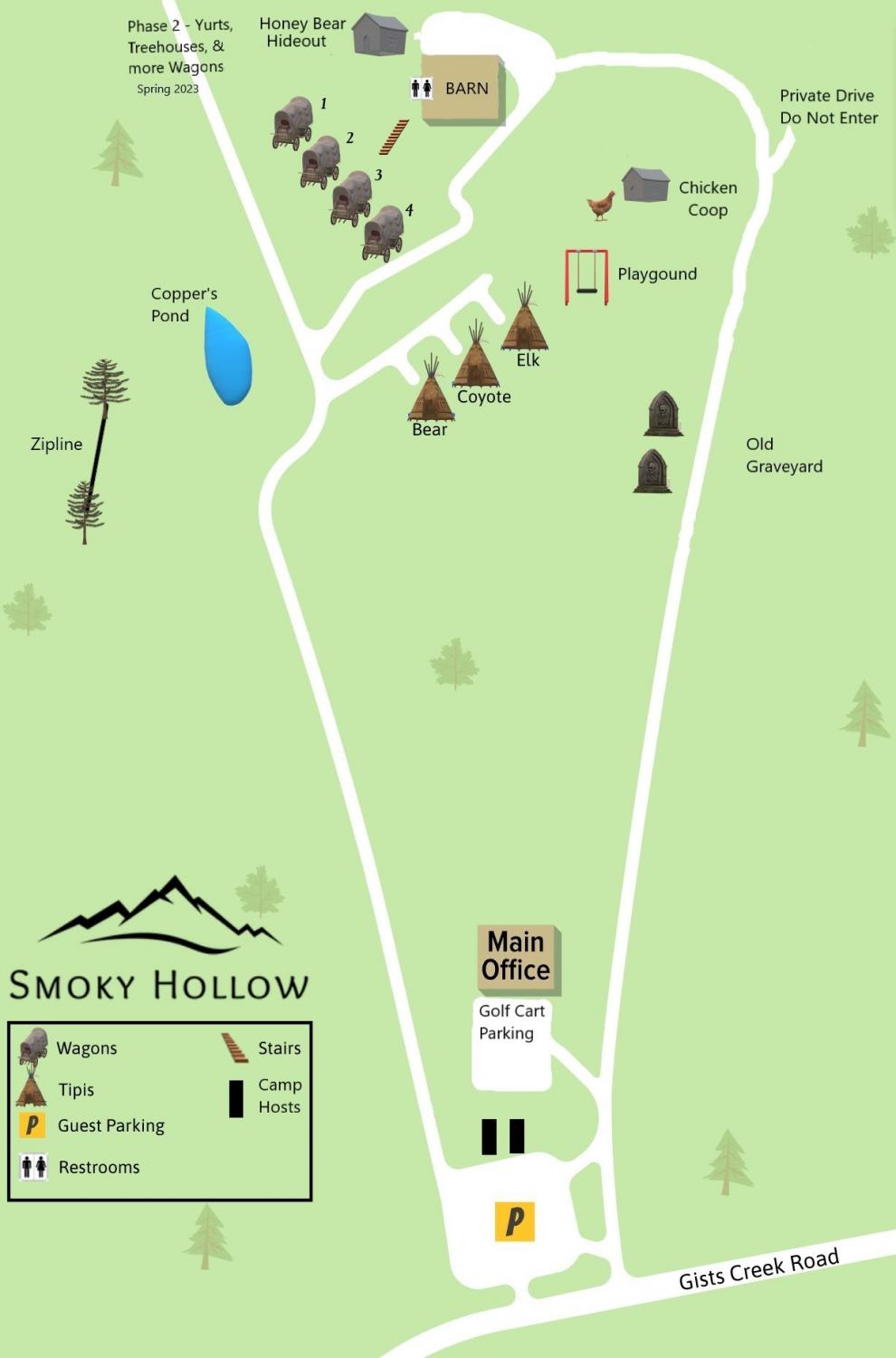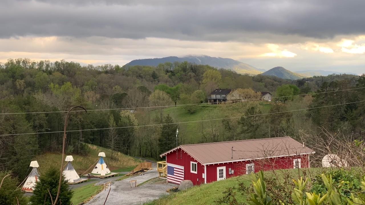 Situated on approximately 17 acres, this property offers a unique development opportunity with a PUD in place for 22 STR sites. The site includes an Amish-built log cabin, a renovated barn featuring two and a half bathrooms, a kitchen, and a game area with a large deck ideal for events and entertaining. The property also features four Conestoga covered wagons, two authentic tipis, and one A-frame glamping cabin. The original tract spans 18.03 acres and includes a spacious 4800 sq ft house and two full hookup RV sites, which can be negotiated separately. The 17-acre parcel is serviced by two septic systems and one well, supporting the log cabin and barn with bathrooms. City water and sewer access will be available by the end of 2025. Currently Zoned A1 with a PUD for 22 one-bedroom units and bathhouses, the property offers great potential for future development as potential R1/R2 zoning. There are hiking trails, a 150-foot zipline, a spring-fed pond, a playground, and a chicken coop. Previously known as Smoky Hollow Outdoor Resort, the location is less than a mile from the Sevierville Convention Center and Soaky Mountain Water Park.