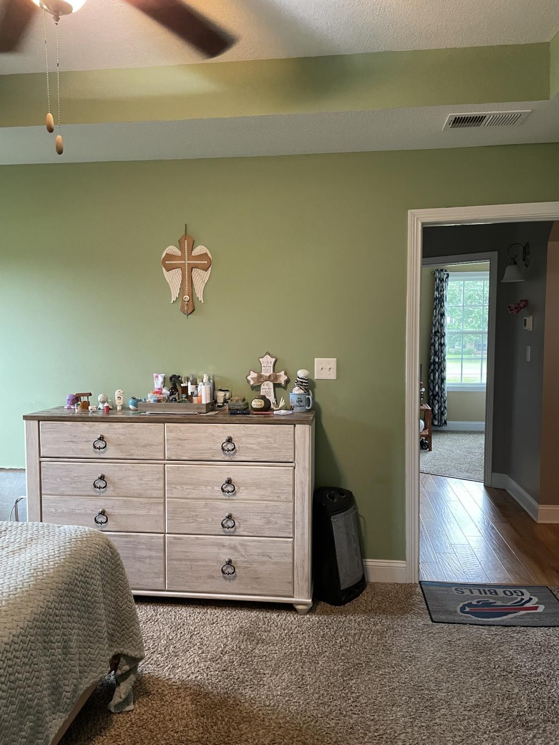 Spacious Home built in 2020, Kitchen with Tile floors, granite countertops and stainless steel appliances. Wood flooring throughout living room & hallways, Carpet in bedrooms. Primary room with Trey ceiling, walk-in closet and double vanities, Large 2nd & 3rd bedrooms, Large Bonus room over garage. security system stays with the home. Privacy fence around back yard. Covered back patio.