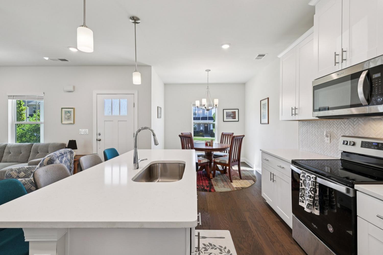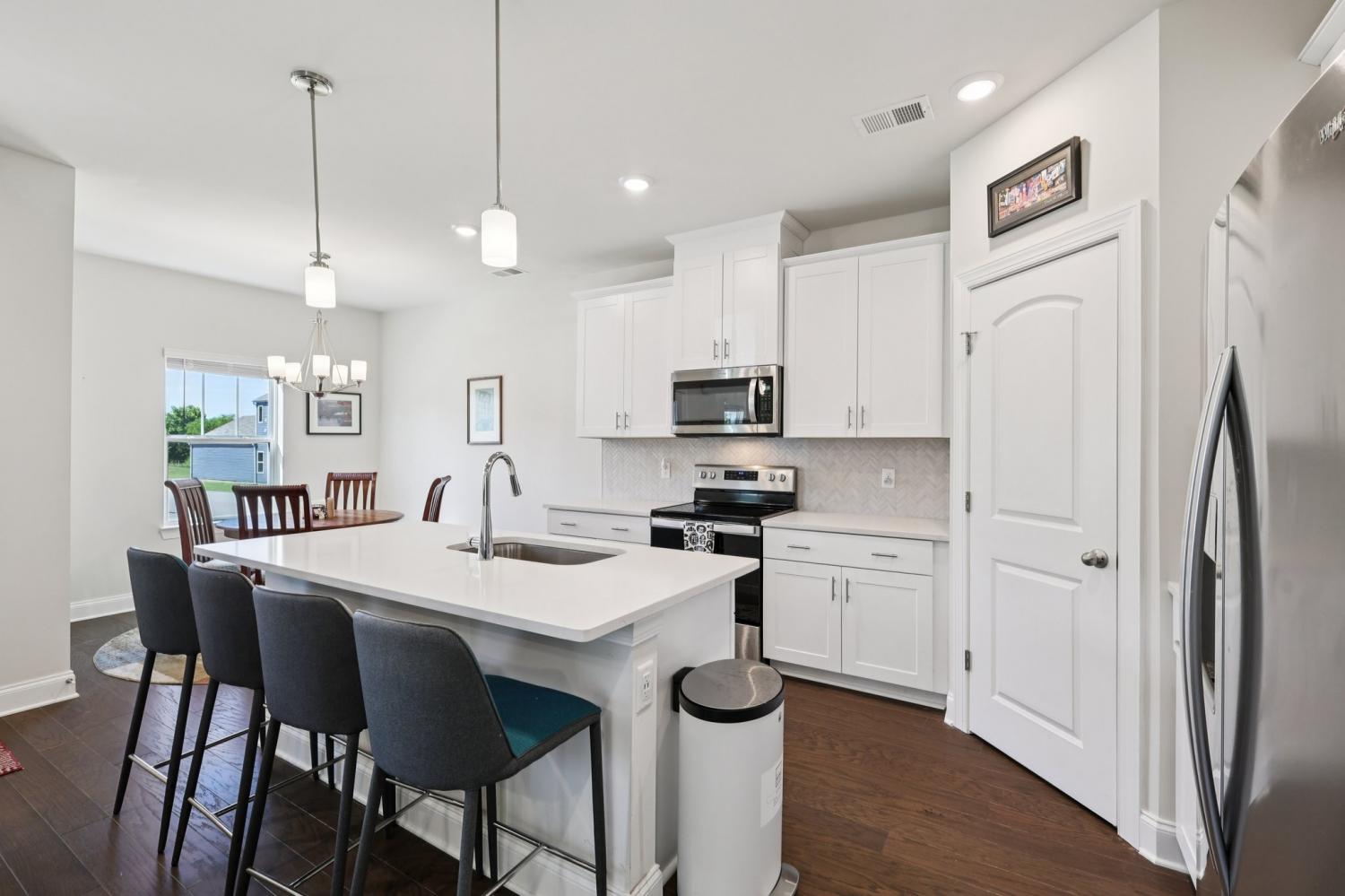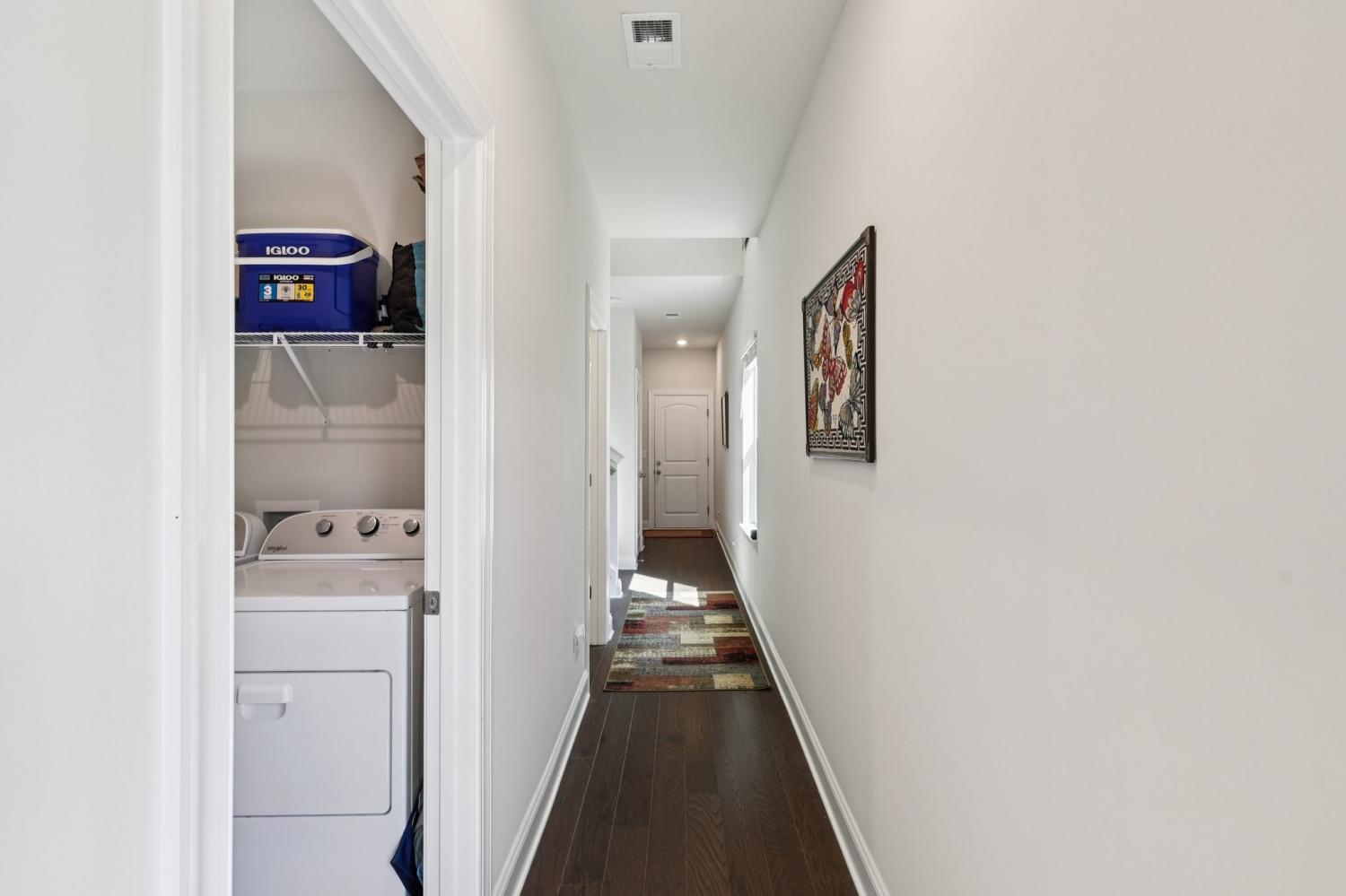 Energy-efficient home! Main Floor Living on a premium corner lot. Front porch easy maintenance living - No back yard -alley home. PRIVATE Primary Suite is quiet - no rooms overhead! Laundry & 1/2 bath down-ideal for Main floor Living 2 beds, full bath, large storage closet & large loft up. The spacious great room is an entertainer's dream, opening to a kitchen featuring an island and casual dining nook. White cabinets with Jasmine White quartz countertops, weathered hard surface flooring with gray beige tweed carpet come.Washer, Dryer, Refrigerator Included. Taylor Landing community in heart of Columbia, minutes from the town square. Community has walking trails, dog park, playground & activity lawn with views of the Duck River!
