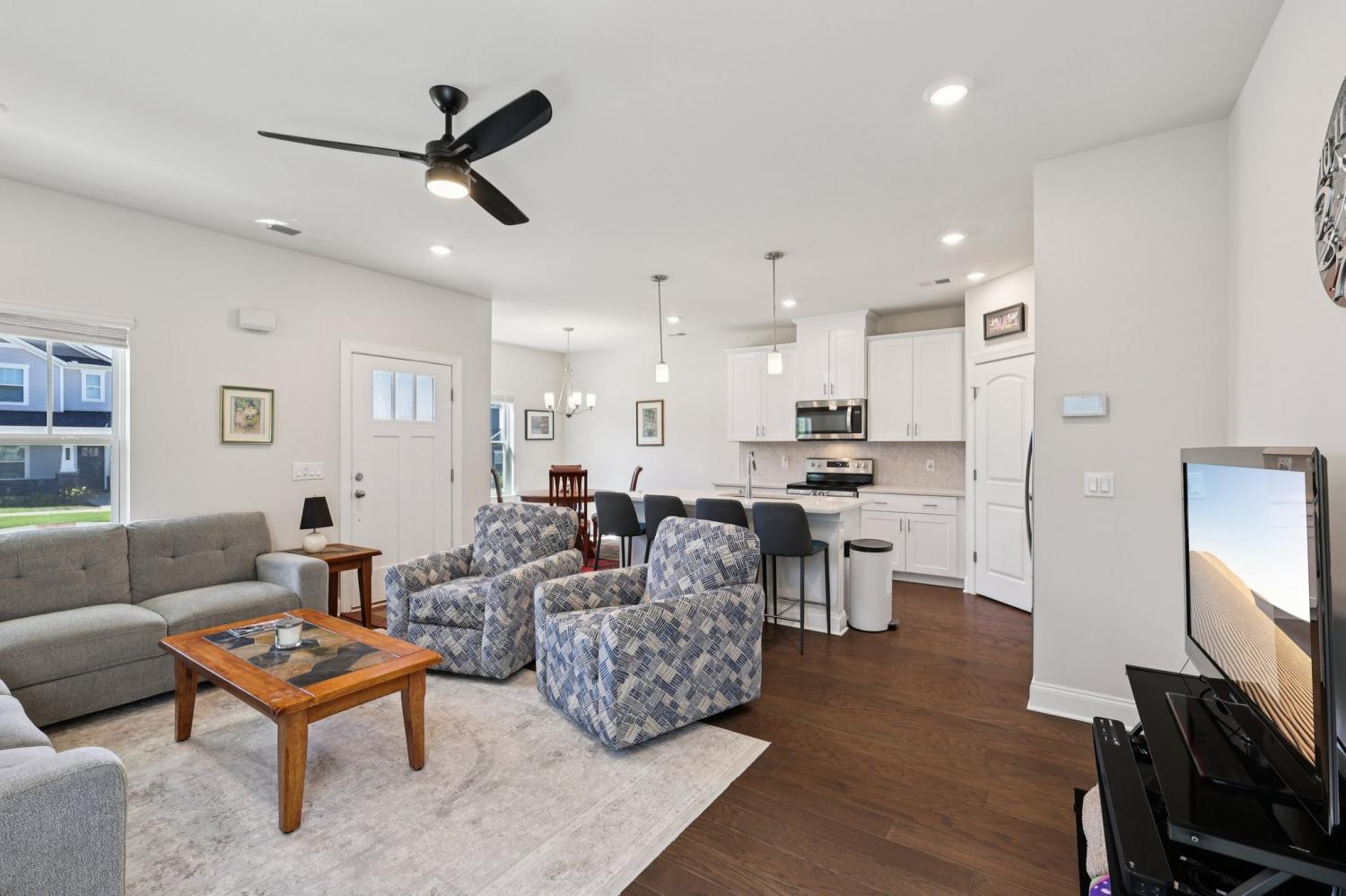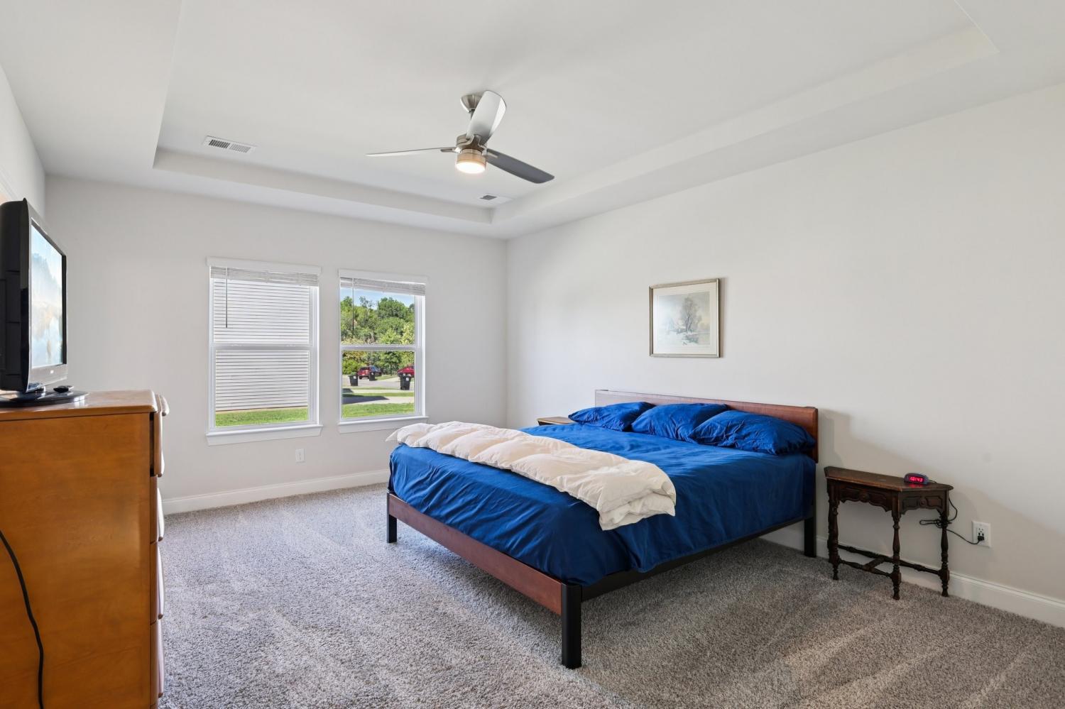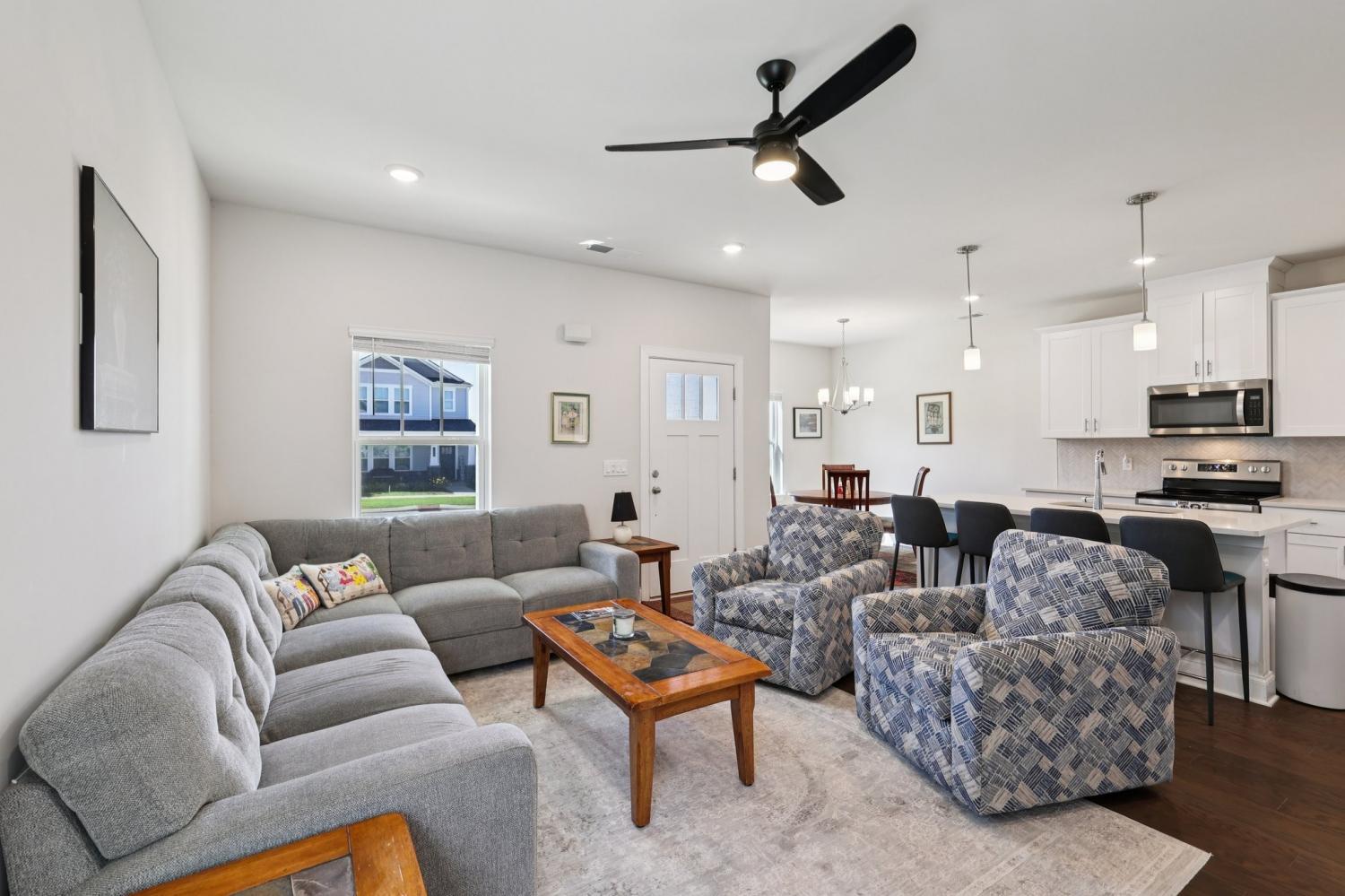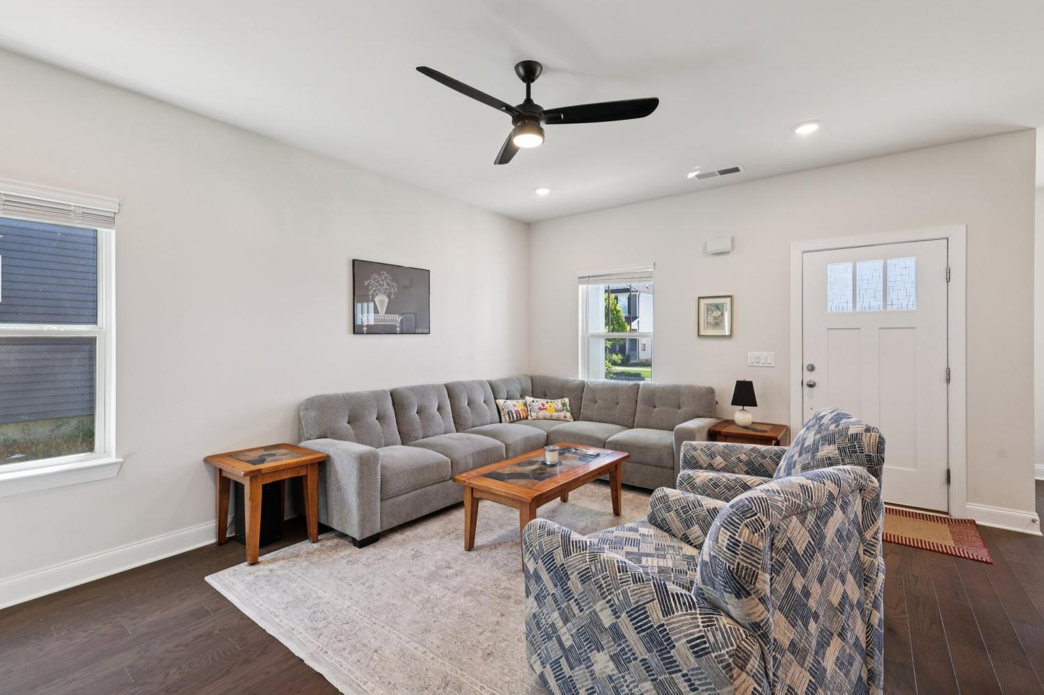 Energy-efficient home! Main Floor Living on a premium corner lot. Front porch easy maintenance living - No back yard -alley home. PRIVATE Primary Suite is quiet - no rooms overhead! Laundry & 1/2 bath down-ideal for Main floor Living 2 beds, full bath, large storage closet & large loft up. The spacious great room is an entertainer's dream, opening to a kitchen featuring an island and casual dining nook. White cabinets with Jasmine White quartz countertops, weathered hard surface flooring with gray beige tweed carpet come.Washer, Dryer, Refrigerator Included. Taylor Landing community in heart of Columbia, minutes from the town square. Community has walking trails, dog park, playground & activity lawn with views of the Duck River!