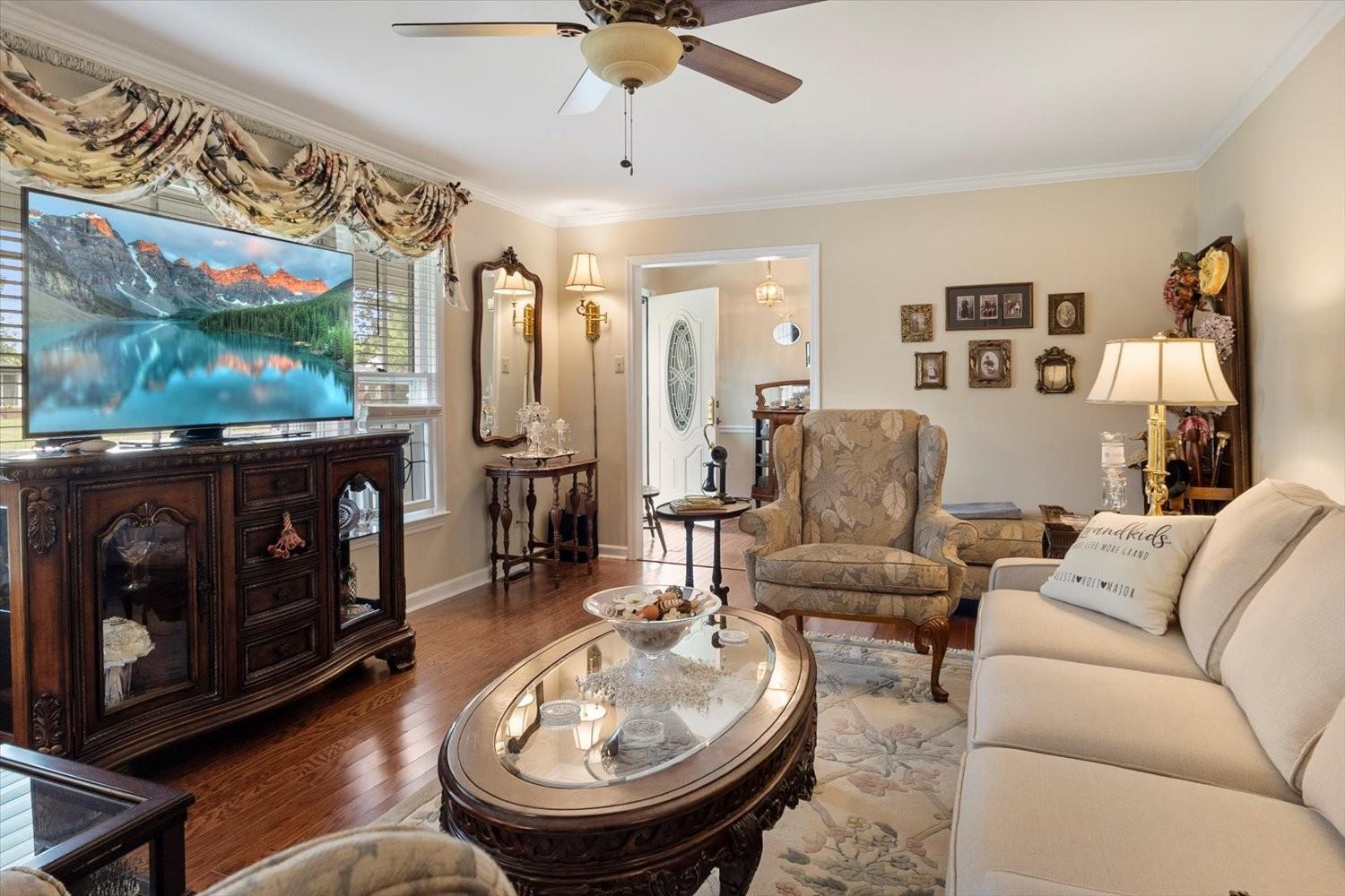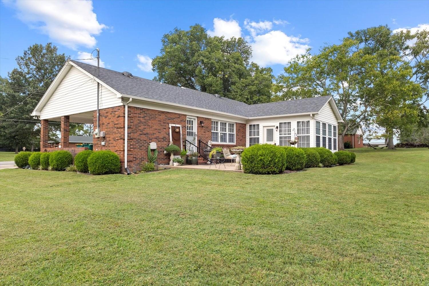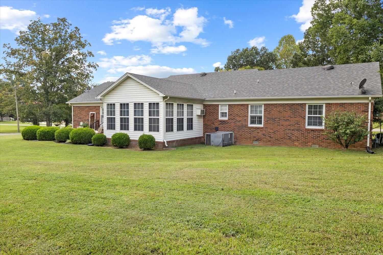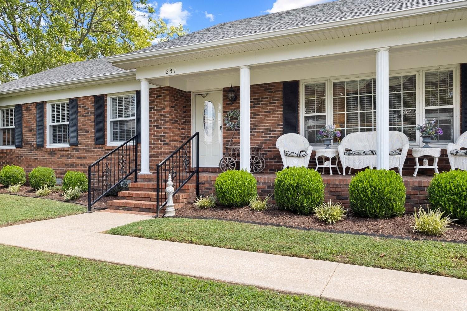 Welcome to this charming and pristine 1 level brick home nestled on a corner lot in a well established, and highly desirable location! This generous 2200 sqft home offers a delightful blend of comfort, convenience and quality! Boasts separate foyer, living, dining, and den with cozy gas fireplace, 3BRS, 2 BA, finished harwood floors, awesome updated kitchen w/stainless appliances granite/tile back splash/fixtures, and utility room w/desk. Enjoy the relaxing and light filled 240sqft sunroom w/separate heat and cool unit w/outside entrance. Nice outdoor patio, spacious level back yard, greenhouse and outbuilding, covered front porch, and the 2 way entry concrete drive. NO HOA! ATTENTION! Come, see, and you will love!