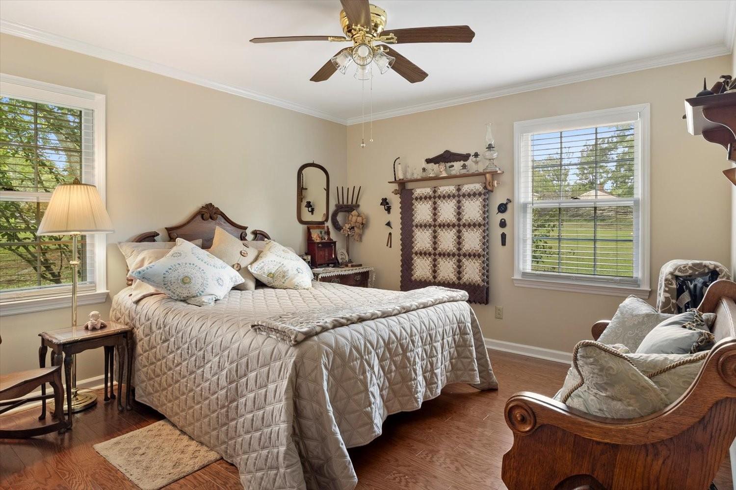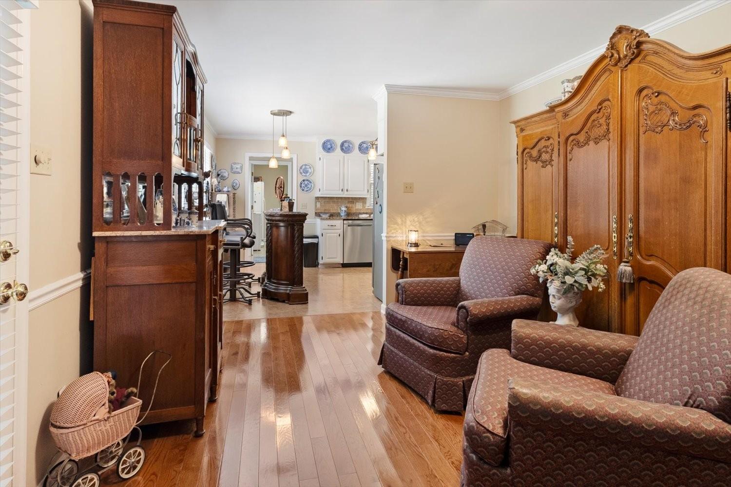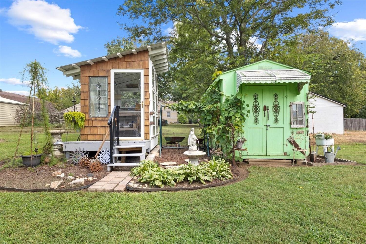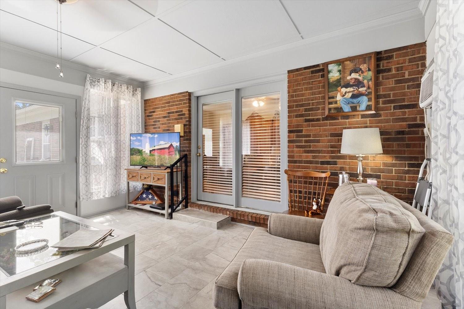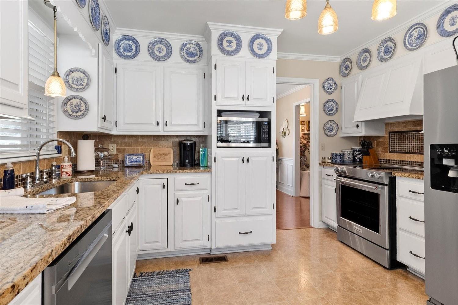Welcome to this charming and pristine 1 level brick home nestled on a corner lot in a well established, and highly desirable location! This generous 2200 sqft home offers a delightful blend of comfort, convenience and quality! Boasts separate foyer, living, dining, and den with cozy gas fireplace, 3BRS, 2 BA, finished harwood floors, awesome updated kitchen w/stainless appliances granite/tile back splash/fixtures, and utility room w/desk. Enjoy the relaxing and light filled 240sqft sunroom w/separate heat and cool unit w/outside entrance. Nice outdoor patio, spacious level back yard, greenhouse and outbuilding, covered front porch, and the 2 way entry concrete drive. NO HOA! ATTENTION! Come, see, and you will love!