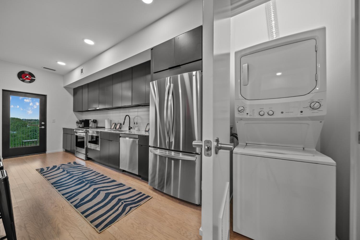 Welcome to “A Condo Named Blue,” Unit 403 at Eve on the River, an income-producing Non-Owner Occupied Short-Term Rental (NOOSTR) permitted for up to 8 guests. Perfectly positioned on the Cumberland River, this turn-key 2 bedroom, 1 bath condo delivers both immediate rental income and long-term appreciation potential. Guests enjoy the stylish queen bedroom, a private nook with twin trundles, a queen sleeper sofa in the living room, a fully equipped kitchen with new stainless steel appliances, and a private balcony showcasing sweeping river views and Nissan Stadium. Located less than a mile from Broadway, Bridgestone Arena, and Nissan Stadium, with a Walk Score of 75, guests can walk to award-winning dining, the Farmers Market, First Horizon Park, and Nashville’s top entertainment. Eve enhances the guest experience with secure access, and free covered parking. With only 28 total units in the building, Eve offers an exclusive and boutique ownership experience that stands out in the Nashville STR market. For investors, the upside only grows as the East Bank redevelopment and River District projects bring new parks, retail, dining, and mixed-use development to Nashville’s riverfront, creating even more demand and long-term value. Unit 403 offers the perfect blend of cash flow now and appreciation tomorrow, a strong opportunity to own a high-performing NOOSTR in one of Nashville’s fastest-growing districts.