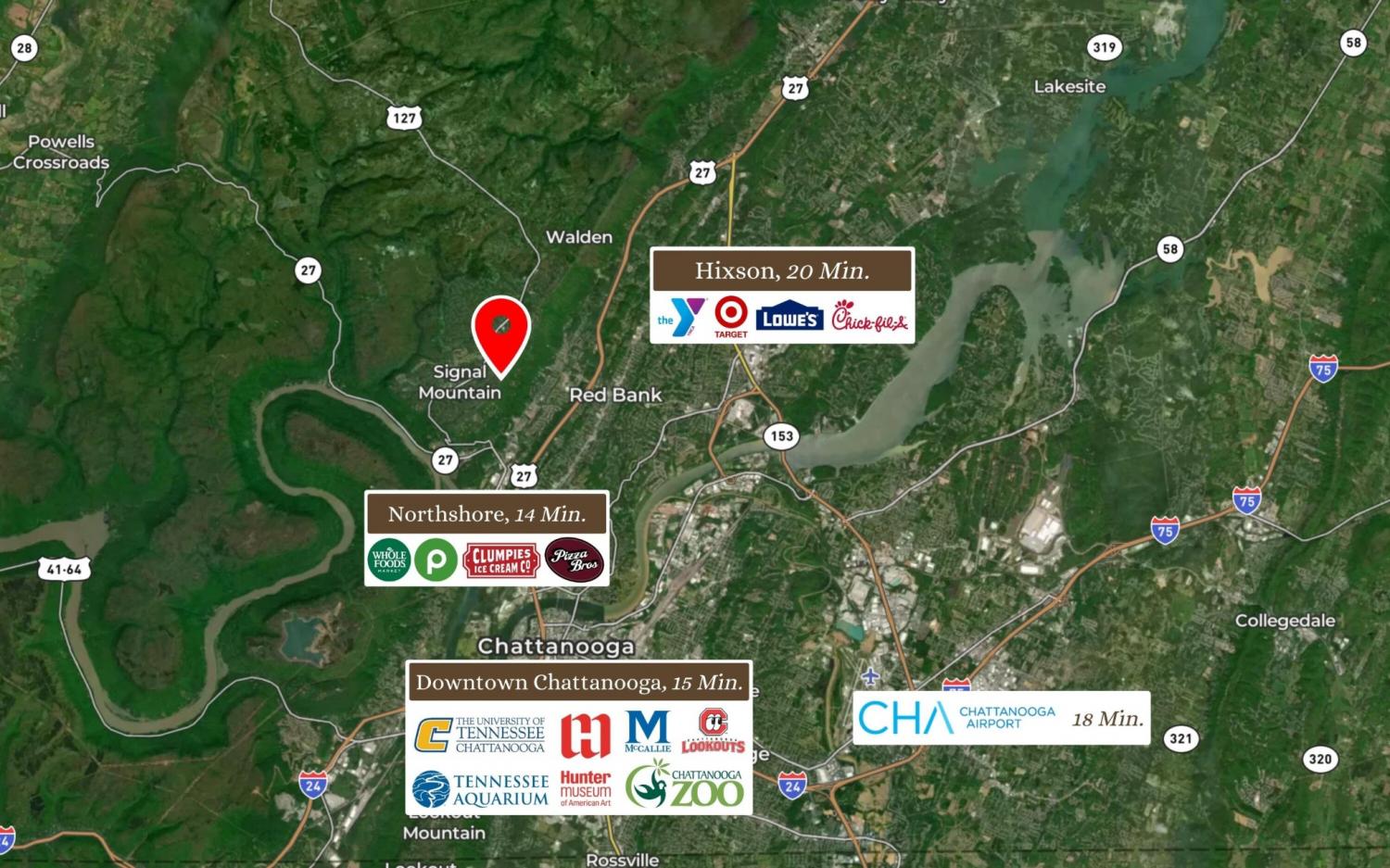 From Downtown Chattanooga: Take Hwy 27N to Signal Mtn Blvd exit. Continue to follow Signal Mtn Blvd/Hwy 127N up Signal Mountain. R onto Hampton Road, R onto Brow View Lane. Home will be on the left.