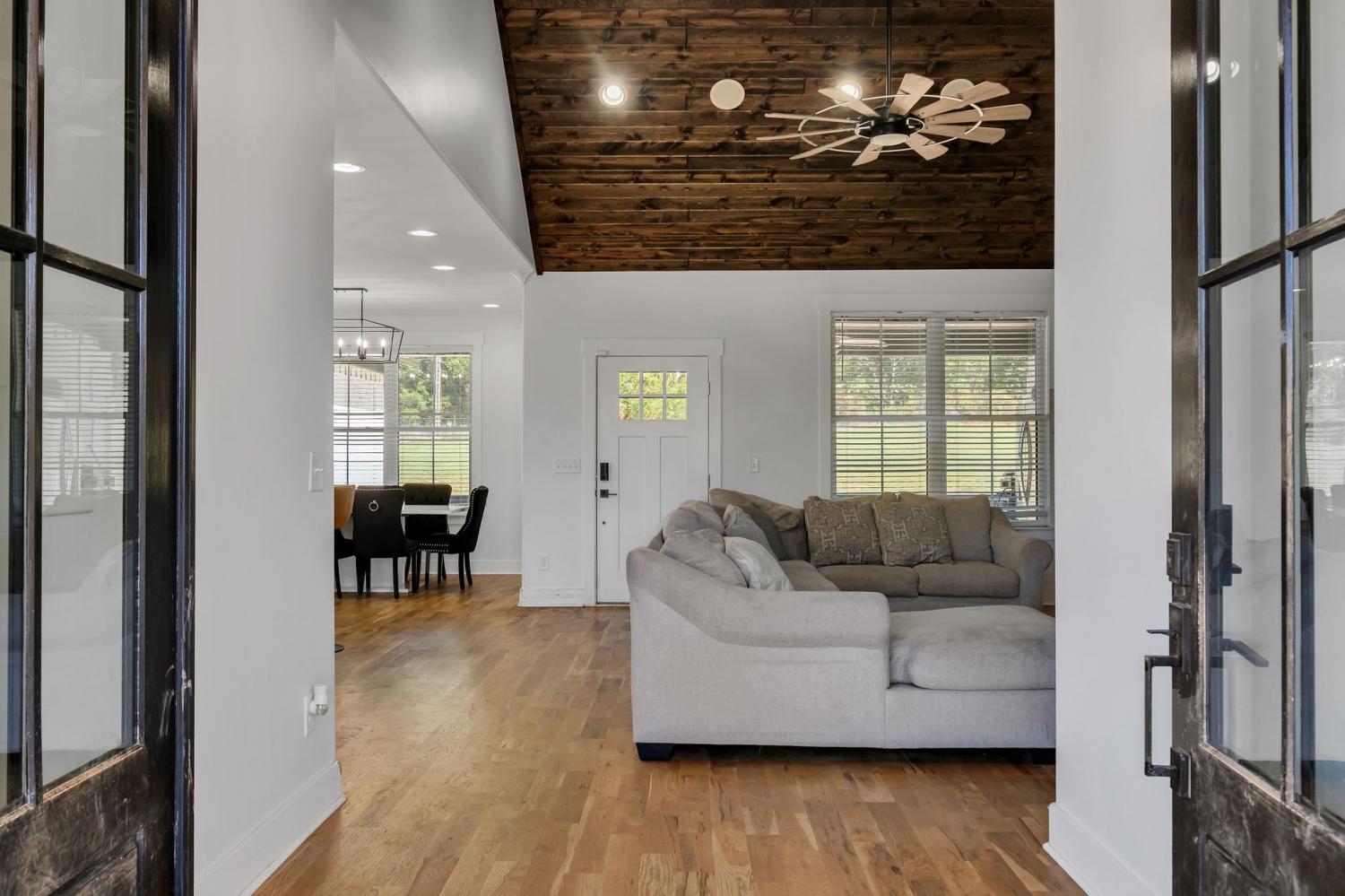 Discover the ultimate in single-story luxury living in this fabulous all-brick home * Peaceful country oasis, featuring 2.35 acres of level, clear land, perfect for relaxation, outdoor activities or your own personal mini farm * No HOA and no restrictions * Beautiful sand and finish hardwood floors throughout home (No carpet) * Custom tile in all bathrooms * Gorgeous beaded wood ceilings in living area, master bedroom and secondary bedroom * Quartz countertops throughout * Kitchen offers large island and walk-in pantry * Master bedroom suite has garden tub and walk-in tile shower * Spacious laundry room connects to master walk-in closet * Surround sound speakers in home and back porch * Bonus room upstairs has a full bath (currently being used as 5th bedroom) * Large front and back covered porches * Extensive concrete patio with basketball goal * All concrete is stamped * Oversized two car garage is currently be used as a workout gym * Located minutes to Downtown Columbia Square, shopping and entertainment