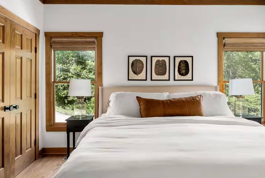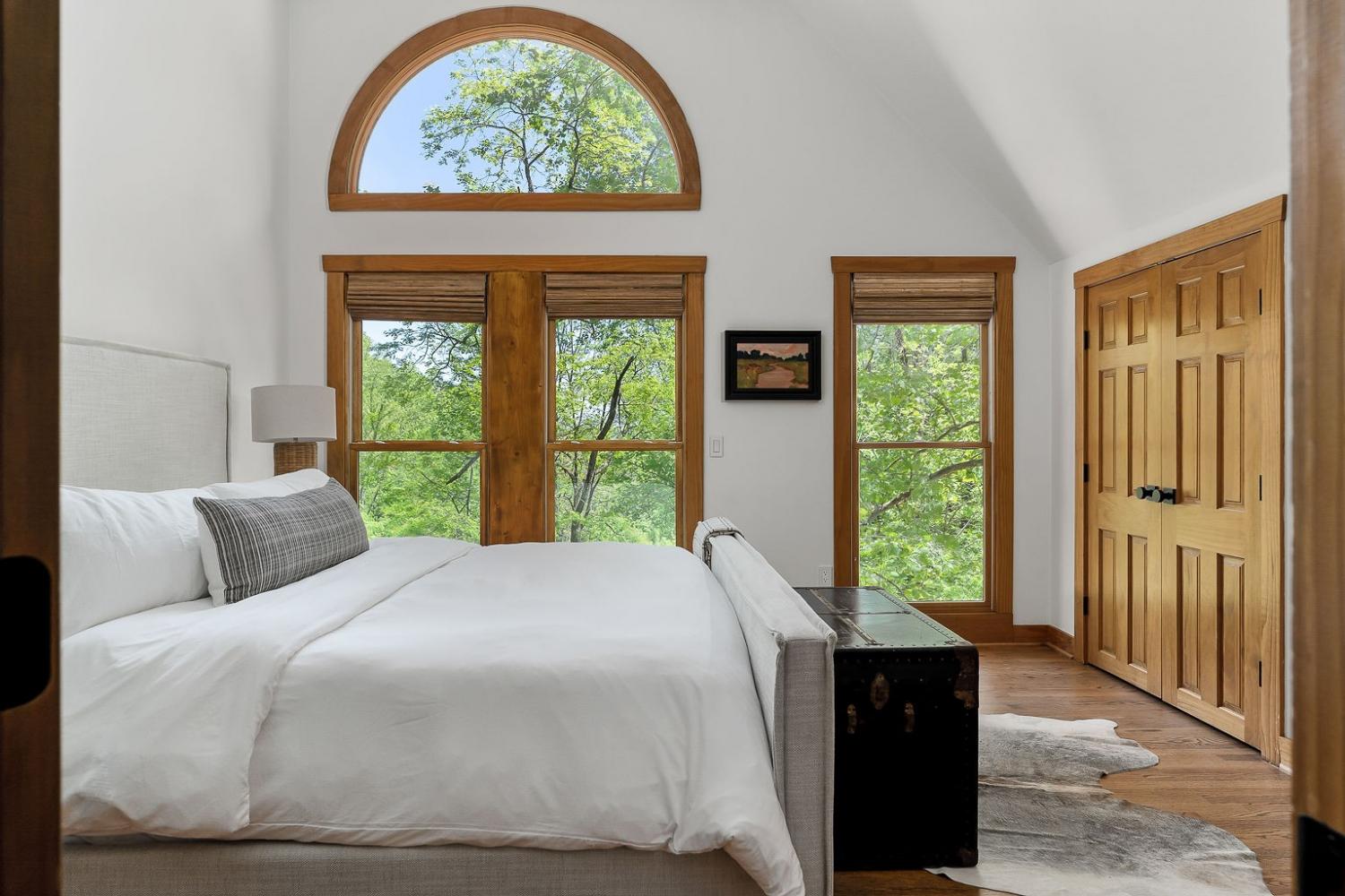 From Nashville, take I-40 E to Exit 258. Turn right, go 11 mi, then left on TN-96 N. After 2.3 mi, turn right toward Bayview Dr, go through gate, then left on Bay Dr. 120 Bay Dr is the first house on the right.