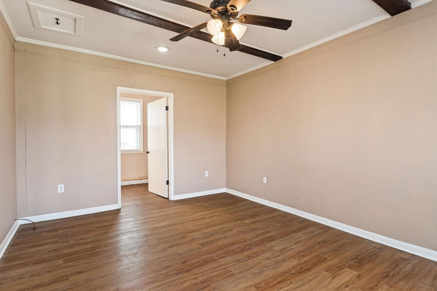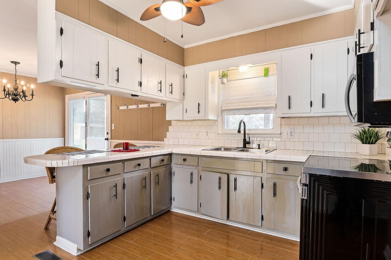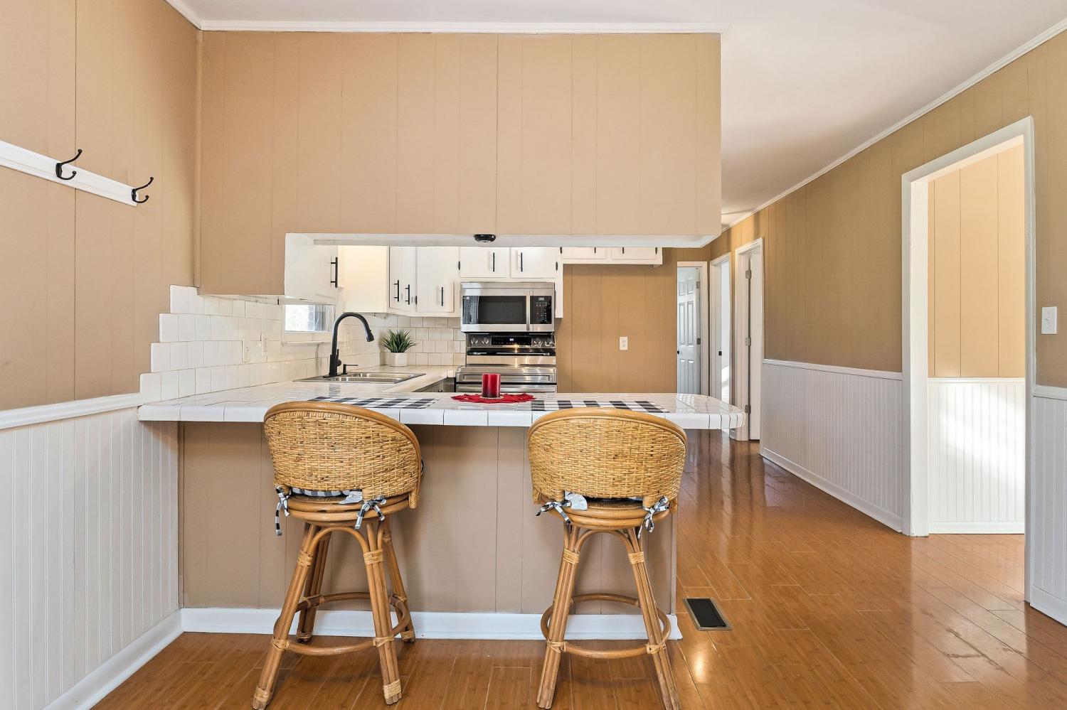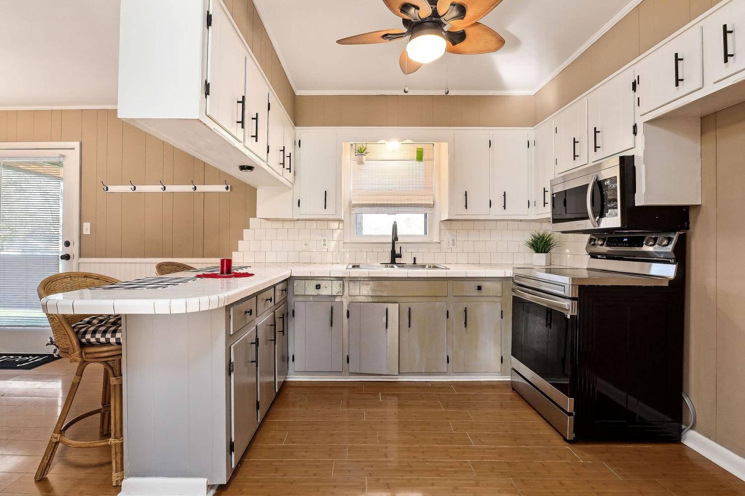 Don't wait to see this well maintained and move-in ready older home. Convenient location with no city taxes. OWNED BY THE SAME PERSON SINCE BEING BUILT. NO CARPET. Laminate wood bamboo flooring in all main rooms, new LVP in flex room (you decide what suits you best...family room, playroom, office, or add additional primary BR) and in Utility room. Bath has vinyl flooring, new commode, and tub/shower combo. All 3 bedrooms are nicely sized. Kitchen/dining combo with new stainless stove and built-in microwave. All brick home with metal roof with new screws and painted just last year. Large living room . Covered front porch and covered patio at back. Paved driveway. And here's the best part...this home is move-in ready! Only about 8 minutes from Lowe's and Wal-Mart, restaurants, and more. Pond in the back is not part of this property. Owned by the nursery on Meiser Lane.