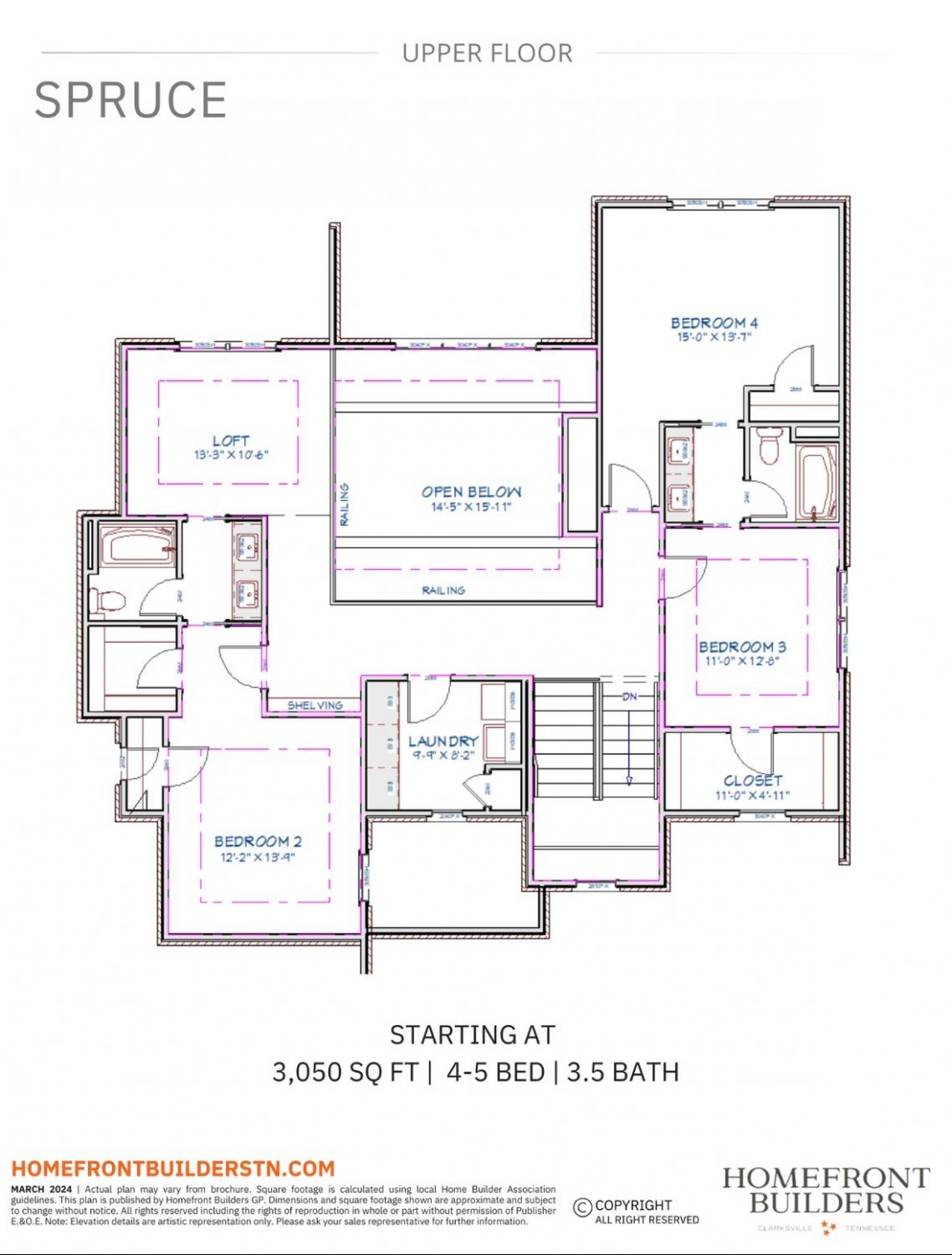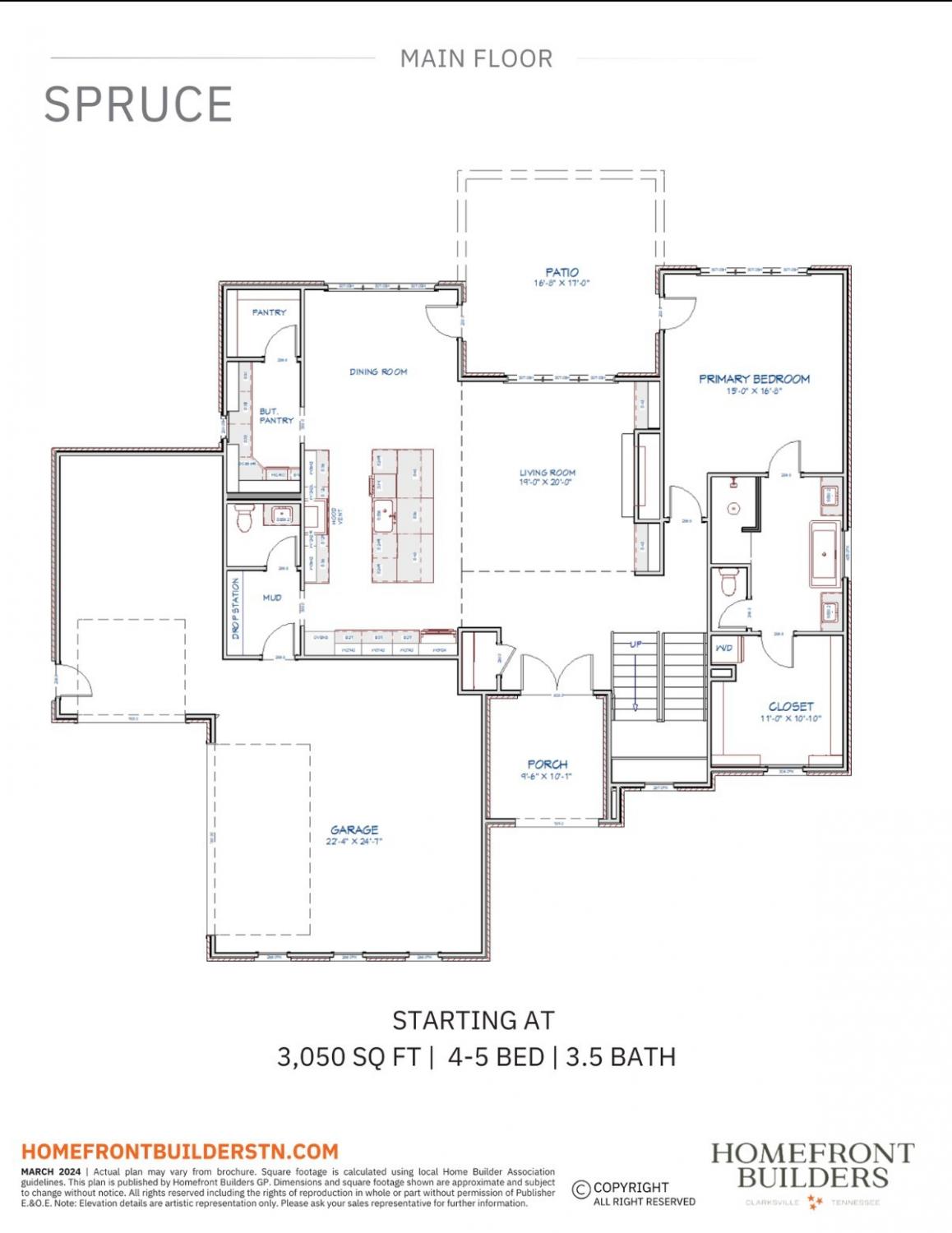 Discover The Spruce, a brand-new construction designed with luxury living in mind. This 4 bedroom, 3.5 bathroom home offers an impressive blend of function and sophistication. Step inside to soaring two-story living room ceilings, filling the space with natural light and creating an open, airy feel. The chef-inspired kitchen is equipped with a prep kitchen and a butler’s pantry—perfect for entertaining and keeping the heart of the home clutter-free. The primary suite is a true retreat, featuring a spa-like bathroom and an oversized closet with a built-in washer and dryer for everyday convenience. Located in the desirable Savannah Lakes neighborhood, enjoy the walking paths, mature landscaping, and easy access to Sango, Clarksville, and Nashville. With a 3-car garage, thoughtful storage solutions, and high-end finishes throughout, The Spruce balances elegance with everyday livability. Every detail reflects Homefront Builders’ commitment to quality built homes. Homefront Builders offers the option to customize floor plans or start from scratch, this is the proposed plan but it's not too late to make changes and selections.