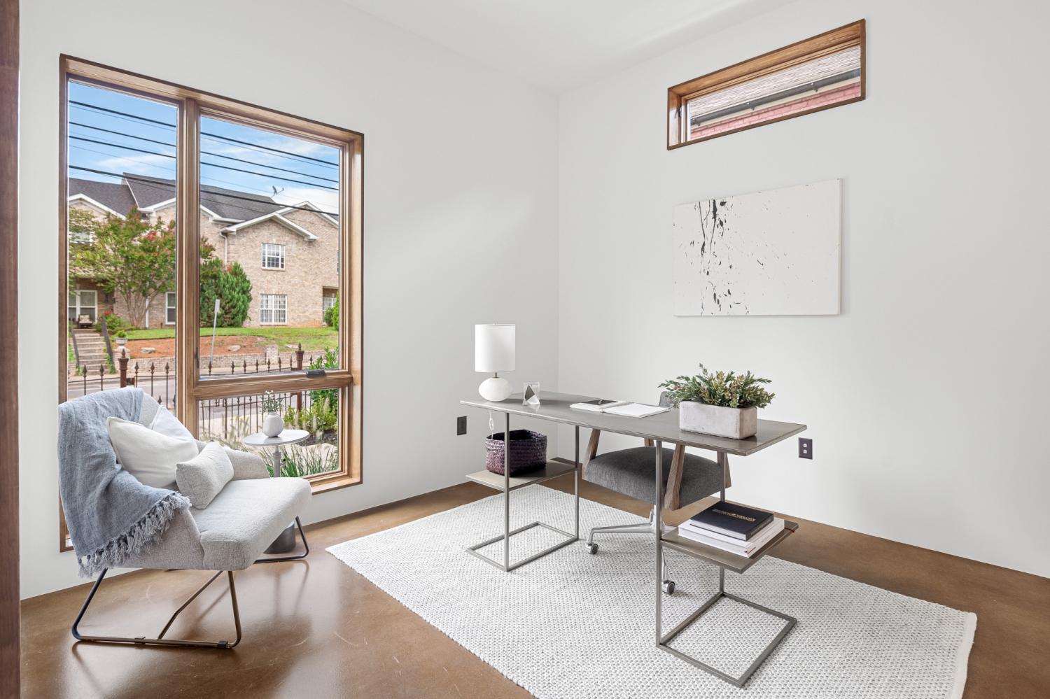 Now available for lease in Germantown—this one-of-a-kind property offers over 4,700 sq ft of stylish, well-planned living space across two separate structures. The home is unfurnished and available for 90, 180, or 365-day lease terms, with pets considered on a case-by-case basis. The main house includes 4 bedrooms, a spacious second-floor primary suite, and a top-floor flex space featuring a wet bar, full bath, and a private terrace with views of downtown Nashville. Throughout the home, you’ll find high-end finishes like white oak floors, custom cabinetry, polished concrete, and floor-to-ceiling Pella windows and doors. The detached guest house offers a full kitchen, bedroom, bathroom, and bonus space, which is ideal for a home office, studio, or workout area. Outside, enjoy your own private garden courtyard, a pool, and multiple areas designed for entertaining. All of this just blocks from Germantown’s restaurants, shops, and everything downtown Nashville has to offer.