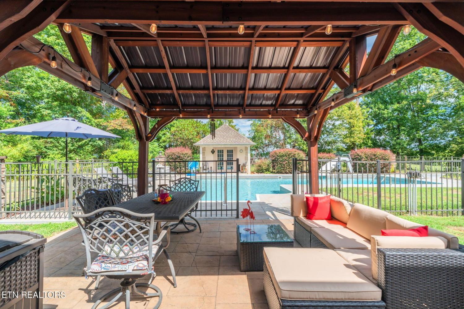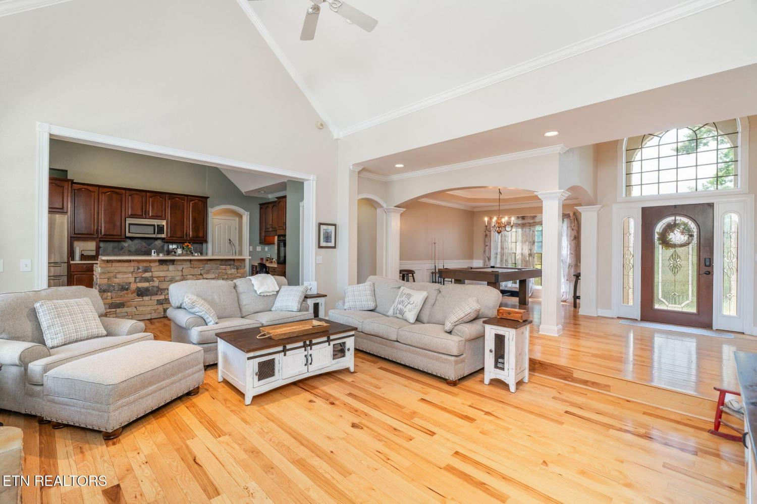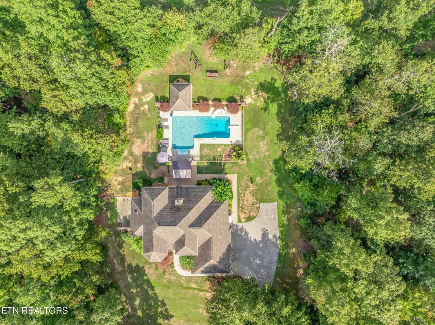 AMAZING HOME WITH NEARLY 6 ACRES OF PRIVACY!! FIRST TIME ON MARKET! Custom built home in immaculate condition with an open floor plan, master on the main, hickory hardwood floors throughout except in the baths and theatre room. Kitchen features a cathedral ceiling, archways, custom cherry cabinetry, corian counters, Samsung stainless appliances convey, new disposal, butler's pantry, desk area, island, breakfast area overlooking the pool, formal dining area with trey ceiling and columns, Samsung stainless appliances convey, owner is using electric but natural gas is available, living area is open to all the main level and upstairs, features a stackstone wood burning fireplace but owner is currently using a gas insert, living area has tinted windows on the front and back and exits to the large covered patio that you can enjoy year round. From the patio is more concrete with a recent gazebo added for more outdoor living space. Wrought iron fencing with brick columns featuring lighting, surrounds the true L shaped inground pool with a large walk in shallow area and owners added a foot deeper in the end with the slide and diving board. Pool house is finished nicely, features crown molding, fresh paint, a half bath and plenty of storage area. It also has a door opening to the rear with the pump out of sight and no noise while you enjoy the pool. The pooll has been updated with a new salt system, motor, light, a borderless liner and a new cover. Back inside the living area is completely open and great for entertaining and the host will never be secluded in the kitchen. Also on the main level you will find a large office with french doors (could be used for a nursery or a bonus room if needed) Master is on the main and also walks out to the covered patio, large master bath with dbl vanities with granite, plantation shutters, walk in closet, jacuzzi tub, a large (recently renovated) walk in tile shower.