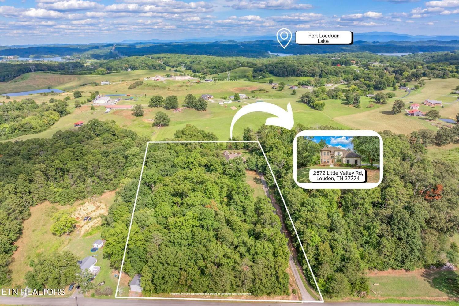 Hwy 444 to Tellico Village, right on Poplar Ridge Rd, left on Poplar Springs Rd, left on Chili Ln, left on Little Valley, property on right
