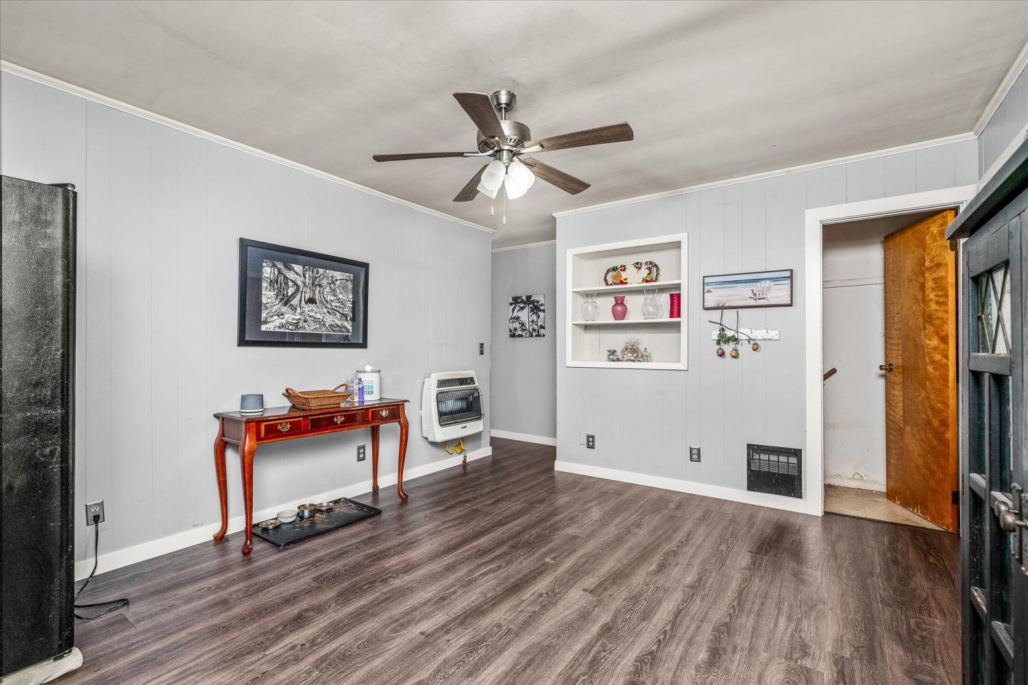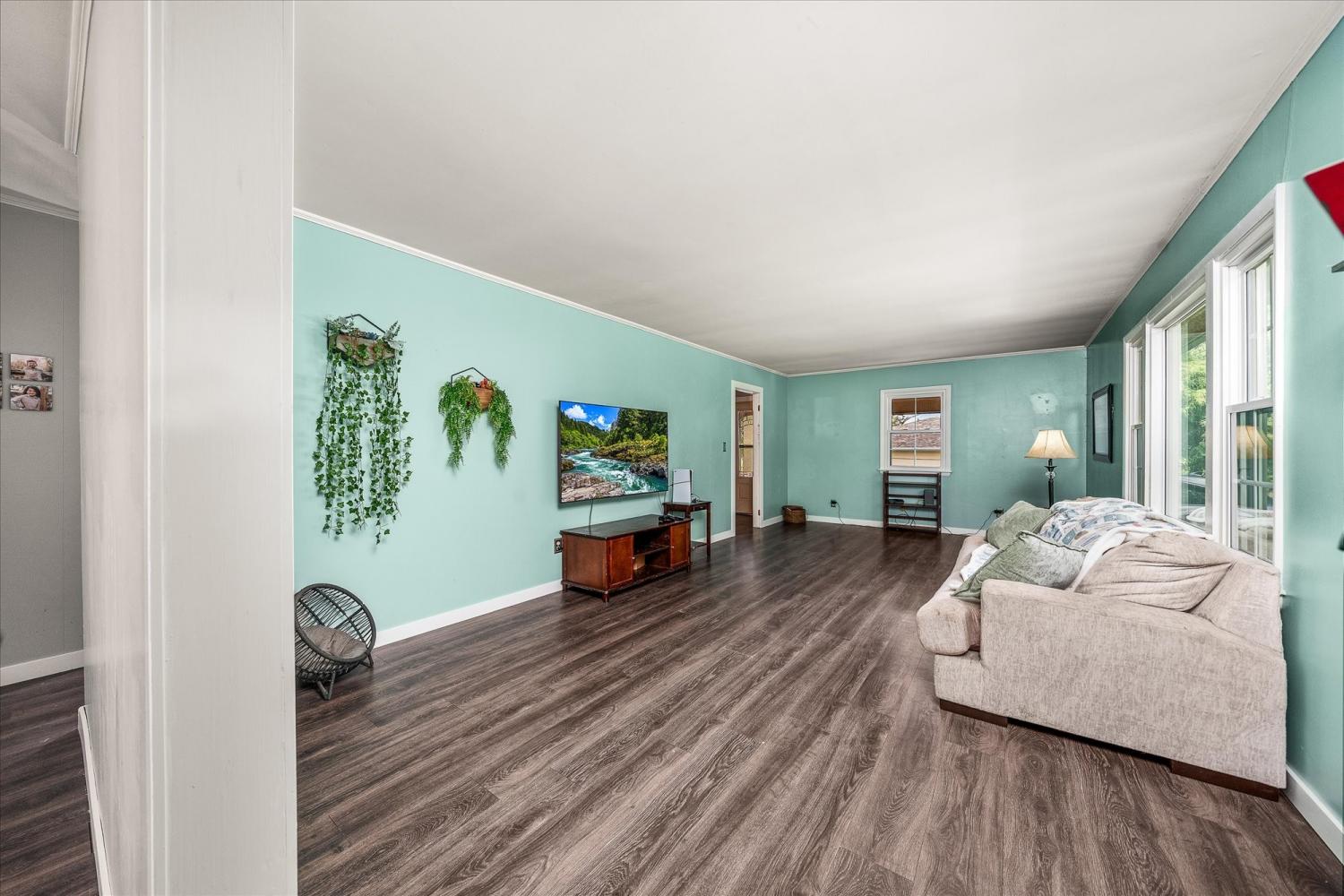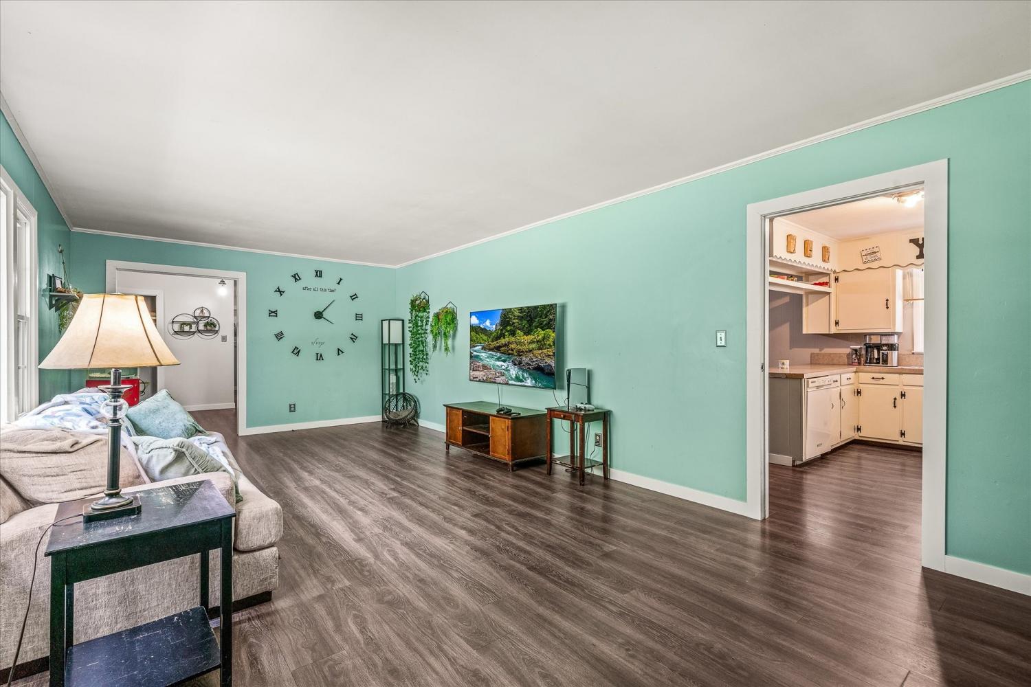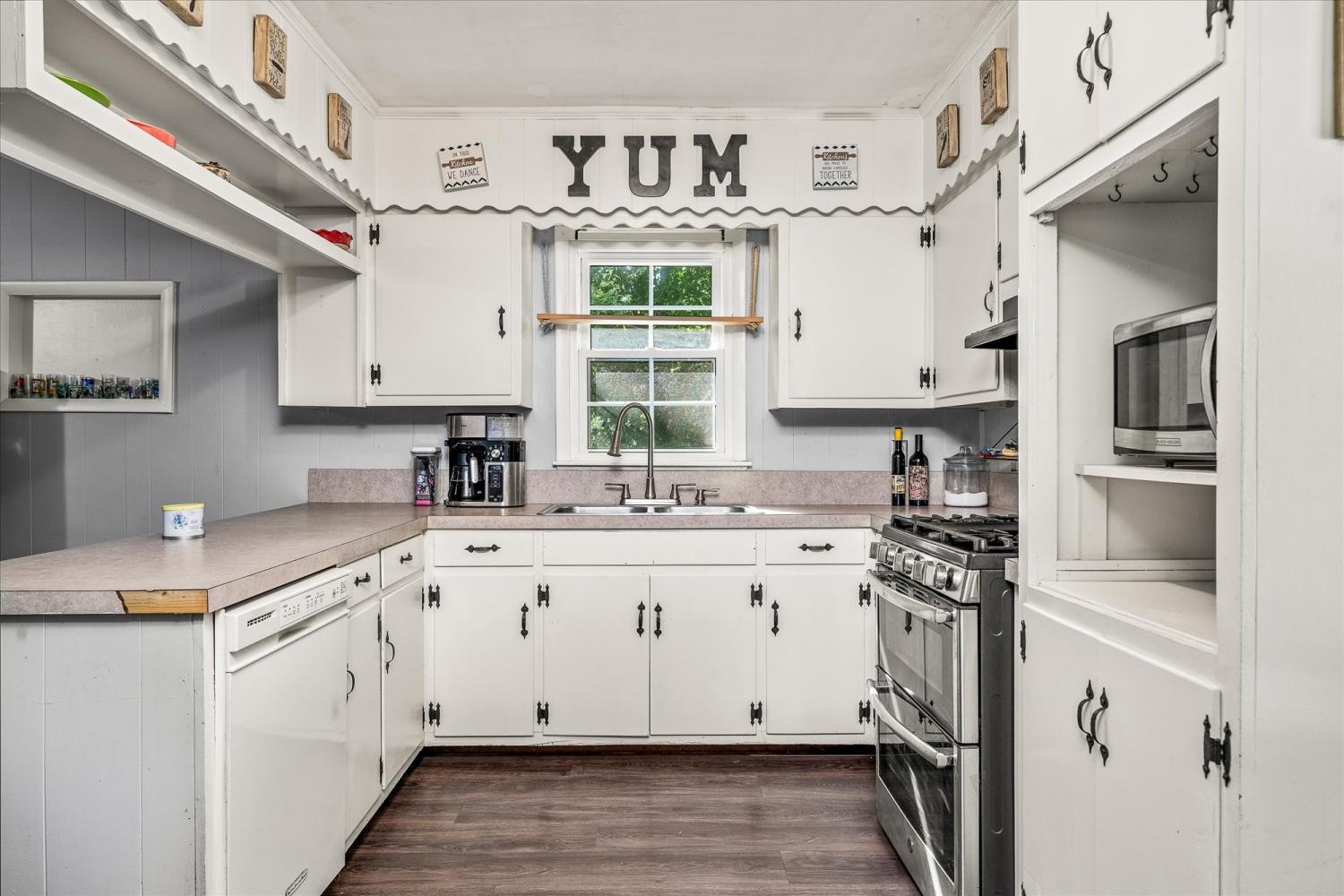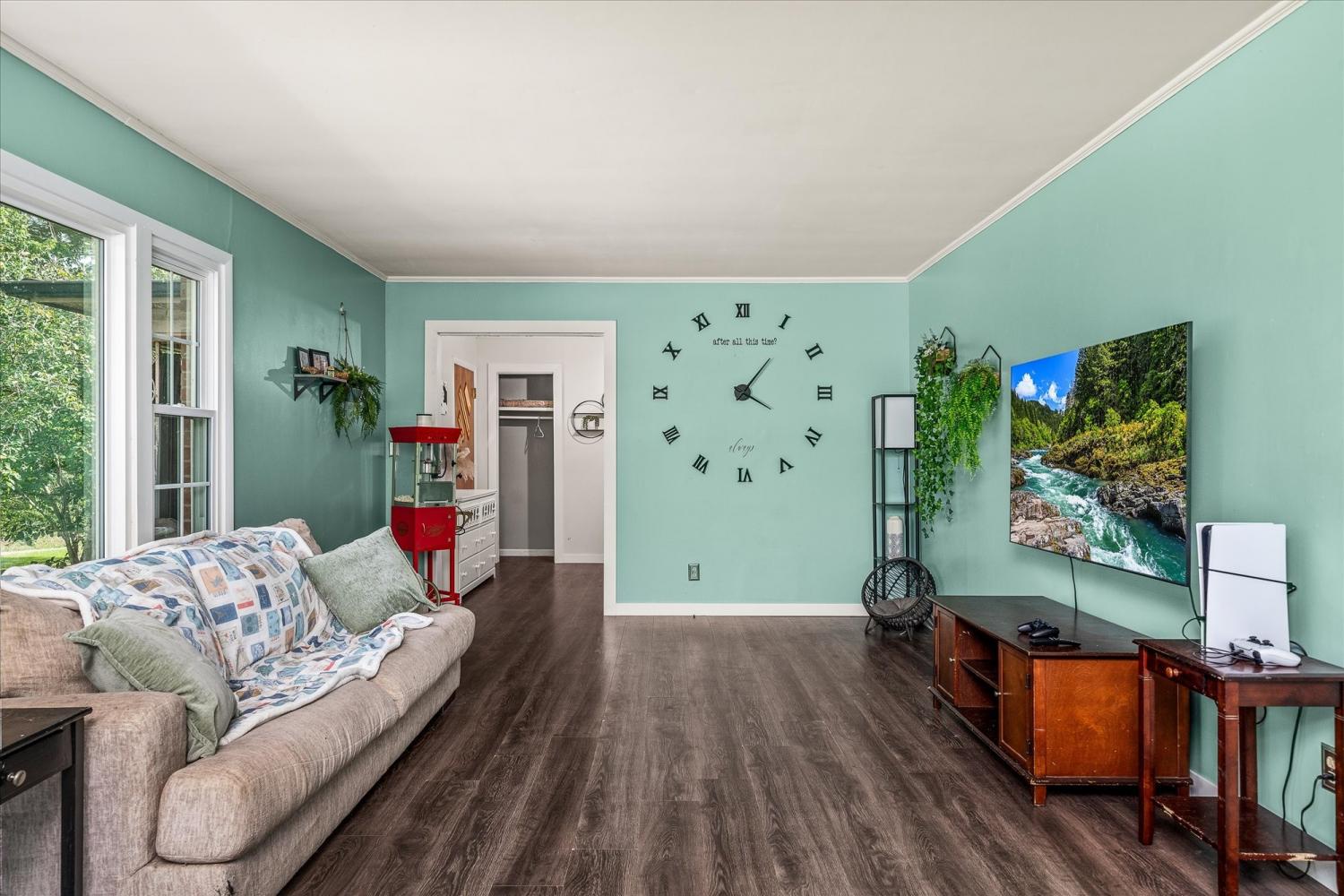 Brick ranch home on a 1 acre with a peaceful setting! Your main items have been updated within the last couple of years including the roof, HVAC, windows, recently painted throughout, updated floors, your full bathroom was updated with a tiled walk-in shower + more! Pulling up, you have a covered front porch leading to your foyer. To the right you have your formal living room that leads into your kitchen and dining area and also has access to your carport and covered back porch, fenced in yard, and cute fire pit area! To the left of the foyer are your three bedrooms and 1.5 bath. There is also a full, partially finished basement that could be finished as more living square footage and is plumbed for a bathroom. There is also walkout access and perfect room for dry storage or a workshop!You have level land that is also unrestricted if you would like to have any animals such as chickens, etc.! New survey is on file. Cash or conventional loans only. 13 month home warranty.