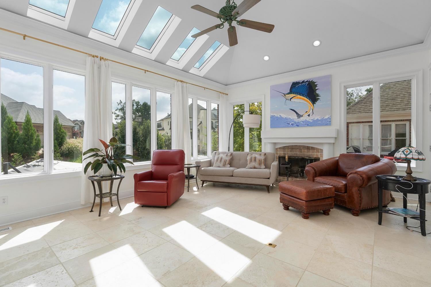 Welcome to 1934 Aviara, a private estate in the coveted & gated East Brainerd premier neighborhood, The Legends, where timeless craftsmanship meets modern luxury. This all-brick, one-level home with finished basement and backyard pool oasis rests on beautifully landscaped grounds designed for both entertaining and everyday living. The stunning chef's kitchen renovation is the heart of the home, showcasing marble countertops, premium appliances, floor-to-ceiling cabinetry, expansive prep and storage space, and two oversized islands. Designed for both function and beauty, it flows seamlessly into the sun-filled living and dining areas. The primary suite offers a true retreat, complete with a sitting room, dual-sided fireplace, private patio, and a spa-inspired bathroom renovation boasting dual vanities, soaking tub, and an expansive glass-enclosed triple head shower. A custom walk-in closet with boutique-style organization completes this sanctuary. Beautiful real hardwoods span the main level, while new luxury vinyl tile enhances the daylight basement, full bath, and direct pool access. Outside, multiple covered and open-air patios, retractable awnings, a hot tub, and fountains enhance the heated gunite pool, creating a private resort atmosphere. Additional upgrades include a fully encapsulated basement with storage, natural gas tankless water heater & all new rain water drainage system. With meticulous millwork, coffered ceilings, multiple fireplaces, and whole-home improvements throughout, this residence offers a rare combination of grandeur, comfort, and thoughtful detail. Information is deemed reliable but not guaranteed. Buyer to verify any and all information they deem import