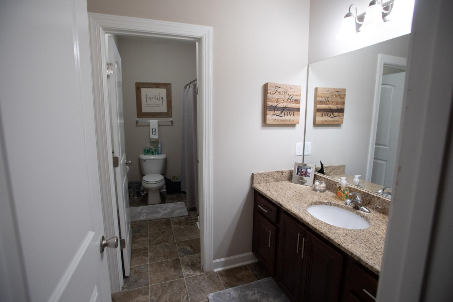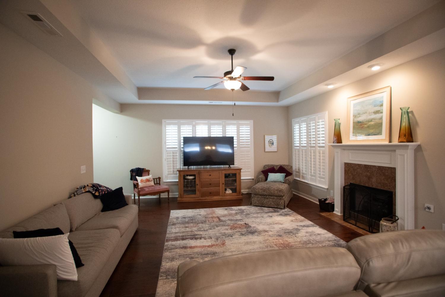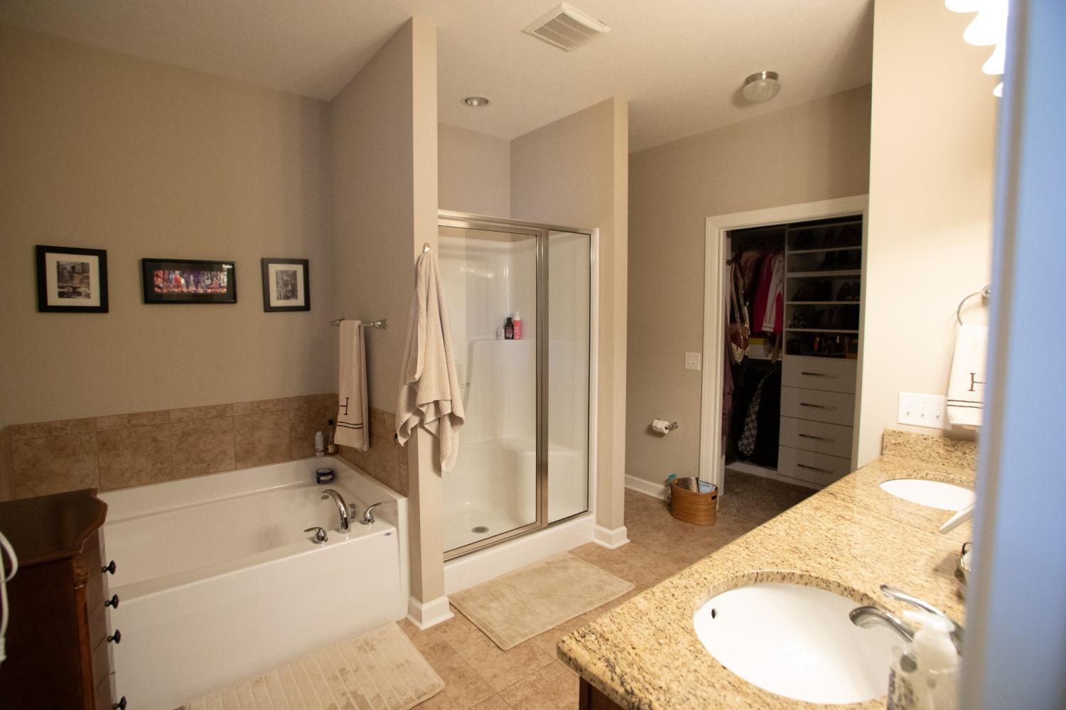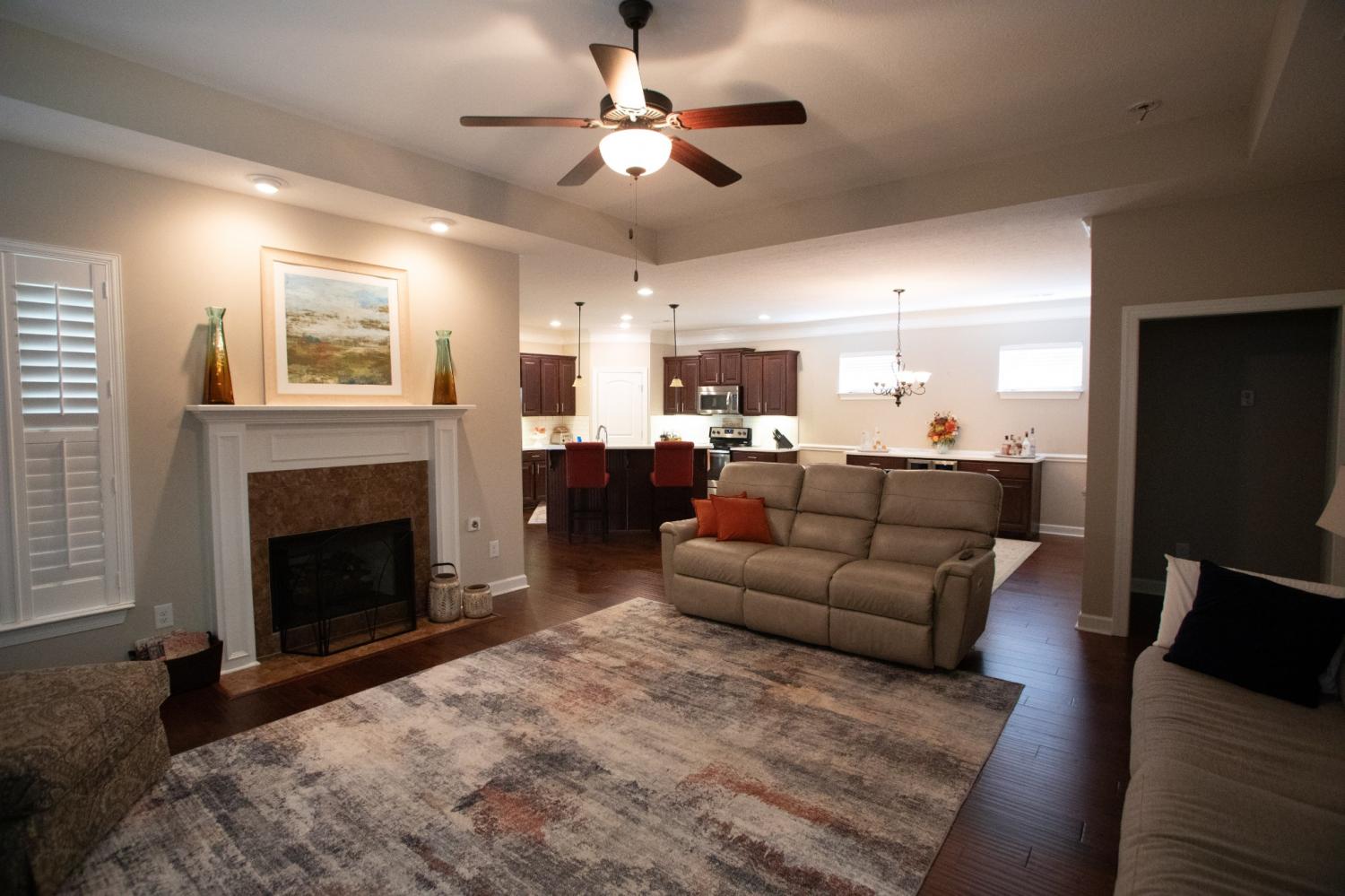 Corner Lot Home with fresh paint inside, The Peyton plan, an all 1 level home with a unfinished bonus room on the 2nd Floor. Whole house has Plantation Shutters. Open Floor plan with Hardwood floors. Kitchen has Newer Custom Cabinets, New Subway tile backsplash, and Quartz Countertops, includes a Wine and Beer Fridge in the Buffet Cabinet. Artisan Custom Closet in master bedroom closets. Newer Hot water Heater, And has a covered porch to relax on.