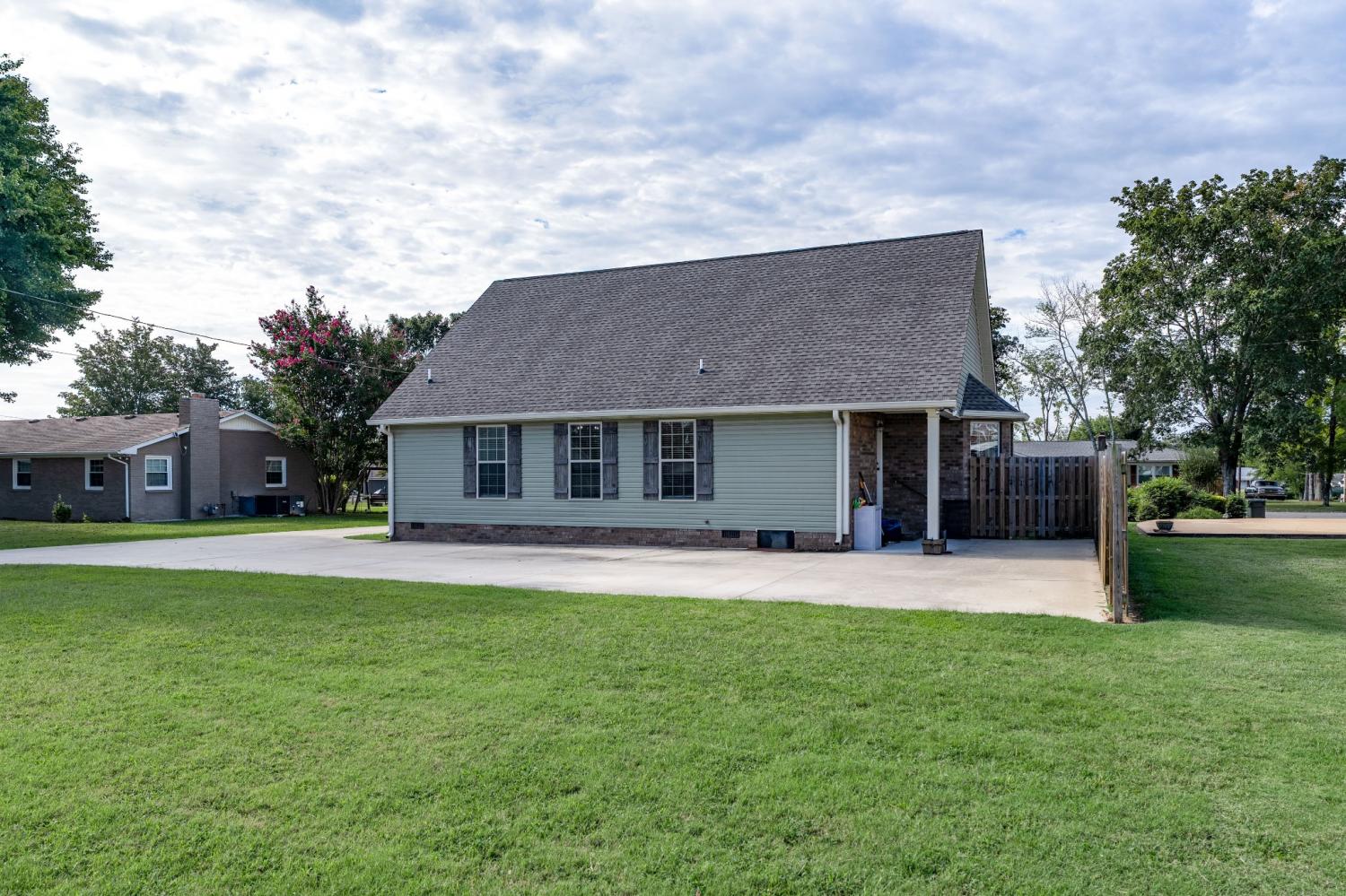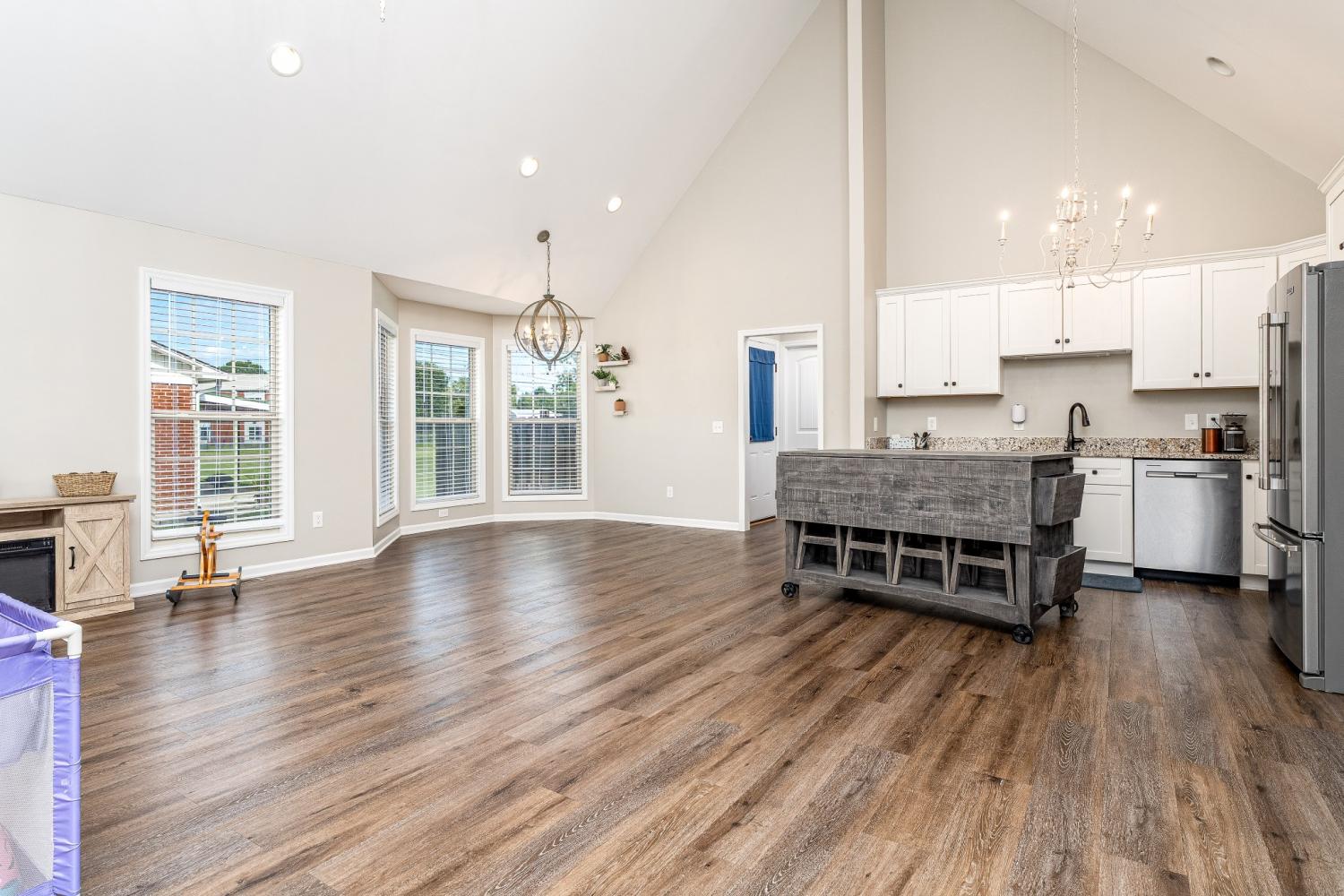 Welcome to this stunning 3-bedroom, 2.5-bath modern home located in one of Lawrenceburg’s most sought-after areas! From the moment you step inside, you’ll be greeted with a bright, open floor plan featuring soaring ceilings, gleaming wood floors throughout, and abundant natural light. Elegant vintage chandeliers add character and charm in every room. The kitchen is a dream with granite countertops, stainless steel appliances (all remain!), brand new refrigerator, a roll-away island, and a pantry for extra storage. Retreat to the private backyard with a concrete patio — perfect for relaxing or entertaining. Each bedroom offers large closets, and you’ll love that there’s no carpet anywhere in the home. Major updates include a 5-year-old roof, HVAC, and hot water heater, plus a water filter for the kitchen faucet. HVAC has been routinely maintained for peace of mind. This home also qualifies for USDA financing — making it an amazing opportunity you won’t want to miss!