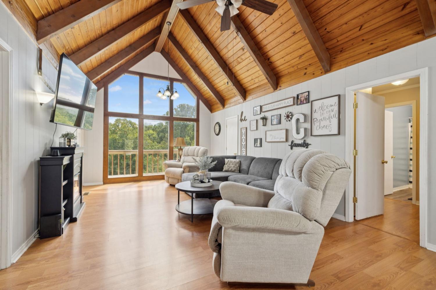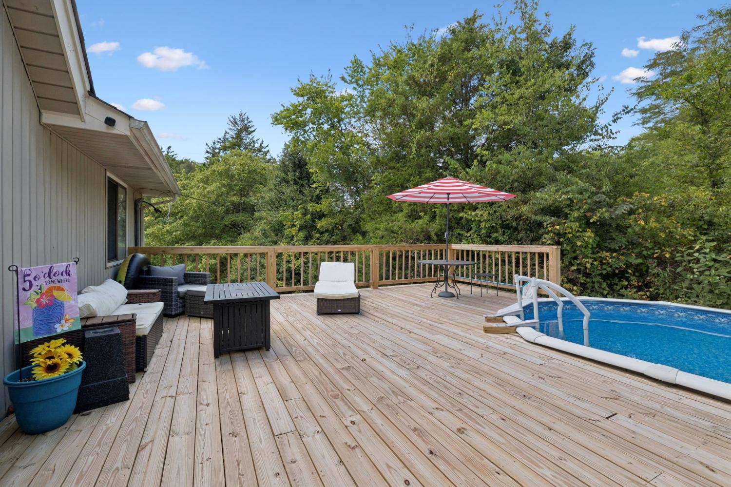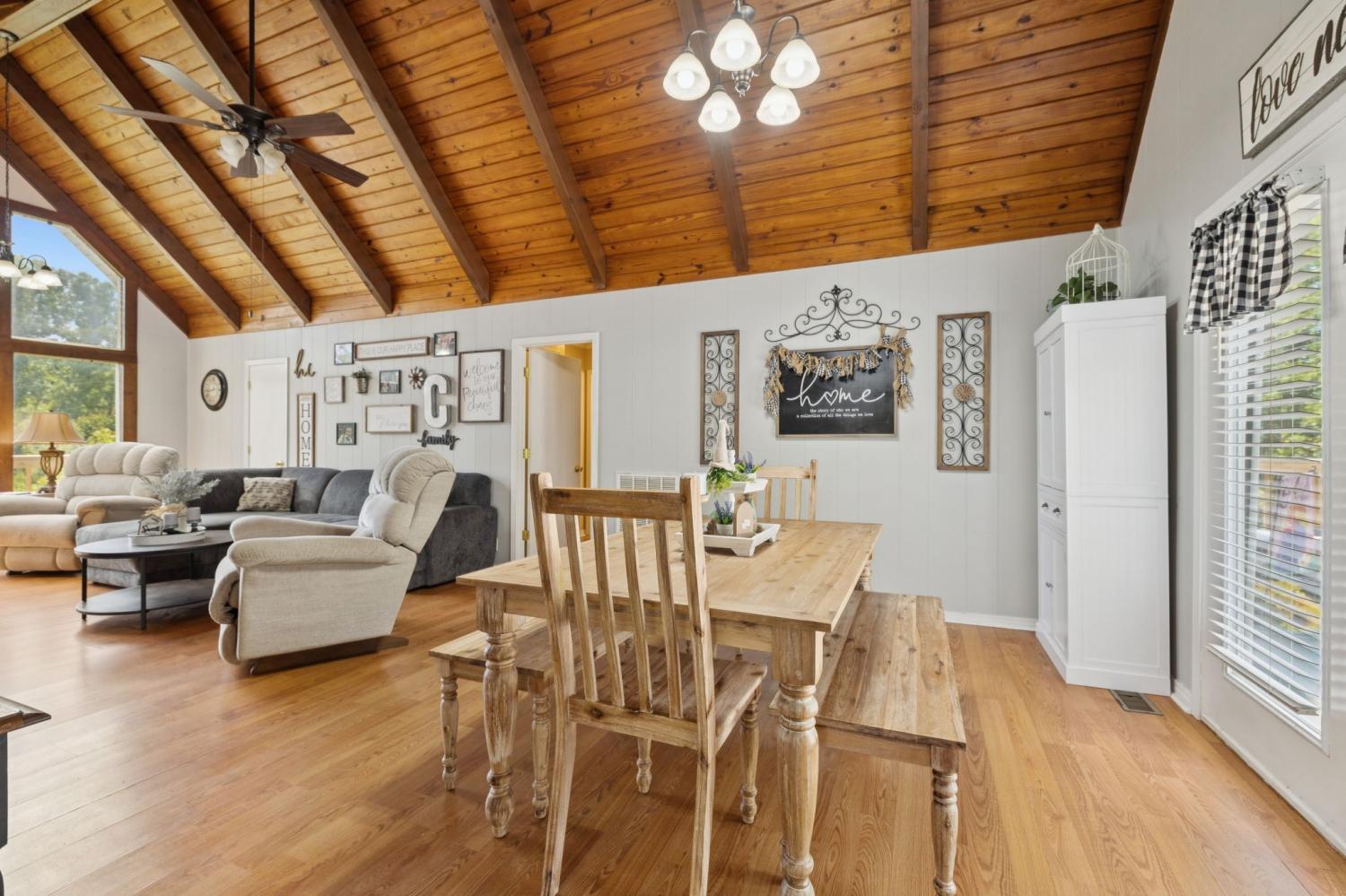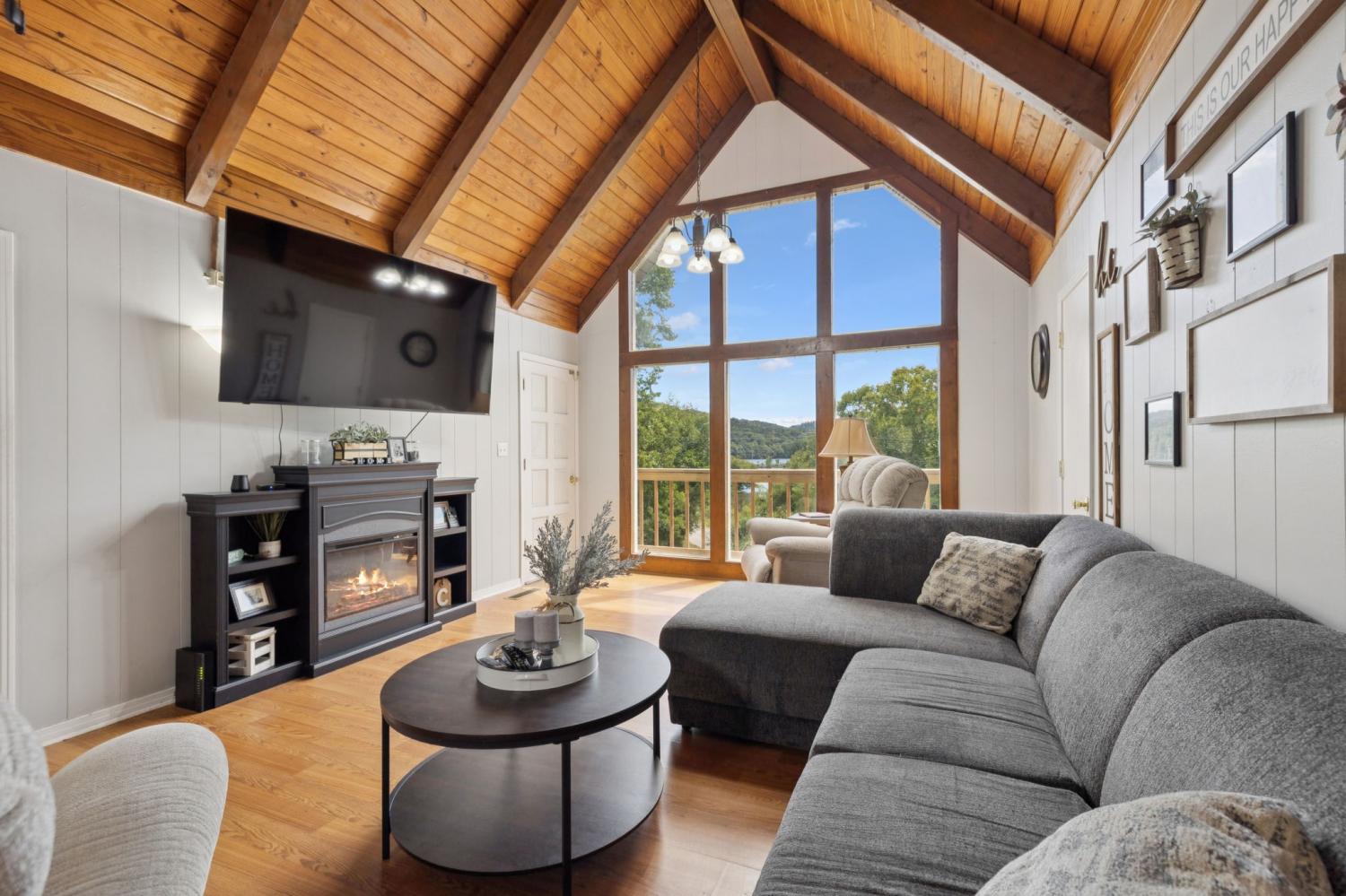 **Preferred lender to give 1% of purchase price as a credit towards closing costs!** Enjoy country living with lake views in this charming 1,352 sq ft home on a .67-acre surveyed lot. The property includes a full 1,288 sq ft unfinished basement with a one-car garage, offering excellent storage or expansion potential. Step inside to a warm interior featuring vaulted ceilings and wood accents, while outside you’ll find a new paved driveway, a brand-new deck, and an above-ground pool with a new liner—perfect for entertaining and relaxing. Recent updates provide peace of mind with a roof just 8 years old and a new HVAC system less than a year old. Located within walking distance to Defeated Creek Elementary School and overlooking Cordell Hull Lake, this property combines comfort, convenience, and natural beauty.