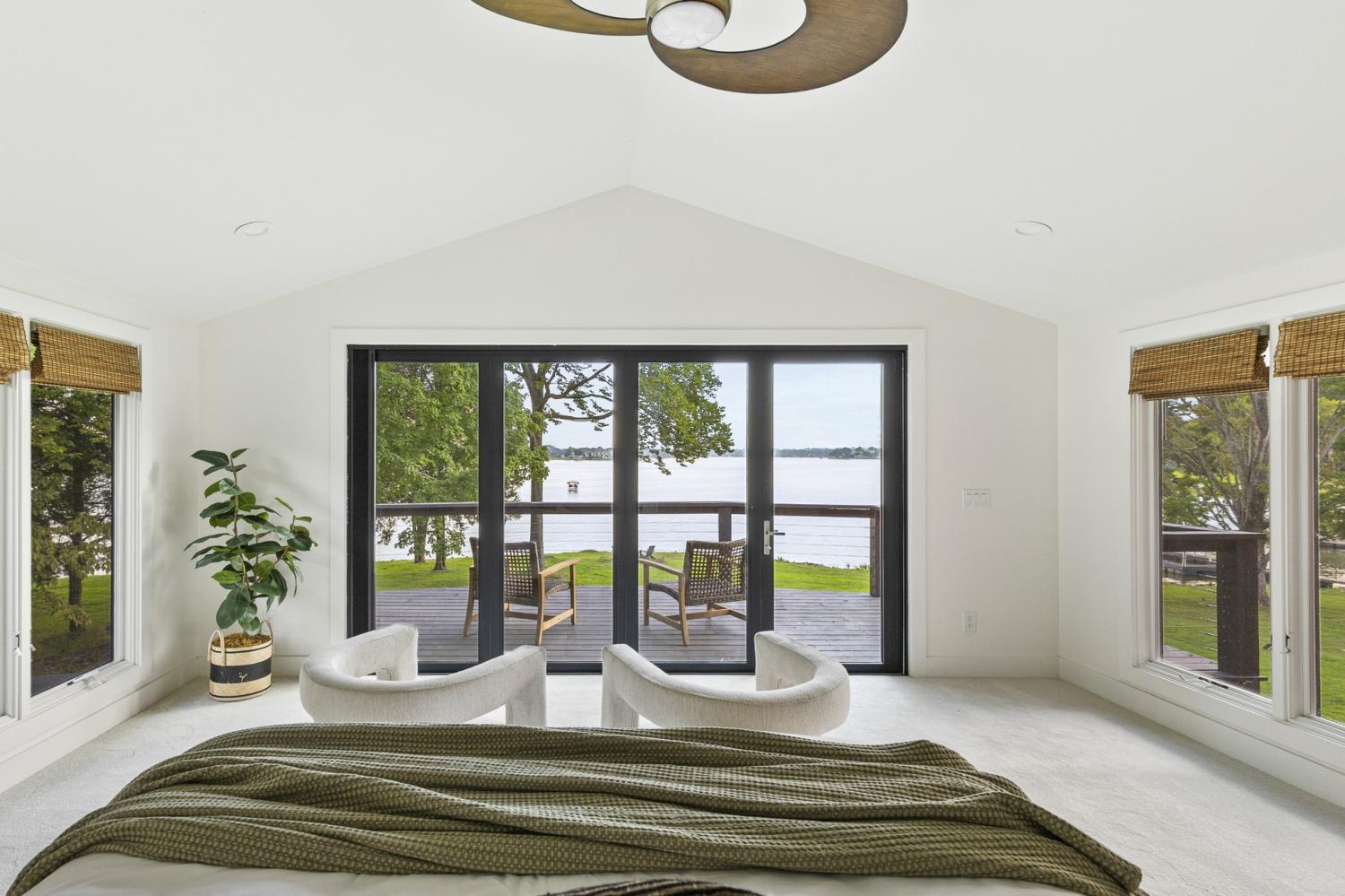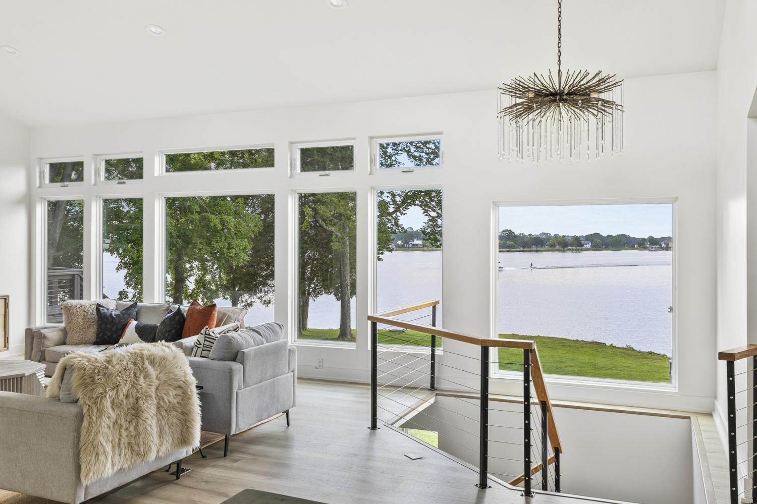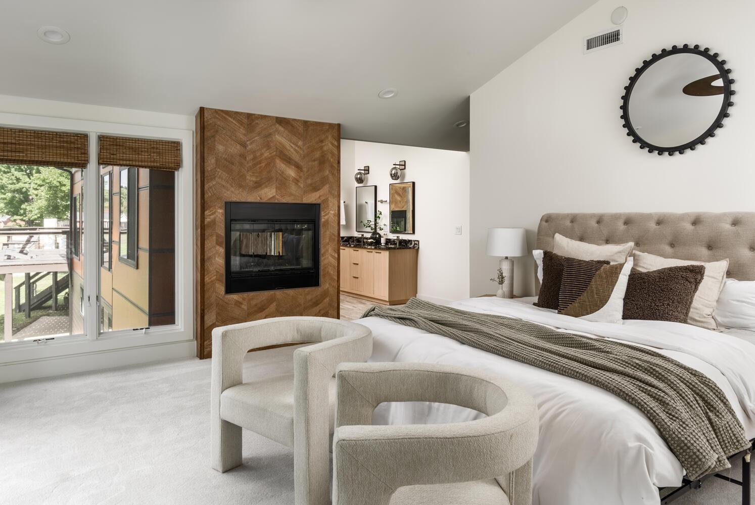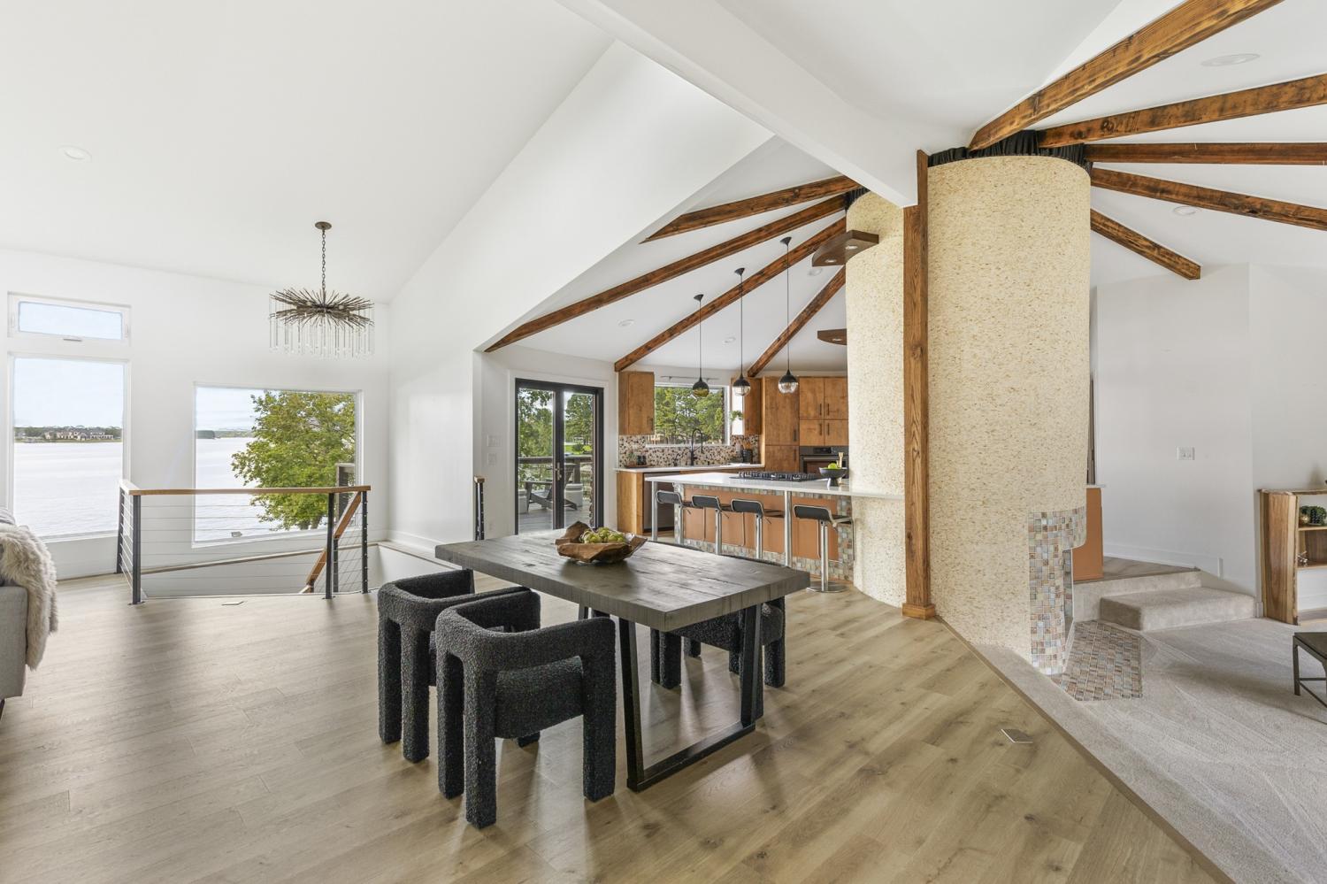 This 5,018-square-foot lake home is tucked at the end of a quiet cul-de-sac on the coveted Indian Lake Peninsula and sits on a point with approximately 250 feet of shoreline. It is a rare property, both in the top percentile for its incredible views and for being a flat, perfectly situated lot. The home was fully renovated in 2020 and updated throughout. It features four bedrooms, each with its own full bathroom, four and a half bathrooms in total, and a spacious, comfortable open layout that connects the kitchen, dining area, living room, and sitting area around a central circular fireplace. Large windows in the main living spaces showcase its stunning views of the lake.The primary bedroom is a peaceful retreat you won’t want to leave in the mornings, with a double-sided fireplace facing both the bed and bathtub, allowing you to take in the lake views from either spot. Downstairs offers a large family room with a fireplace and sliding glass doors for more lake views and access to the backyard, along with a bedroom that makes a great bunk room and an office that could also serve as a fifth bedroom. The office features lake views from two sides for an inspiring workspace. The lot combines expansive open lake views with mature trees that provide privacy and shade. The yard is relatively flat but sits safely above the waterline, making it easy to walk to the lake without stairs. A two-car garage and carport offer plenty of parking options, while a circular driveway is perfect for guests and deliveries.There is ample room to enjoy the outdoors, whether you’re watching the sunset from the dock or sitting by a fire near the shoreline. Several marinas and lakefront dining options are a short boat ride away. The accessibility to the lake is unmatched, whether paddleboarding, jet skiing, fishing, or spending days out on the boat, it’s all in your backyard.