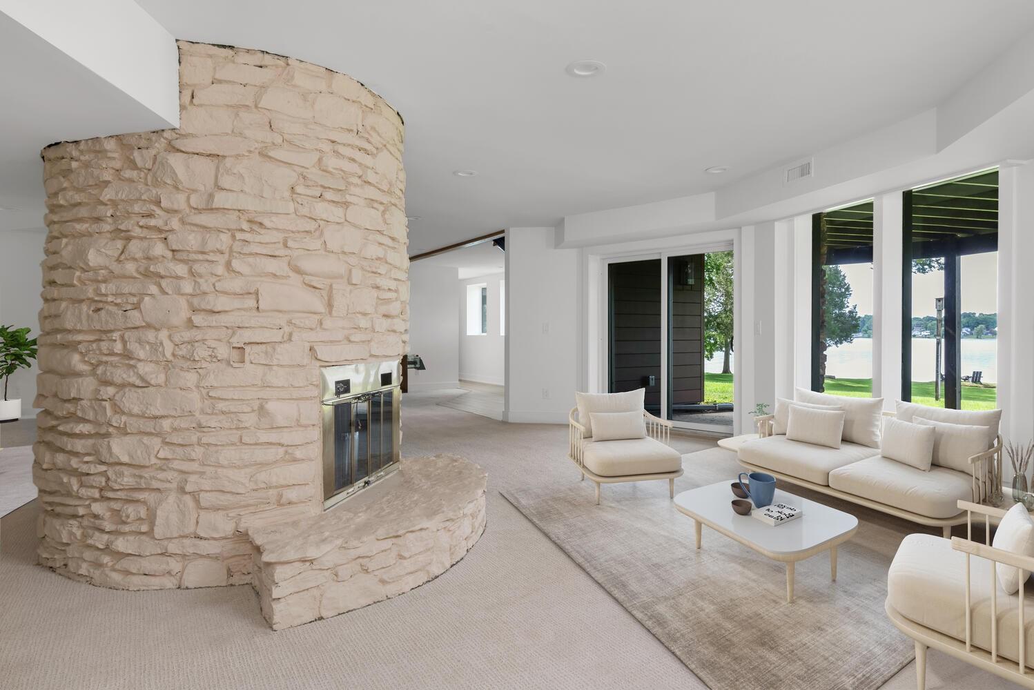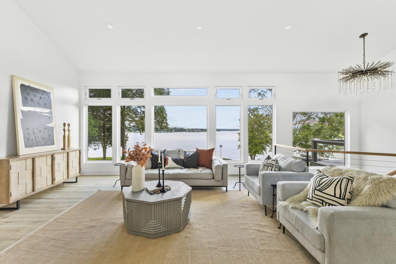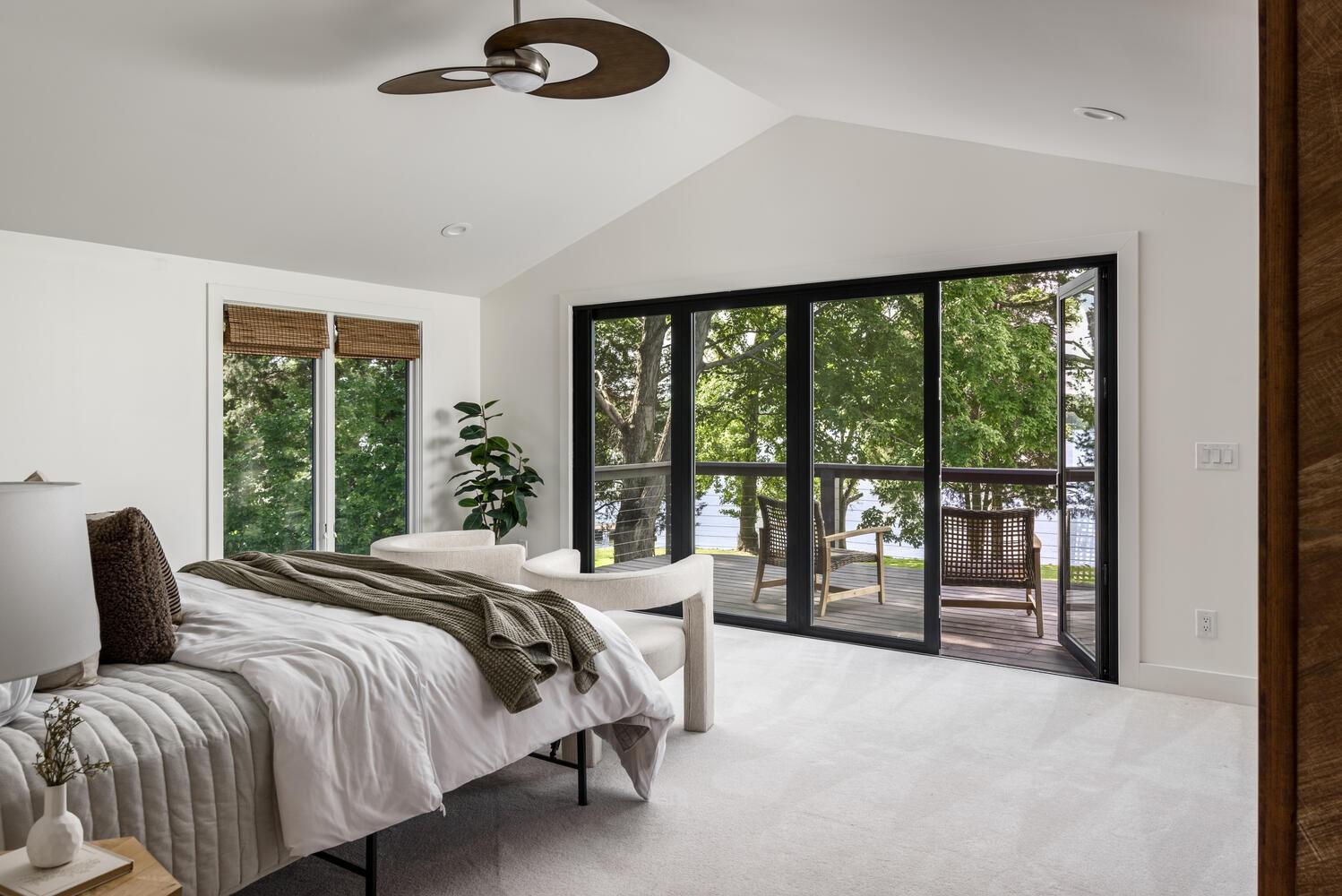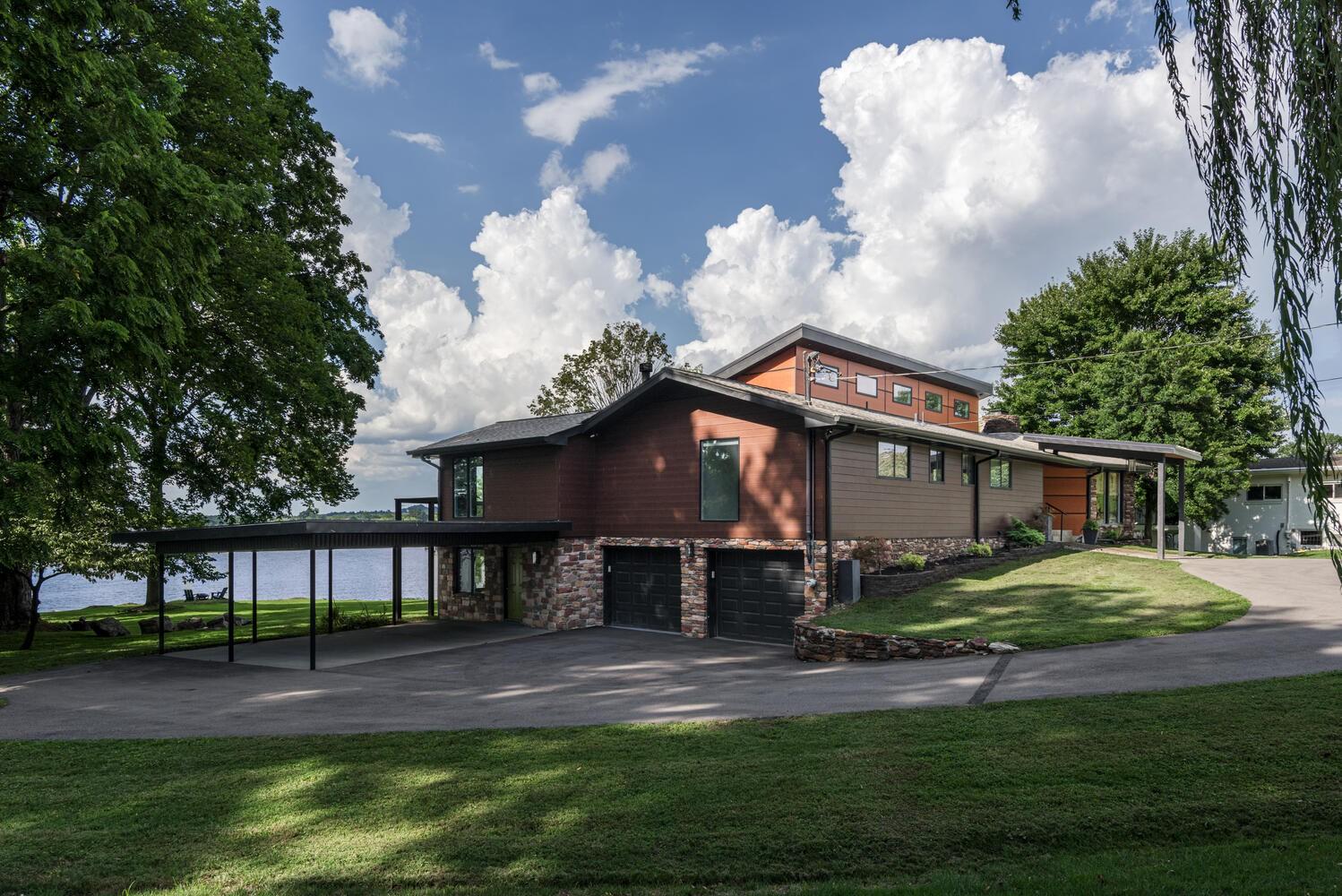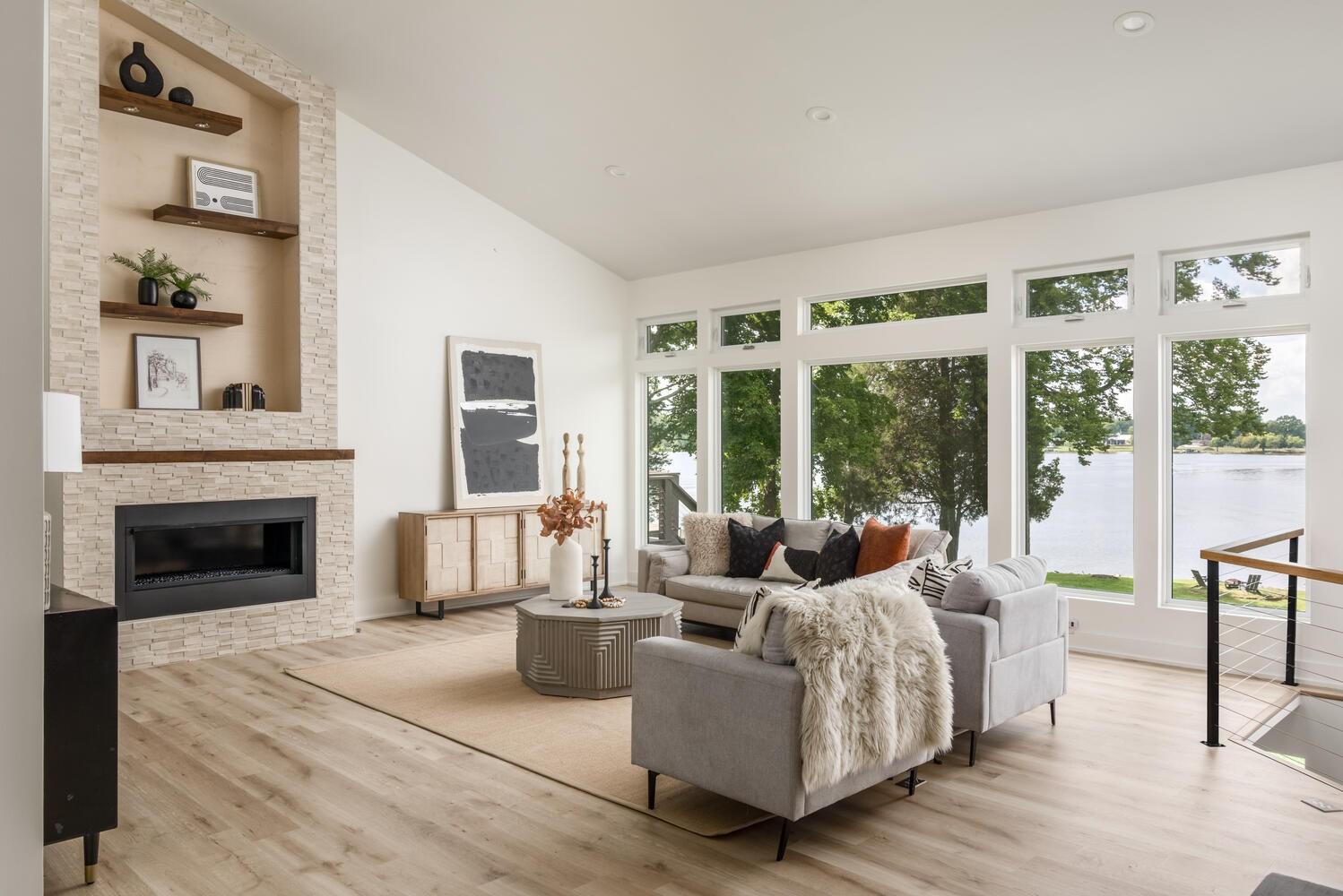 This 5,018-square-foot lake home is tucked at the end of a quiet cul-de-sac on the coveted Indian Lake Peninsula and sits on a point with approximately 250 feet of shoreline. It is a rare property, both in the top percentile for its incredible views and for being a flat, perfectly situated lot. The home was fully renovated in 2020 and updated throughout. It features four bedrooms, each with its own full bathroom, four and a half bathrooms in total, and a spacious, comfortable open layout that connects the kitchen, dining area, living room, and sitting area around a central circular fireplace. Large windows in the main living spaces showcase its stunning views of the lake.The primary bedroom is a peaceful retreat you won’t want to leave in the mornings, with a double-sided fireplace facing both the bed and bathtub, allowing you to take in the lake views from either spot. Downstairs offers a large family room with a fireplace and sliding glass doors for more lake views and access to the backyard, along with a bedroom that makes a great bunk room and an office that could also serve as a fifth bedroom. The office features lake views from two sides for an inspiring workspace. The lot combines expansive open lake views with mature trees that provide privacy and shade. The yard is relatively flat but sits safely above the waterline, making it easy to walk to the lake without stairs. A two-car garage and carport offer plenty of parking options, while a circular driveway is perfect for guests and deliveries.There is ample room to enjoy the outdoors, whether you’re watching the sunset from the dock or sitting by a fire near the shoreline. Several marinas and lakefront dining options are a short boat ride away. The accessibility to the lake is unmatched, whether paddleboarding, jet skiing, fishing, or spending days out on the boat, it’s all in your backyard.