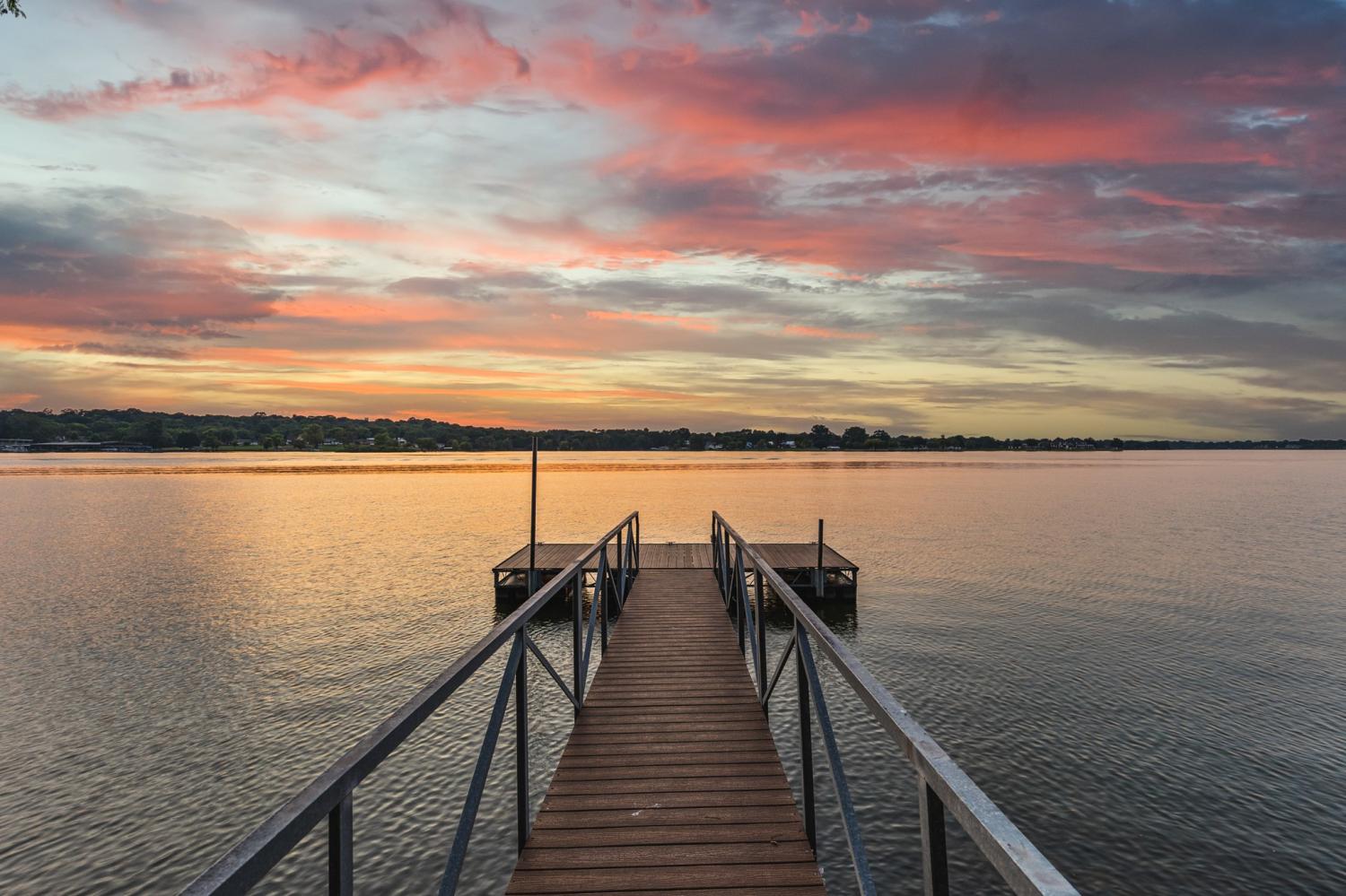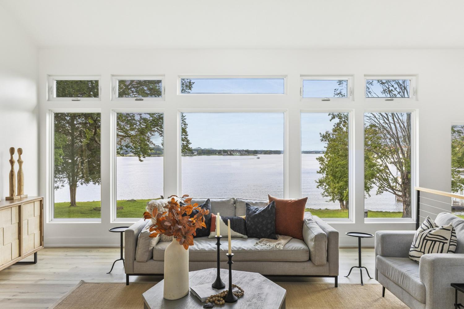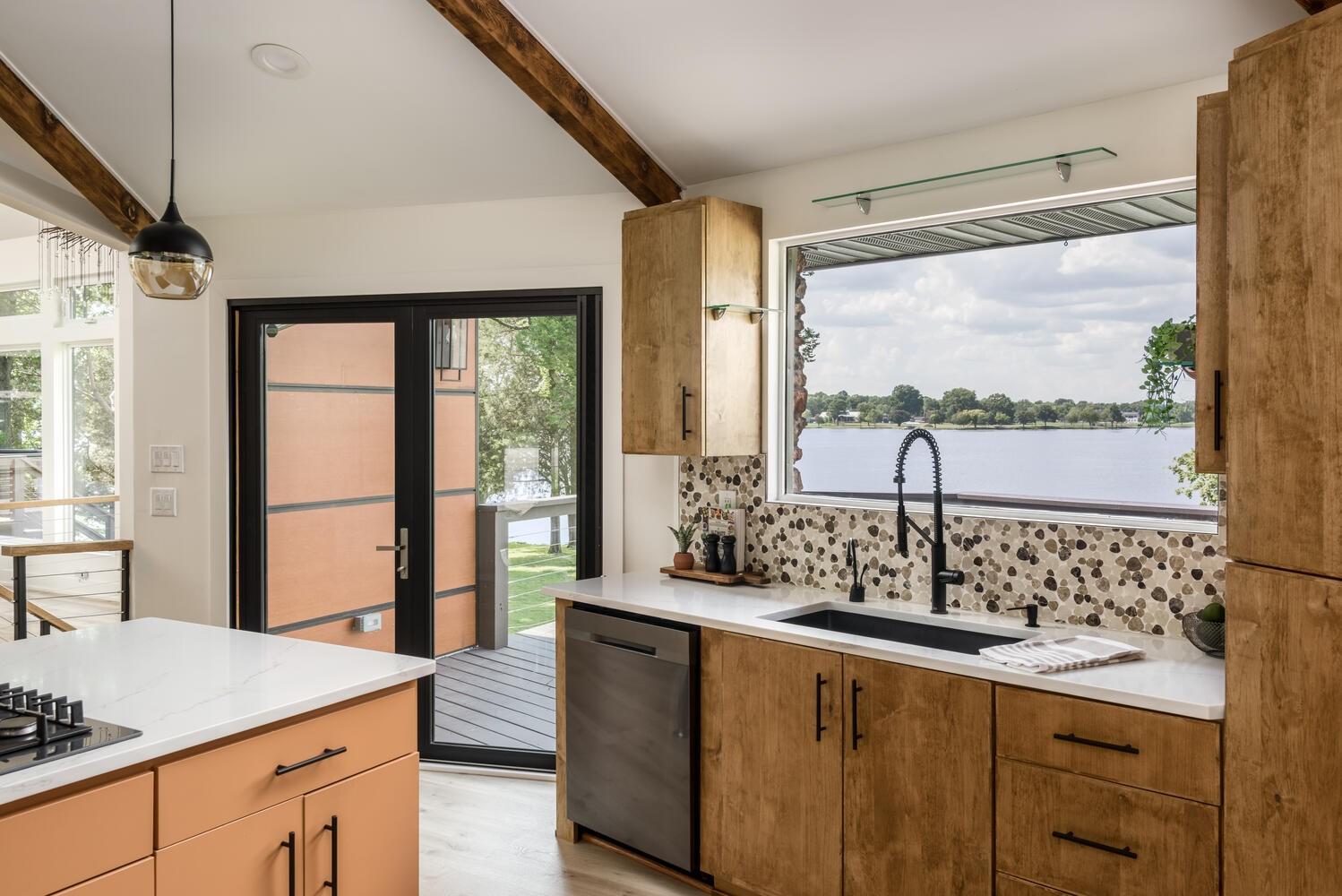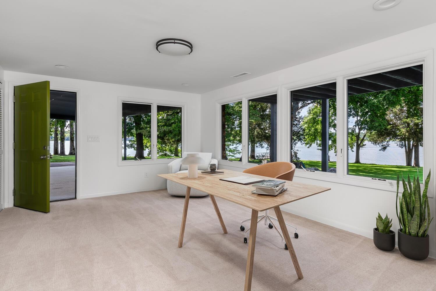 This 5,018-square-foot lake home is tucked at the end of a quiet cul-de-sac on the coveted Indian Lake Peninsula and sits on a point with approximately 250 feet of shoreline. It is a rare property, both in the top percentile for its incredible views and for being a flat, perfectly situated lot. The home was fully renovated in 2020 and updated throughout. It features four bedrooms, each with its own full bathroom, four and a half bathrooms in total, and a spacious, comfortable open layout that connects the kitchen, dining area, living room, and sitting area around a central circular fireplace. Large windows in the main living spaces showcase its stunning views of the lake.The primary bedroom is a peaceful retreat you won’t want to leave in the mornings, with a double-sided fireplace facing both the bed and bathtub, allowing you to take in the lake views from either spot. Downstairs offers a large family room with a fireplace and sliding glass doors for more lake views and access to the backyard, along with a bedroom that makes a great bunk room and an office that could also serve as a fifth bedroom. The office features lake views from two sides for an inspiring workspace. The lot combines expansive open lake views with mature trees that provide privacy and shade. The yard is relatively flat but sits safely above the waterline, making it easy to walk to the lake without stairs. A two-car garage and carport offer plenty of parking options, while a circular driveway is perfect for guests and deliveries.There is ample room to enjoy the outdoors, whether you’re watching the sunset from the dock or sitting by a fire near the shoreline. Several marinas and lakefront dining options are a short boat ride away. The accessibility to the lake is unmatched, whether paddleboarding, jet skiing, fishing, or spending days out on the boat, it’s all in your backyard.