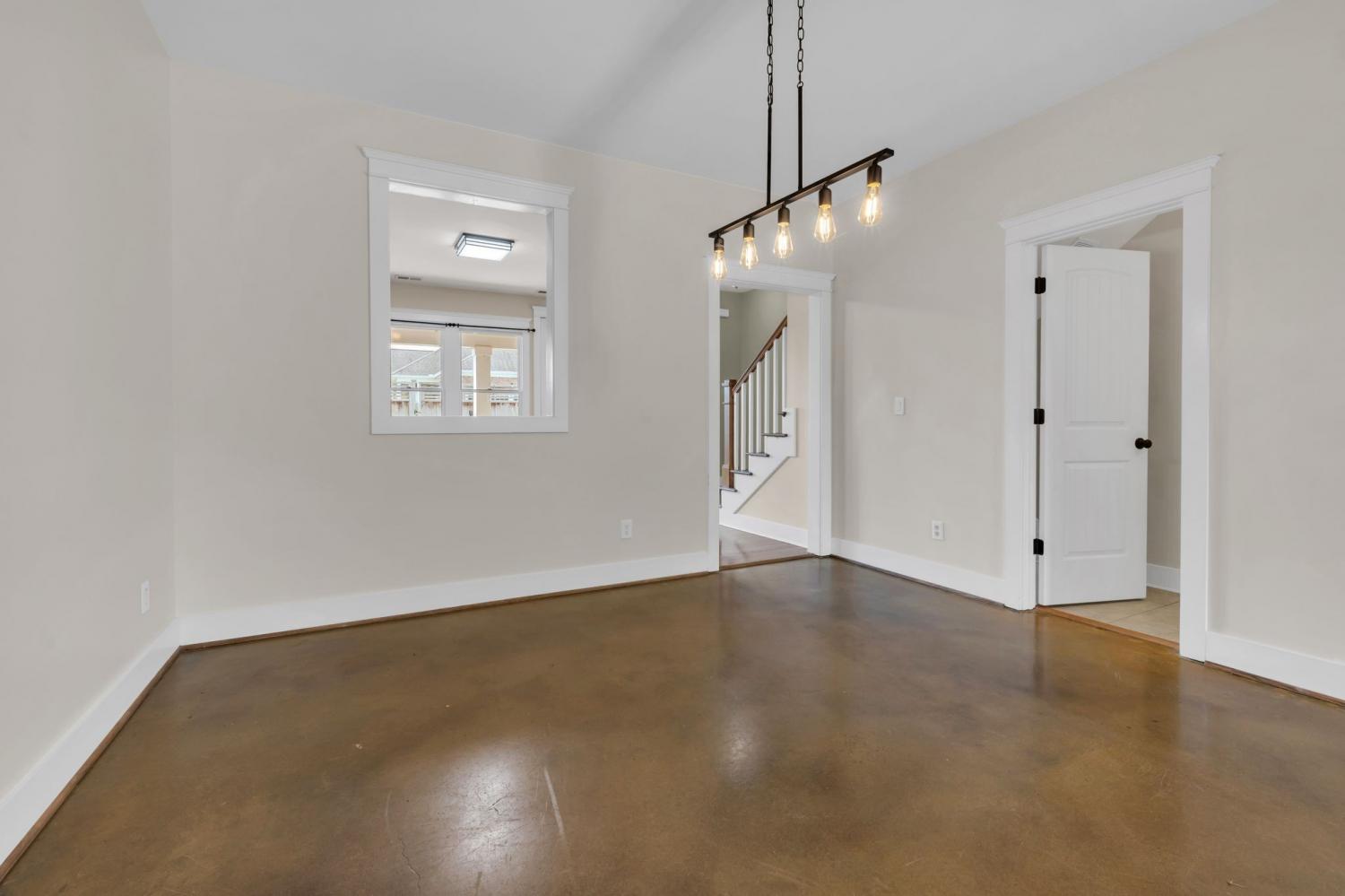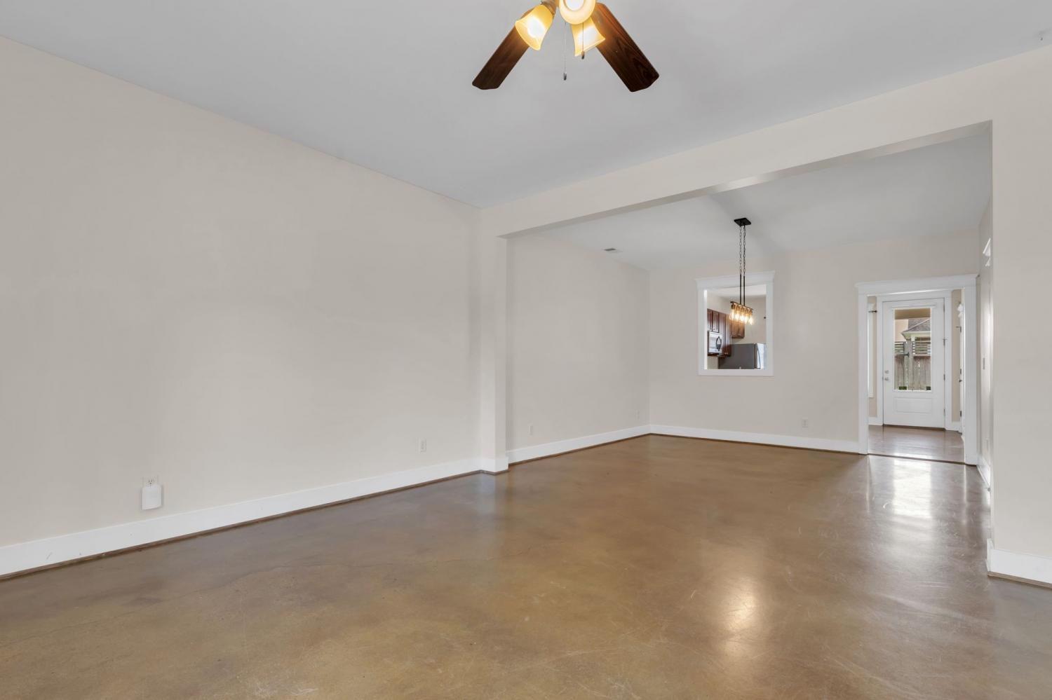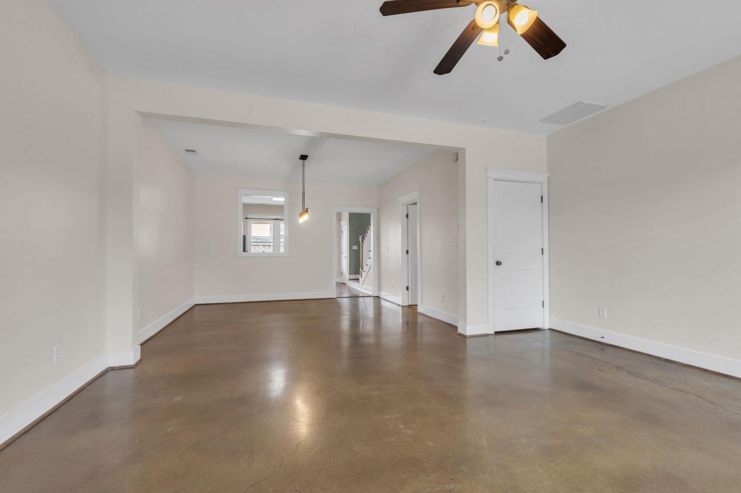 Open floor plan with concrete floors on the first level*Large living room and dining area with a kitchen with SS appliances*Covered patio and small backyard with wood fence* 2 bedrooms upstairs with baths*Main bedroom with garden tub and separate shower and double vanities*Huge walkin closet*Quick availability.
