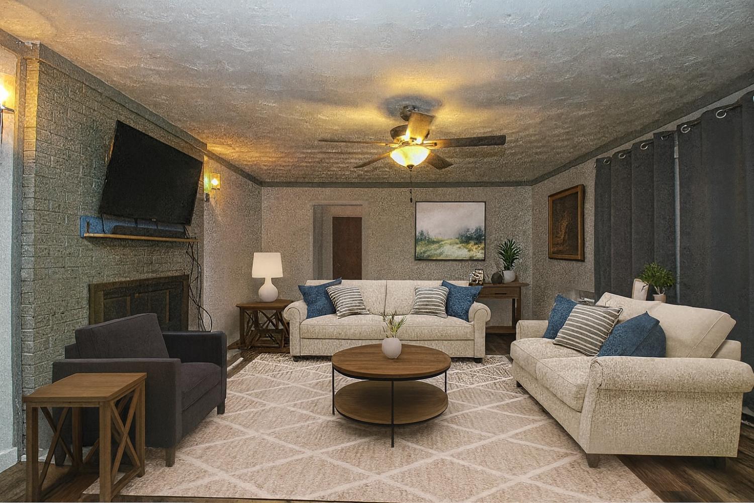 This home is virtually staged. This is a 3 bedroom, two bathroom brick home is in the heart of Brownsville, TN. This home has 1,589 sq. ft of living area and a lot size-9,430 sq. ft., with a one car carport and two car driveway. The oven and refrigerator remains with the home. Renovations: New HVAC bought 7/2022, all new duct work, new flooring in master bedroom, den, and hallway, new french doors in the den, new tile in the kitchen, laundry room, and master bathroom, new drywall in the den and hallway, master bedroom has two custom-made closets with upper and lower lighting and remote control ceiling fan, master bathroom has music, fan, and night light control over the bathtub, 2nd bathroom has motion sensor lighting, bi-fold closet in the hallway has motion sensor lighting, and there is an installed an awning over the patio steps. The two additional bedrooms have the original hardwood flooring from 1962. There is a working gas fireplace in the den. The home has an attached workshop/man-cave (mounted tv, 3 boxes of tiles, paints buckets, and extra laminate flooring left with the workshop). Brownsville, TN is a small town living with big city convenience. The home is near the historic district of Brownsville, is in close proximity to schools, shopping, restaurants, gas stations, public library, and major highways, The home is about a twenty-minute drive to Blue Oval, thirty-minute drive to Jackson, TN, and about an hour drive to Memphis, TN.