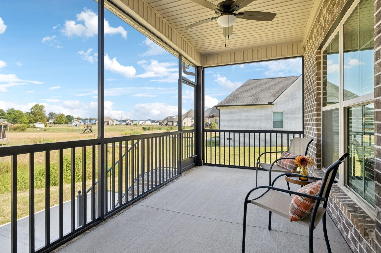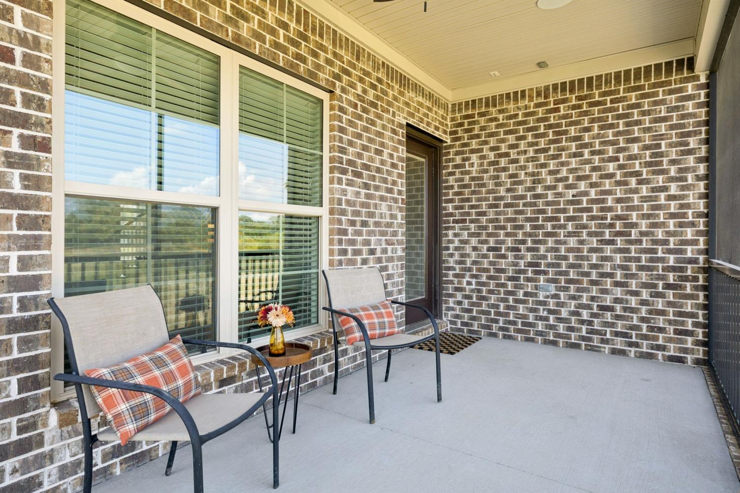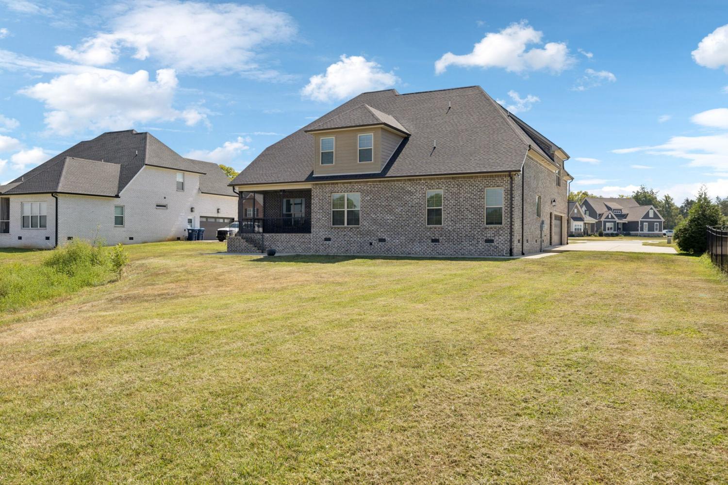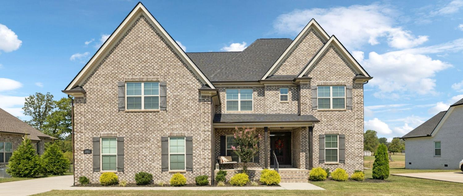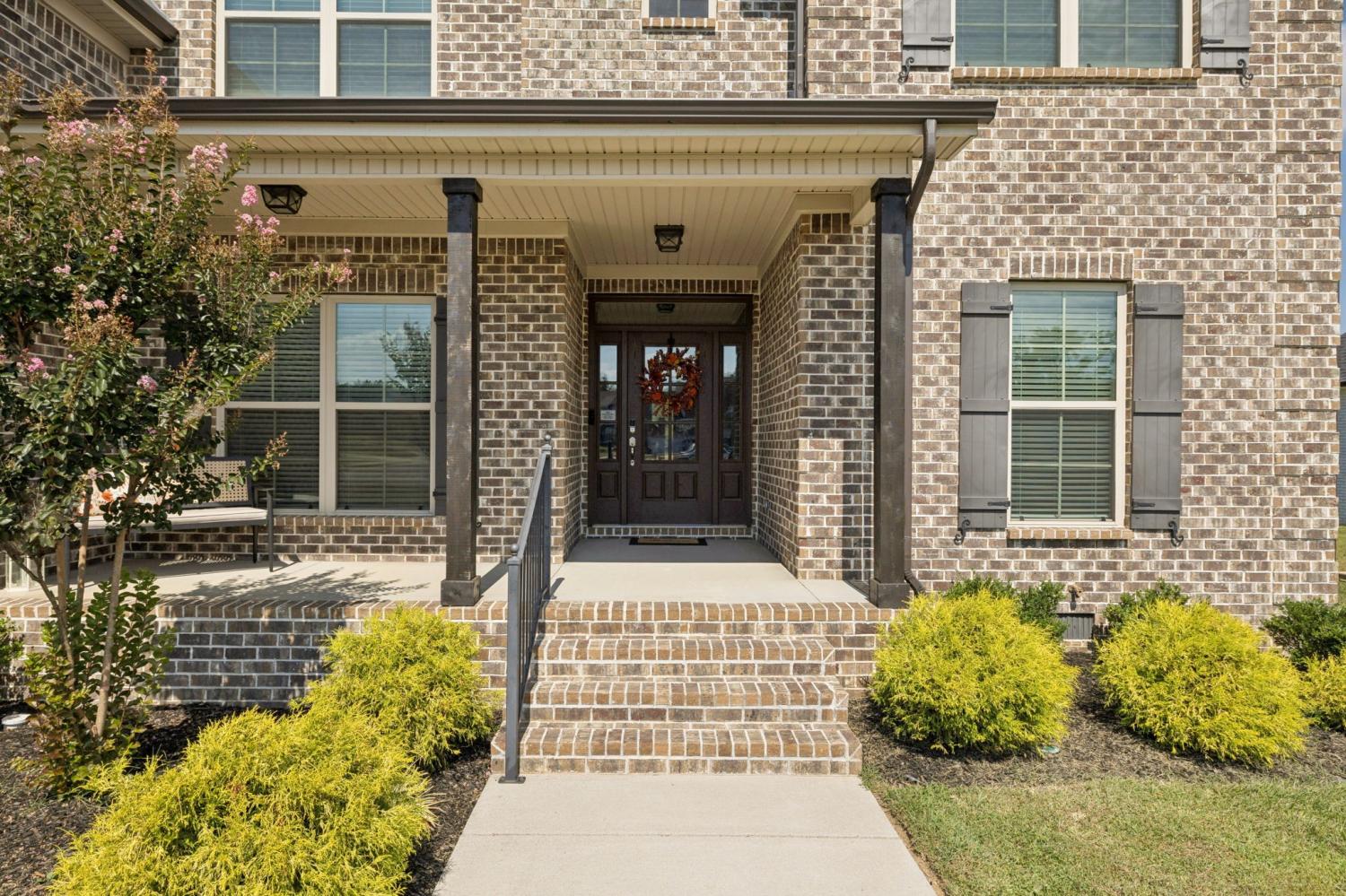 Stunning full-brick home in the highly sought-after Walnut Downs community! Featuring 5 spacious bedrooms and 4 full bathrooms, over 3700 sq ft, this custom-crafted residence offers luxurious touches throughout. The formal dining room with coffered ceilings, and a living room that boasts soaring ceilings and a paneled accent wall, all enhanced by elegant coved crown molding. The gourmet kitchen is a chef's dream, featuring quartz countertops, a large center island with storage, marble backsplash, stainless steel appliances and high-end finishes throughout.The main-floor primary suite is a private retreat, with a spa-like bath that includes a custom-tiled shower, soaking tub, and separate vanities. A second main-floor bedroom is ideal for guests or a home office, with a full bath nearby. Upstairs, you’ll find three additional bedrooms with ample space and storage, two of the bedrooms sharing an adjoining bathroom, and one bedroom with another full bath in hall. One great feature is the 475 sq ft media room, complete with surround sound and projector setup; perfect for movie nights and extra space for a pool table or play area. Enjoy quiet mornings and peaceful evenings on the screened-in porch, overlooking an open field and hobby farm which means no neighbors behind you! The covered front porch, landscaped yard, and location round out this incredible property. Don’t miss this rare opportunity to own in one of the area’s most desirable neighborhoods; schedule your private tour today!