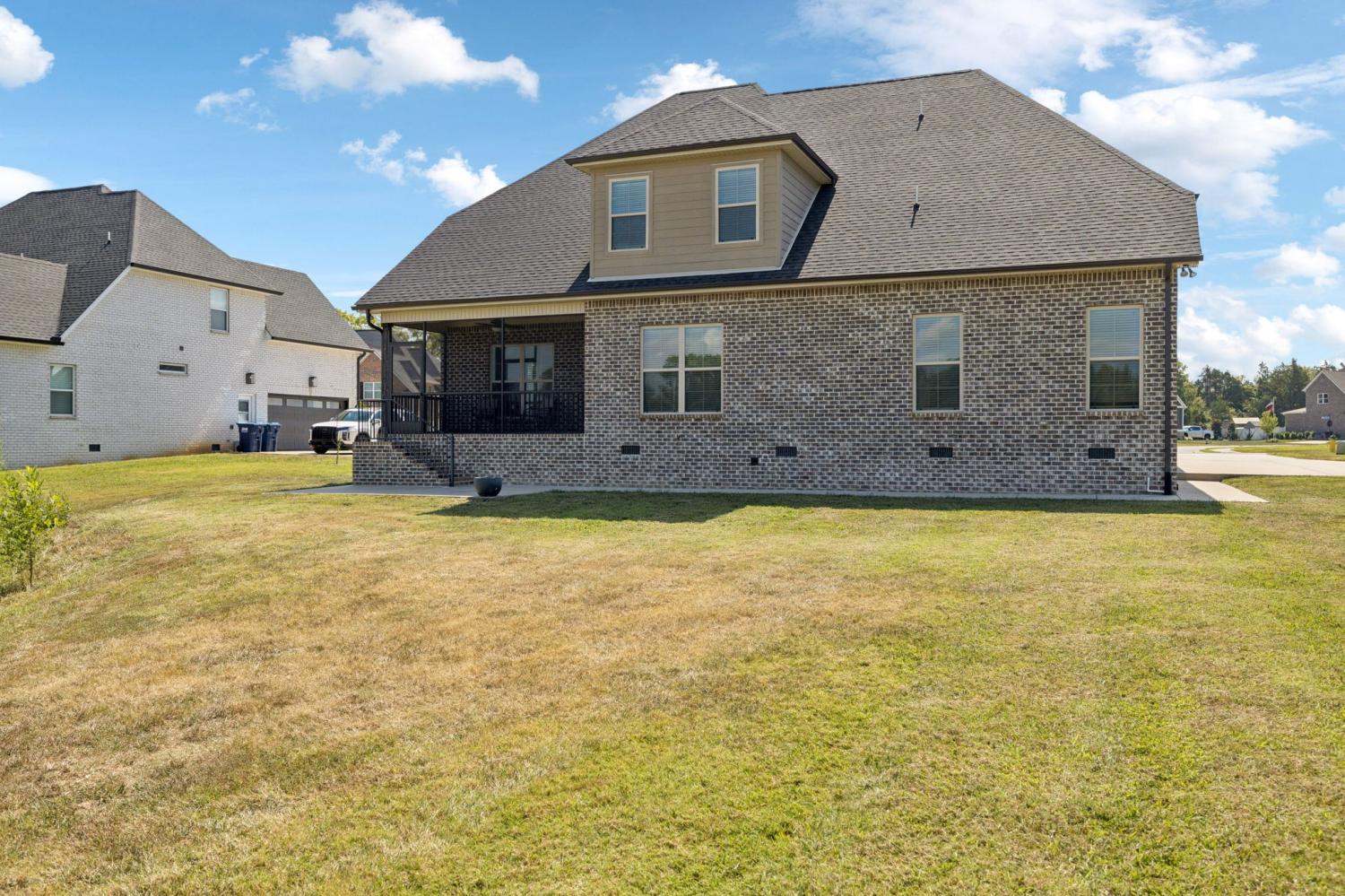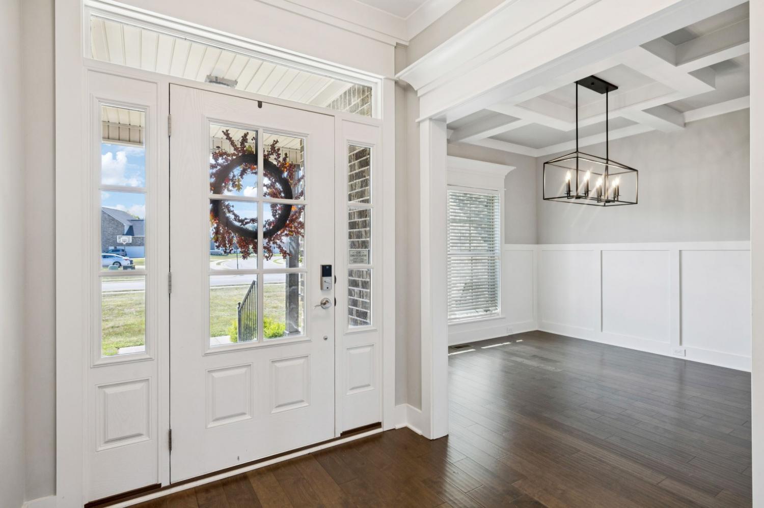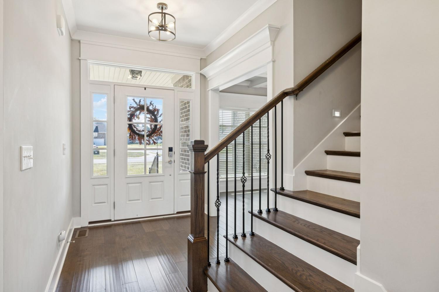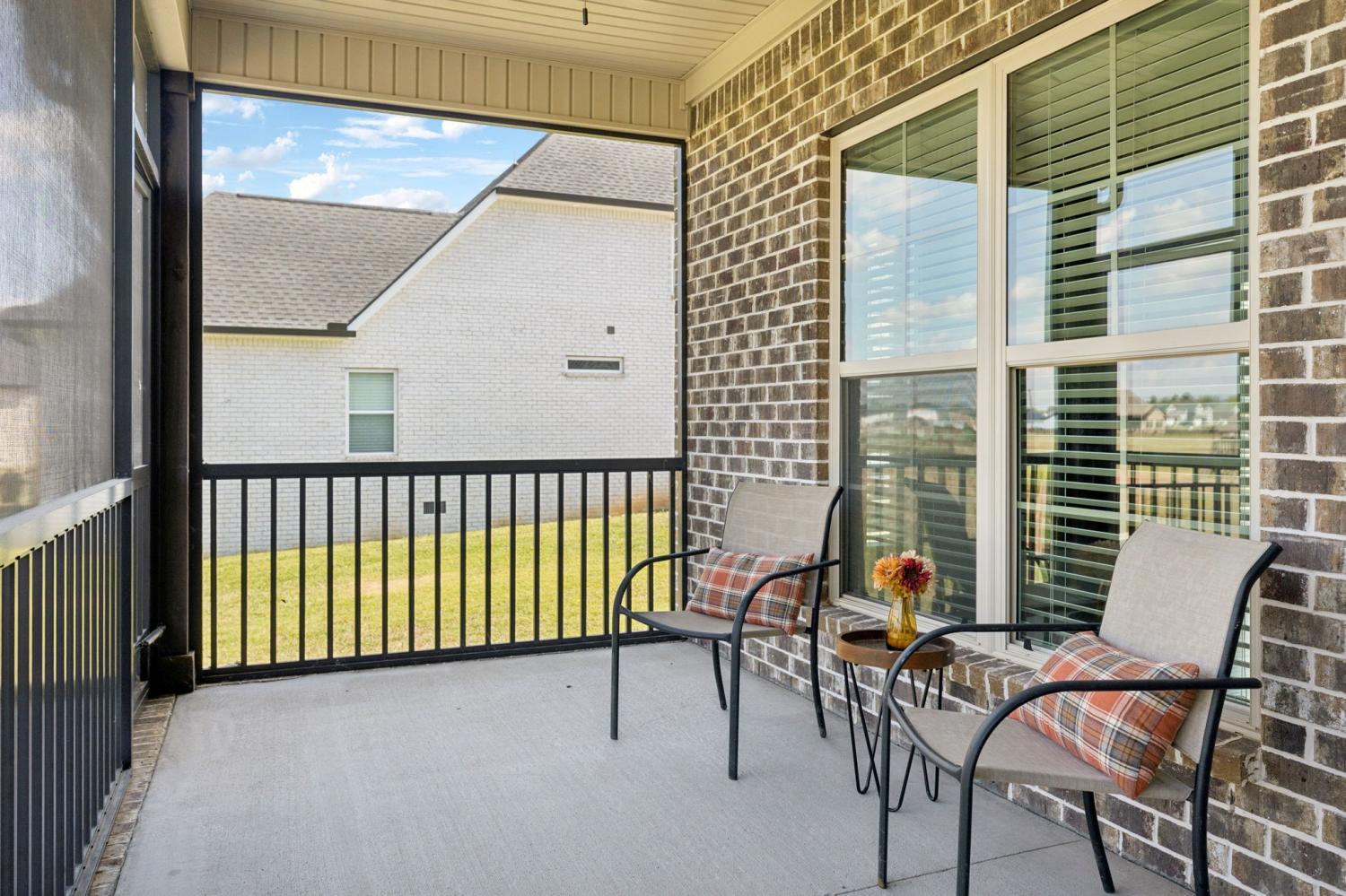 Stunning full-brick home in the highly sought-after Walnut Downs community! Featuring 5 spacious bedrooms and 4 full bathrooms, over 3700 sq ft, this custom-crafted residence offers luxurious touches throughout. The formal dining room with coffered ceilings, and a living room that boasts soaring ceilings and a paneled accent wall, all enhanced by elegant coved crown molding. The gourmet kitchen is a chef's dream, featuring quartz countertops, a large center island with storage, marble backsplash, stainless steel appliances and high-end finishes throughout.The main-floor primary suite is a private retreat, with a spa-like bath that includes a custom-tiled shower, soaking tub, and separate vanities. A second main-floor bedroom is ideal for guests or a home office, with a full bath nearby. Upstairs, you’ll find three additional bedrooms with ample space and storage, two of the bedrooms sharing an adjoining bathroom, and one bedroom with another full bath in hall. One great feature is the 475 sq ft media room, complete with surround sound and projector setup; perfect for movie nights and extra space for a pool table or play area. Enjoy quiet mornings and peaceful evenings on the screened-in porch, overlooking an open field and hobby farm which means no neighbors behind you! The covered front porch, landscaped yard, and location round out this incredible property. Don’t miss this rare opportunity to own in one of the area’s most desirable neighborhoods; schedule your private tour today!