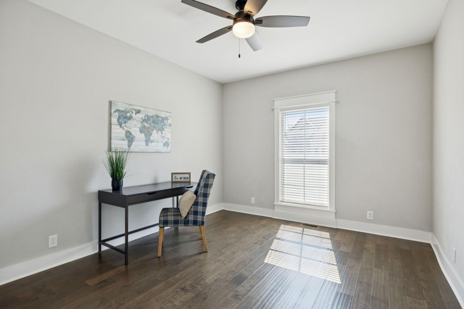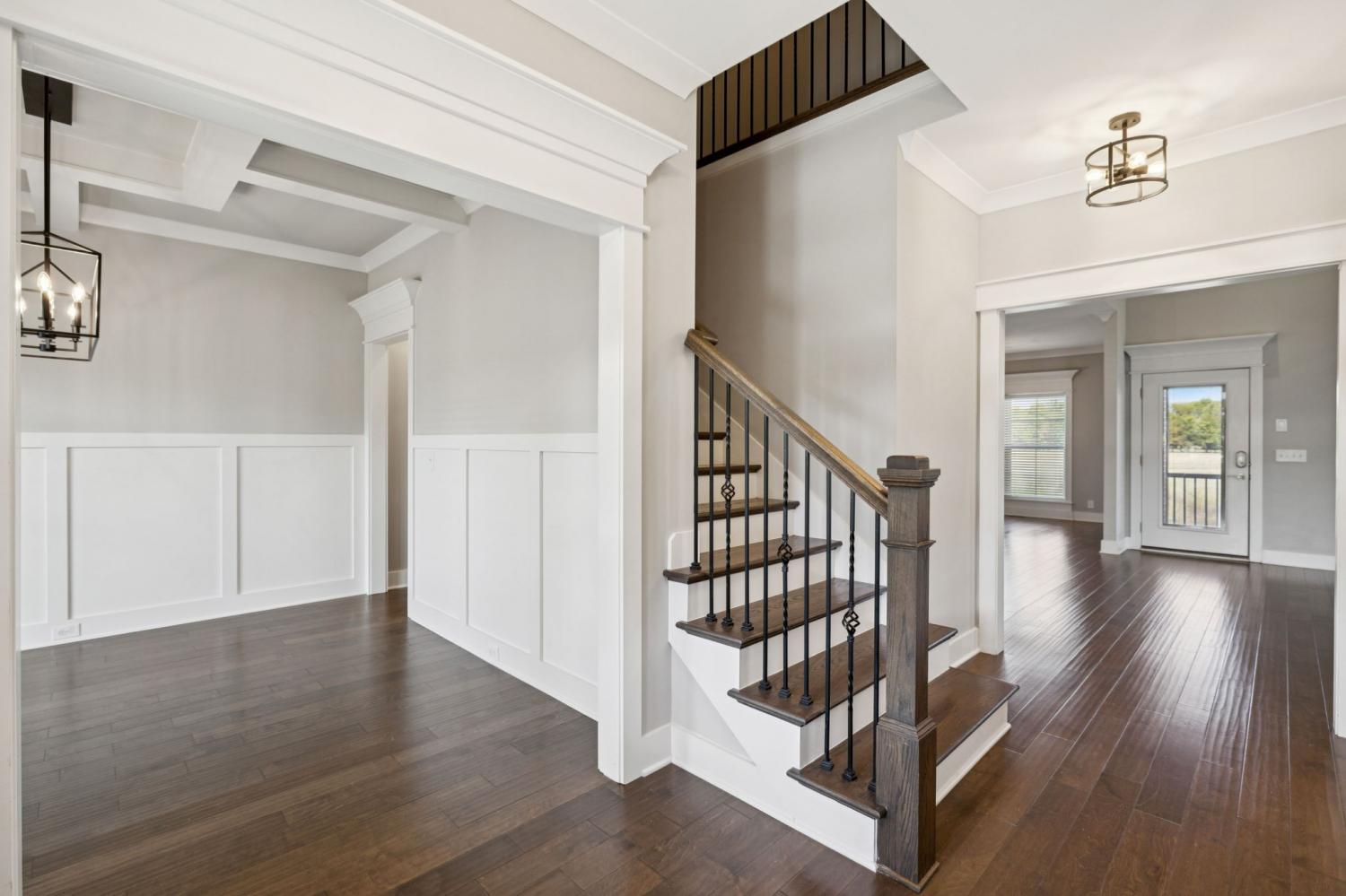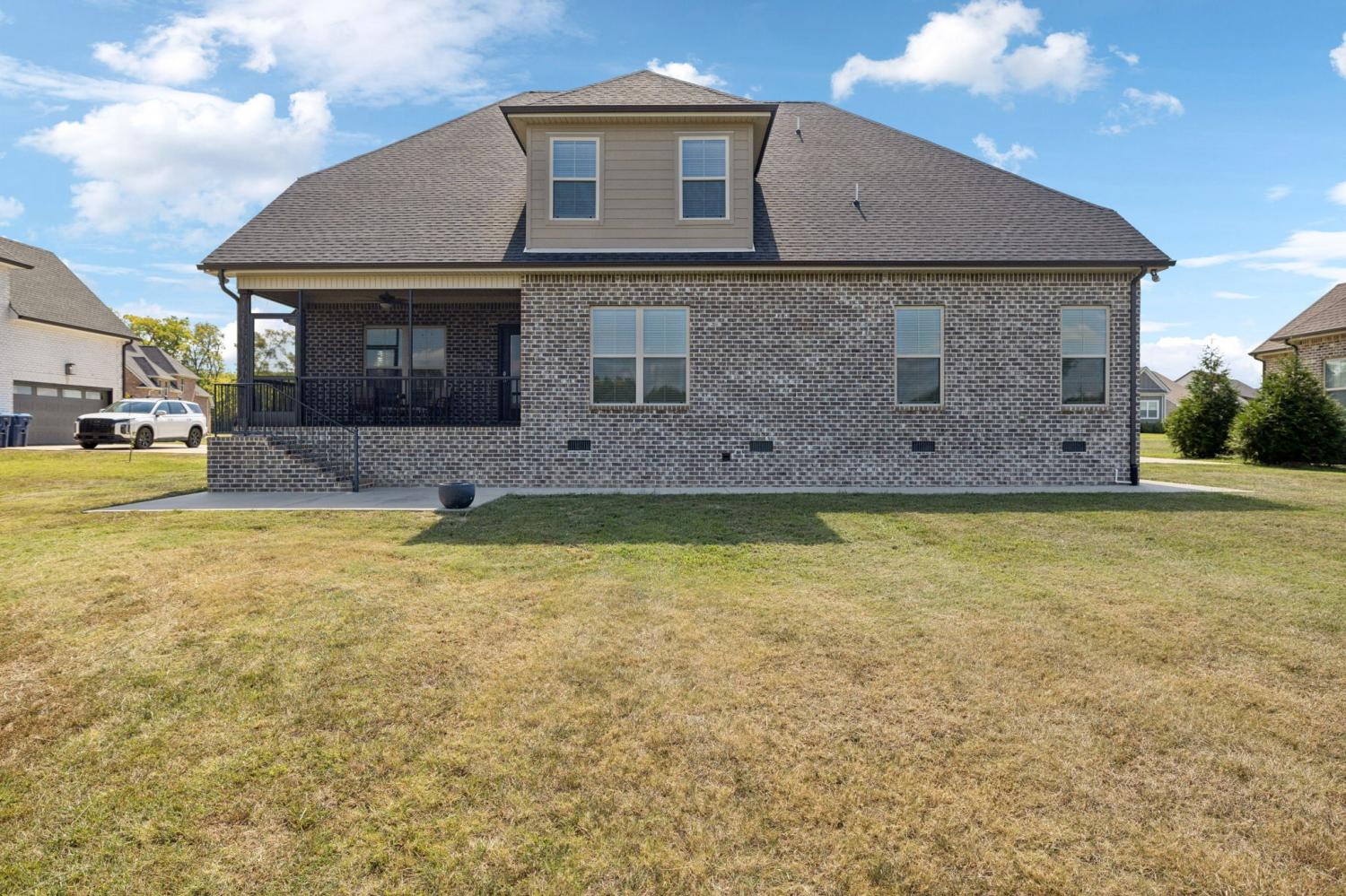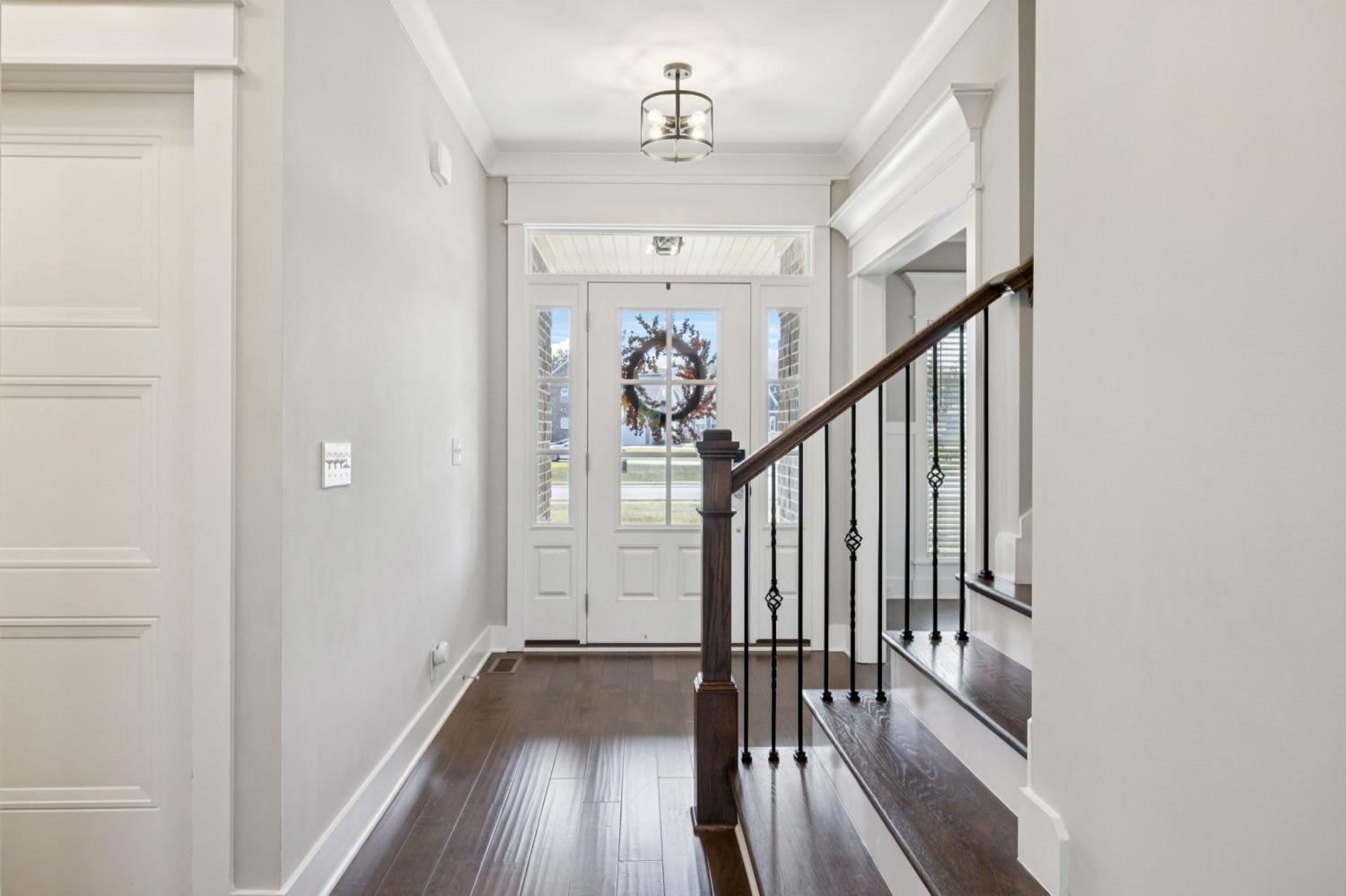 Stunning full-brick home in the highly sought-after Walnut Downs community! Featuring 5 spacious bedrooms and 4 full bathrooms, over 3700 sq ft, this custom-crafted residence offers luxurious touches throughout. The formal dining room with coffered ceilings, and a living room that boasts soaring ceilings and a paneled accent wall, all enhanced by elegant coved crown molding. The gourmet kitchen is a chef's dream, featuring quartz countertops, a large center island with storage, marble backsplash, stainless steel appliances and high-end finishes throughout.The main-floor primary suite is a private retreat, with a spa-like bath that includes a custom-tiled shower, soaking tub, and separate vanities. A second main-floor bedroom is ideal for guests or a home office, with a full bath nearby. Upstairs, you’ll find three additional bedrooms with ample space and storage, two of the bedrooms sharing an adjoining bathroom, and one bedroom with another full bath in hall. One great feature is the 475 sq ft media room, complete with surround sound and projector setup; perfect for movie nights and extra space for a pool table or play area. Enjoy quiet mornings and peaceful evenings on the screened-in porch, overlooking an open field and hobby farm which means no neighbors behind you! The covered front porch, landscaped yard, and location round out this incredible property. Don’t miss this rare opportunity to own in one of the area’s most desirable neighborhoods; schedule your private tour today!