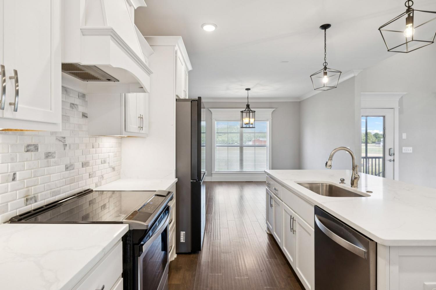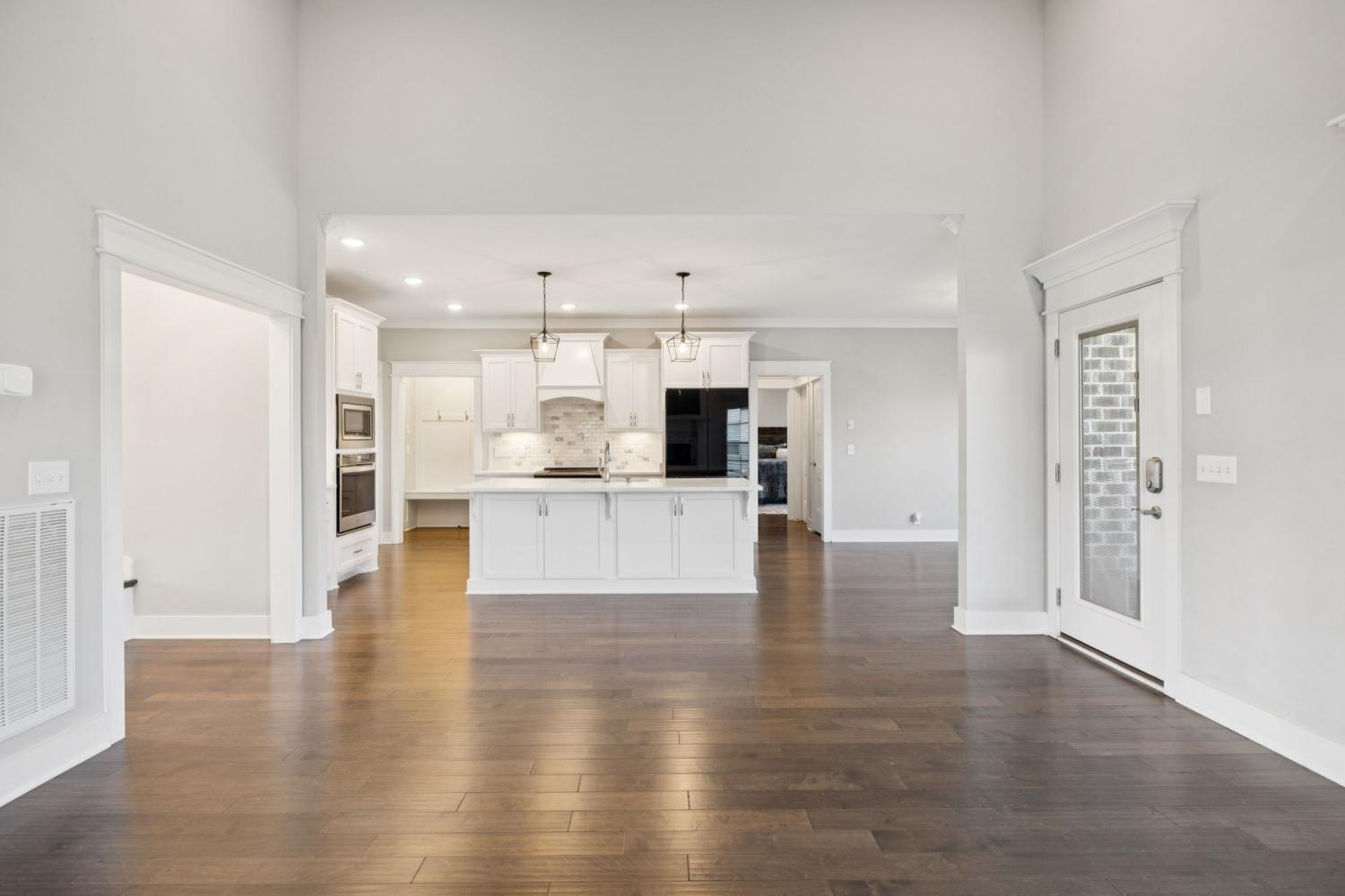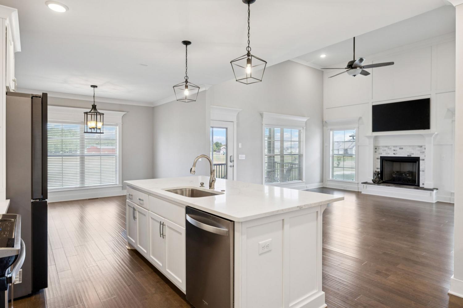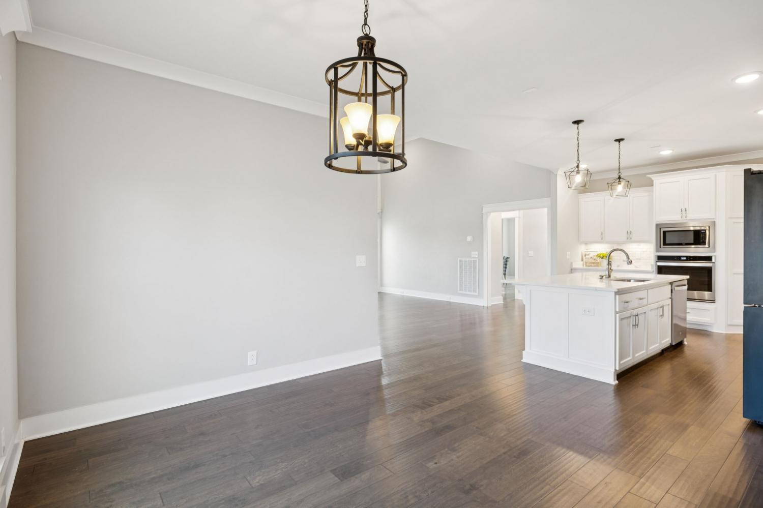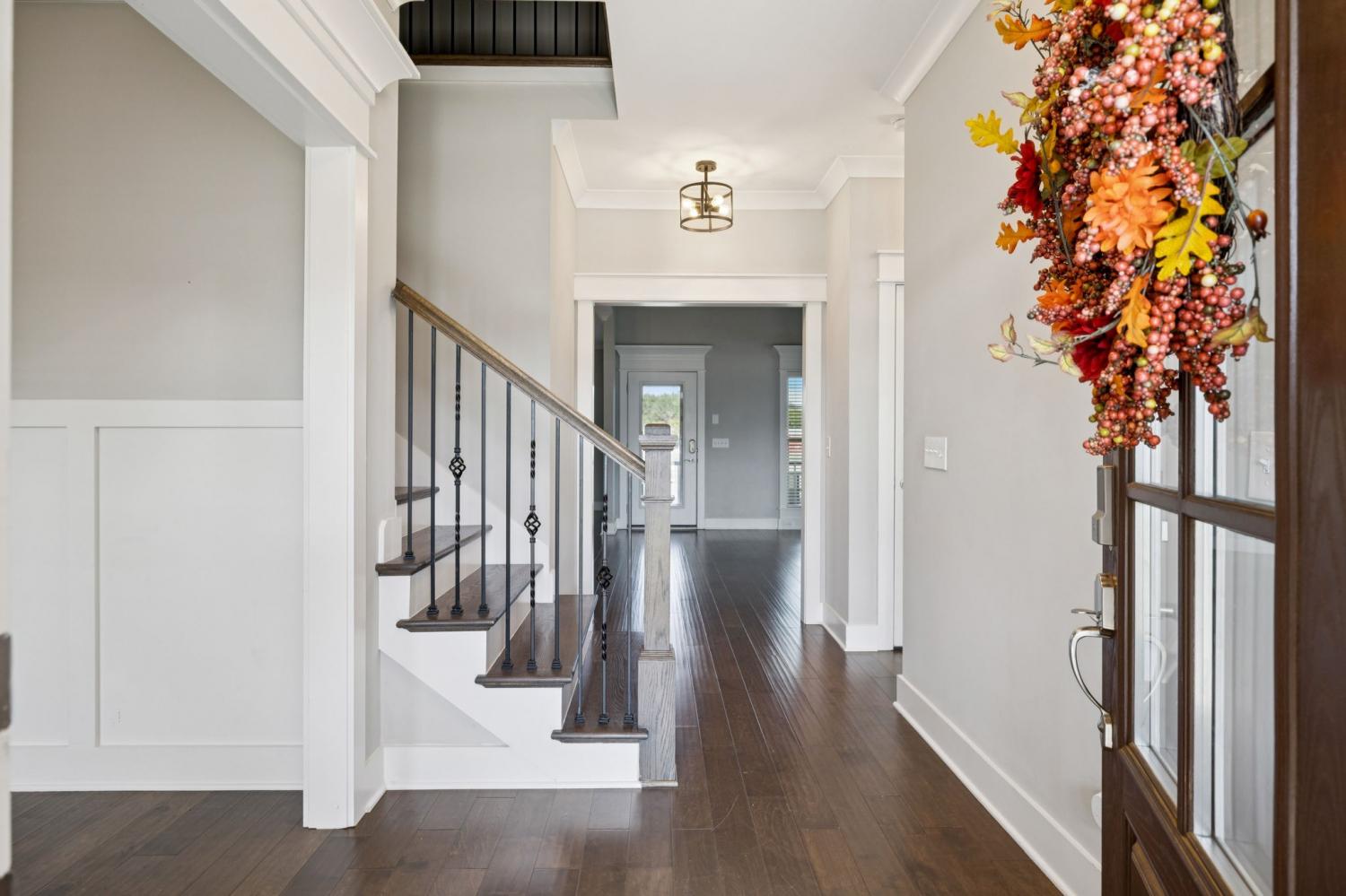 Stunning full-brick home in the highly sought-after Walnut Downs community! Featuring 5 spacious bedrooms and 4 full bathrooms, over 3700 sq ft, this custom-crafted residence offers luxurious touches throughout. The formal dining room with coffered ceilings, and a living room that boasts soaring ceilings and a paneled accent wall, all enhanced by elegant coved crown molding. The gourmet kitchen is a chef's dream, featuring quartz countertops, a large center island with storage, marble backsplash, stainless steel appliances and high-end finishes throughout.The main-floor primary suite is a private retreat, with a spa-like bath that includes a custom-tiled shower, soaking tub, and separate vanities. A second main-floor bedroom is ideal for guests or a home office, with a full bath nearby. Upstairs, you’ll find three additional bedrooms with ample space and storage, two of the bedrooms sharing an adjoining bathroom, and one bedroom with another full bath in hall. One great feature is the 475 sq ft media room, complete with surround sound and projector setup; perfect for movie nights and extra space for a pool table or play area. Enjoy quiet mornings and peaceful evenings on the screened-in porch, overlooking an open field and hobby farm which means no neighbors behind you! The covered front porch, landscaped yard, and location round out this incredible property. Don’t miss this rare opportunity to own in one of the area’s most desirable neighborhoods; schedule your private tour today!