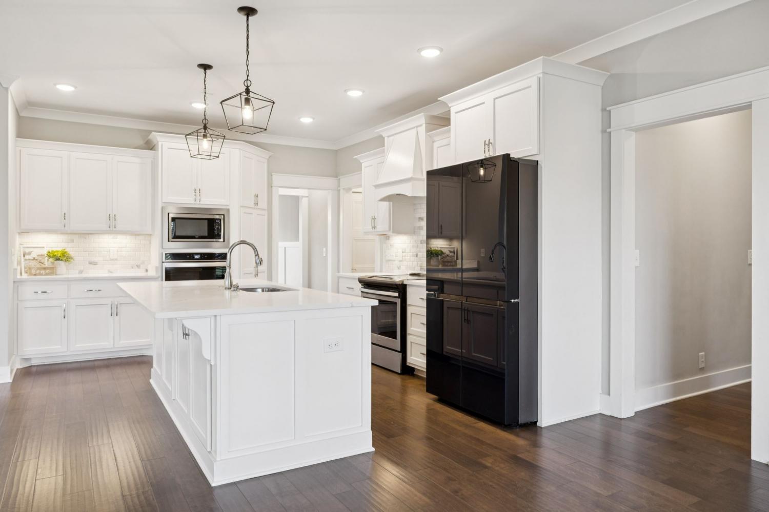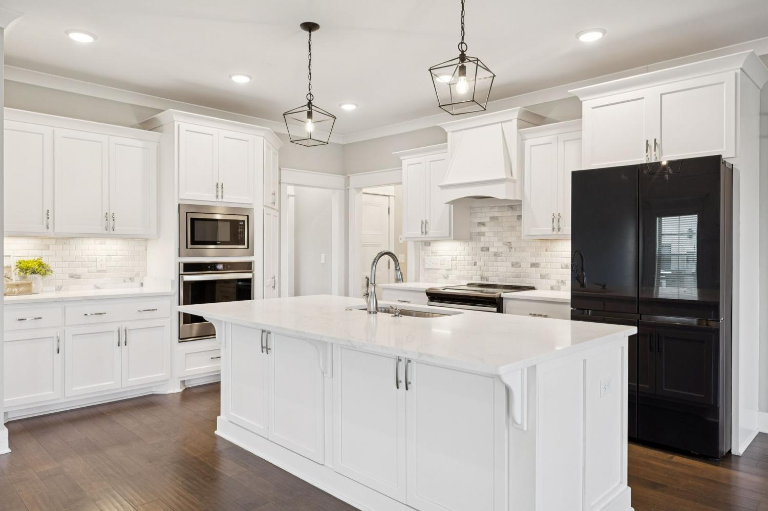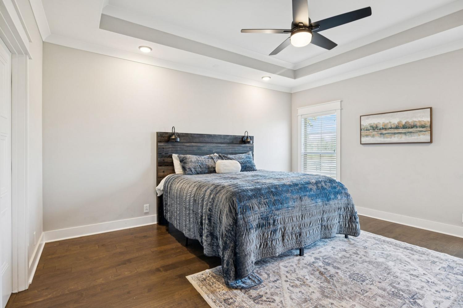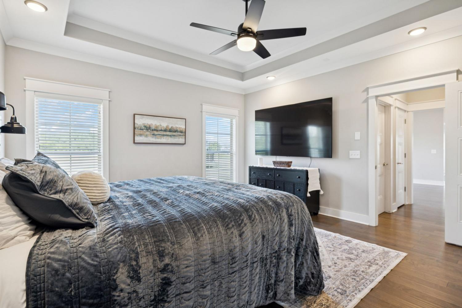 Stunning full-brick home in the highly sought-after Walnut Downs community! Featuring 5 spacious bedrooms and 4 full bathrooms, over 3700 sq ft, this custom-crafted residence offers luxurious touches throughout. The formal dining room with coffered ceilings, and a living room that boasts soaring ceilings and a paneled accent wall, all enhanced by elegant coved crown molding. The gourmet kitchen is a chef's dream, featuring quartz countertops, a large center island with storage, marble backsplash, stainless steel appliances and high-end finishes throughout.The main-floor primary suite is a private retreat, with a spa-like bath that includes a custom-tiled shower, soaking tub, and separate vanities. A second main-floor bedroom is ideal for guests or a home office, with a full bath nearby. Upstairs, you’ll find three additional bedrooms with ample space and storage, two of the bedrooms sharing an adjoining bathroom, and one bedroom with another full bath in hall. One great feature is the 475 sq ft media room, complete with surround sound and projector setup; perfect for movie nights and extra space for a pool table or play area. Enjoy quiet mornings and peaceful evenings on the screened-in porch, overlooking an open field and hobby farm which means no neighbors behind you! The covered front porch, landscaped yard, and location round out this incredible property. Don’t miss this rare opportunity to own in one of the area’s most desirable neighborhoods; schedule your private tour today!