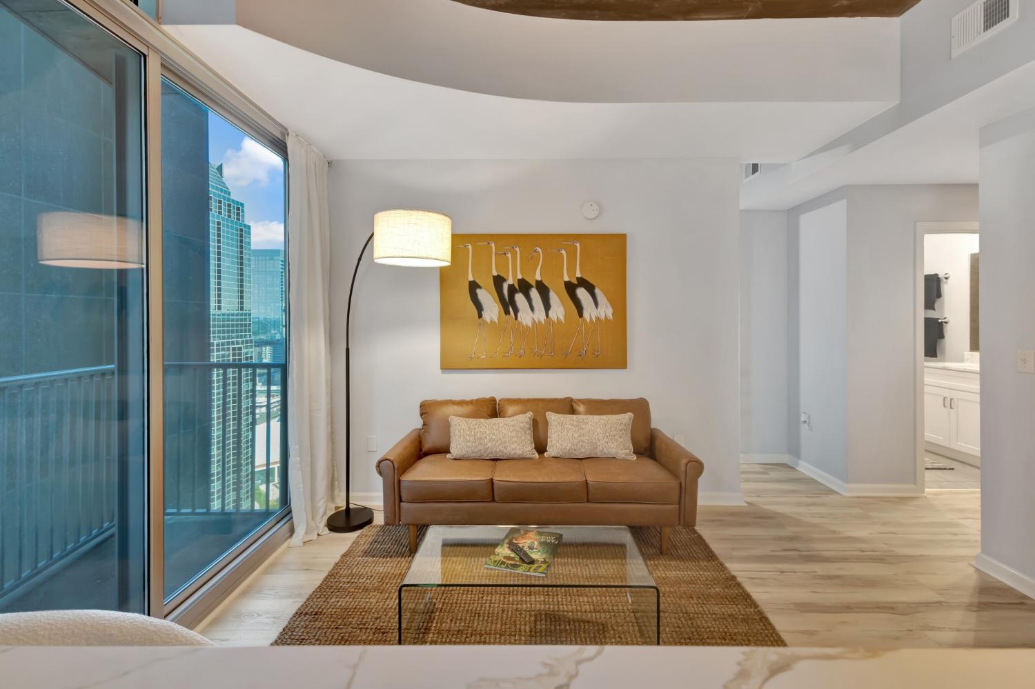 Experience Ultimate Luxury Living in the Heart of Downtown Nashville at The Viridian! This is it—THE ONE you’ve been waiting for—every inch has been completely transformed! Soaring high on the 18th floor, this stunning 1 bedroom, 1 bath condo delivers breathtaking, uninterrupted skyline views framed by dramatic floor-to-ceiling windows. Step inside to an all-new, designer-curated renovation featuring: Brand new LVP flooring throughout Fresh paint & designer lighting that brighten every corner Fully remodeled kitchen with custom cabinetry, quartz countertops with bar seating, elegant backsplash, and premium stainless appliances Luxurious bath retreat finished with timeless Carrera marble Offered fully furnished & turnkey with chic, modern furnishings—just bring your suitcase and move right in! The Viridian lifestyle is unmatched: Nashville’s only true rooftop pool (31st floor!), owner’s lounge, clubroom & fitness center with skyline views, 24/7 concierge & security, guest parking, and Google Fiber. Deeded parking space (#956) included. From this prime location, you’re steps from Broadway, The Ryman, Bridgestone, Nissan Stadium, Printer’s Alley, 5th & Broad, and the new Nashville Yards. A rare chance to own a fully updated, move-in ready condo in the heart of it all—schedule your private tour today before it’s gone!