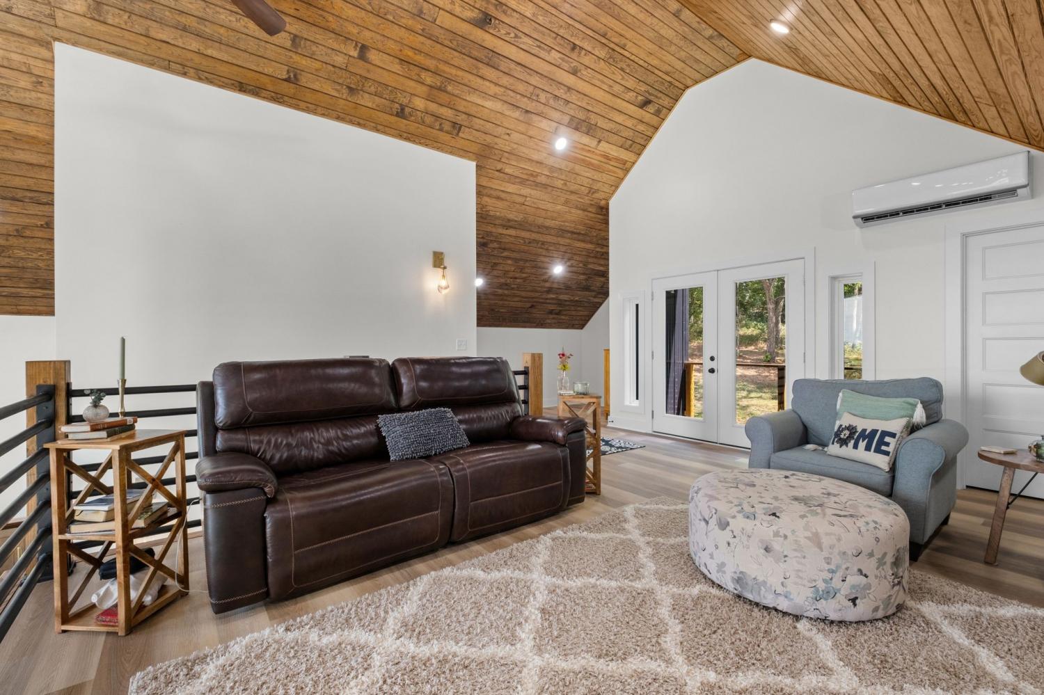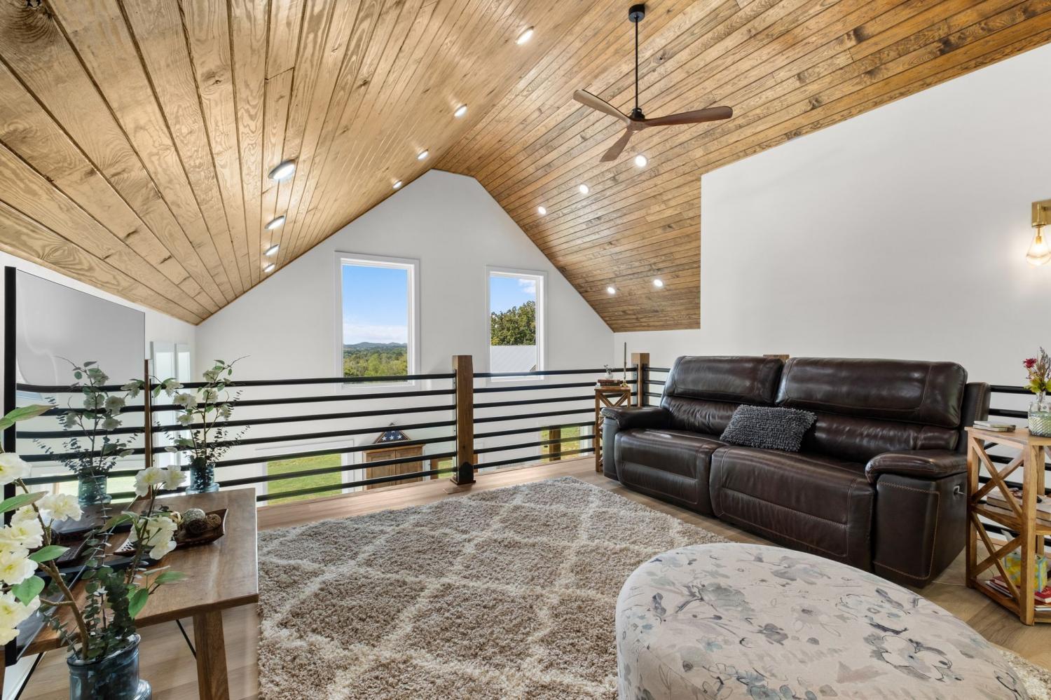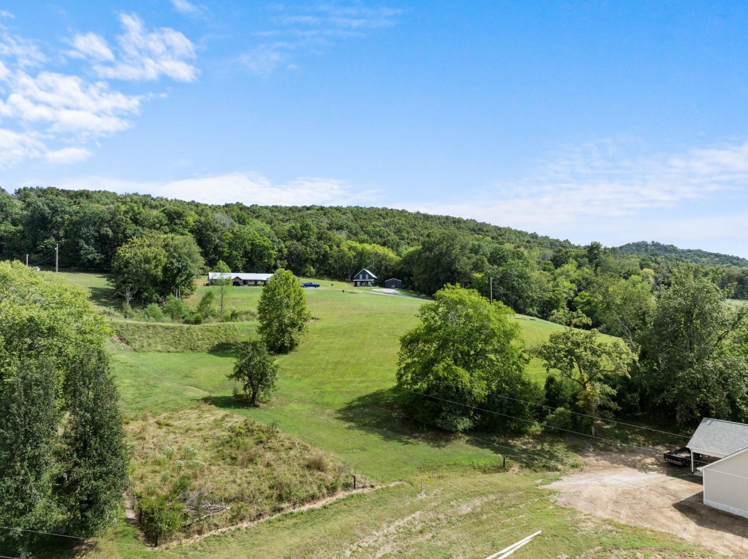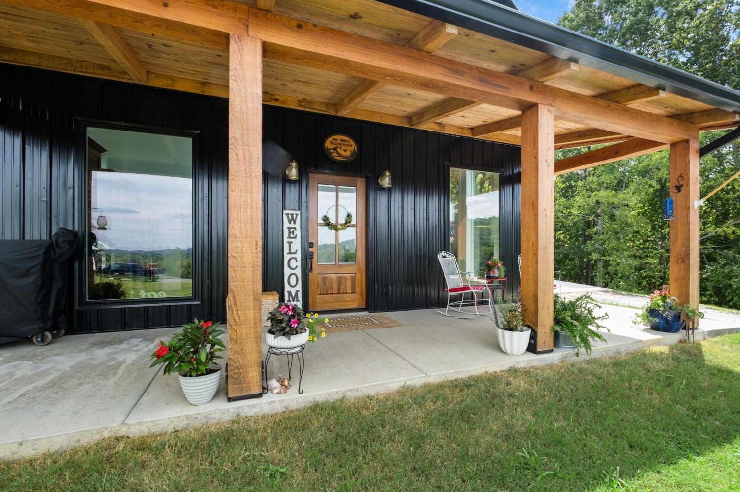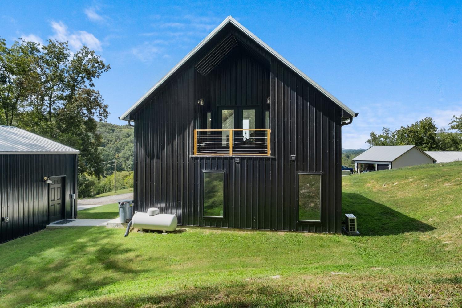 Barndominium Beauty! This newly built stunning home combines rustic charm with modern luxury, offering high-end finishes throughout. Step inside to soaring tongue and groove ceilings, an open-concept floor plan, and designer touches at every turn. The gourmet kitchen features custom cabinetry, upgraded appliances, and a spacious island made of leathered Marble, perfect for entertaining and cooking. The microwave also air fries, the oven is convection and air fryer, the cooktop is induction, and the freezer boasts craft ice. Relax in the serene primary suite with a spa-inspired bath, or enjoy gatherings in the expansive living area filled with natural light and amazing views from inside, or on the second floor balcony. Durable construction meets elegant style, creating a one-of-a-kind property that’s both functional and breathtaking. The serene land is nearly 14 acres of woods with a natural spring, deer and turkey. The detached 2 car garage offers finished space as well as room for all your toys or vehicles and a RV plug. At the base of the parcel there is room to build a shop or park recreational vehicles. Underground electric service means no wires to obstruct your view from the timber framed front porch.On demand propane powered water heater. True country luxury living, and just 45 minutes to Nashville. Bring your rocking chairs for the best porch sitting you can imagine!