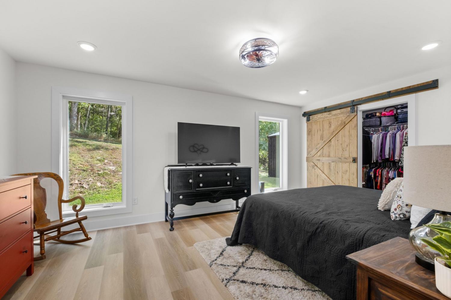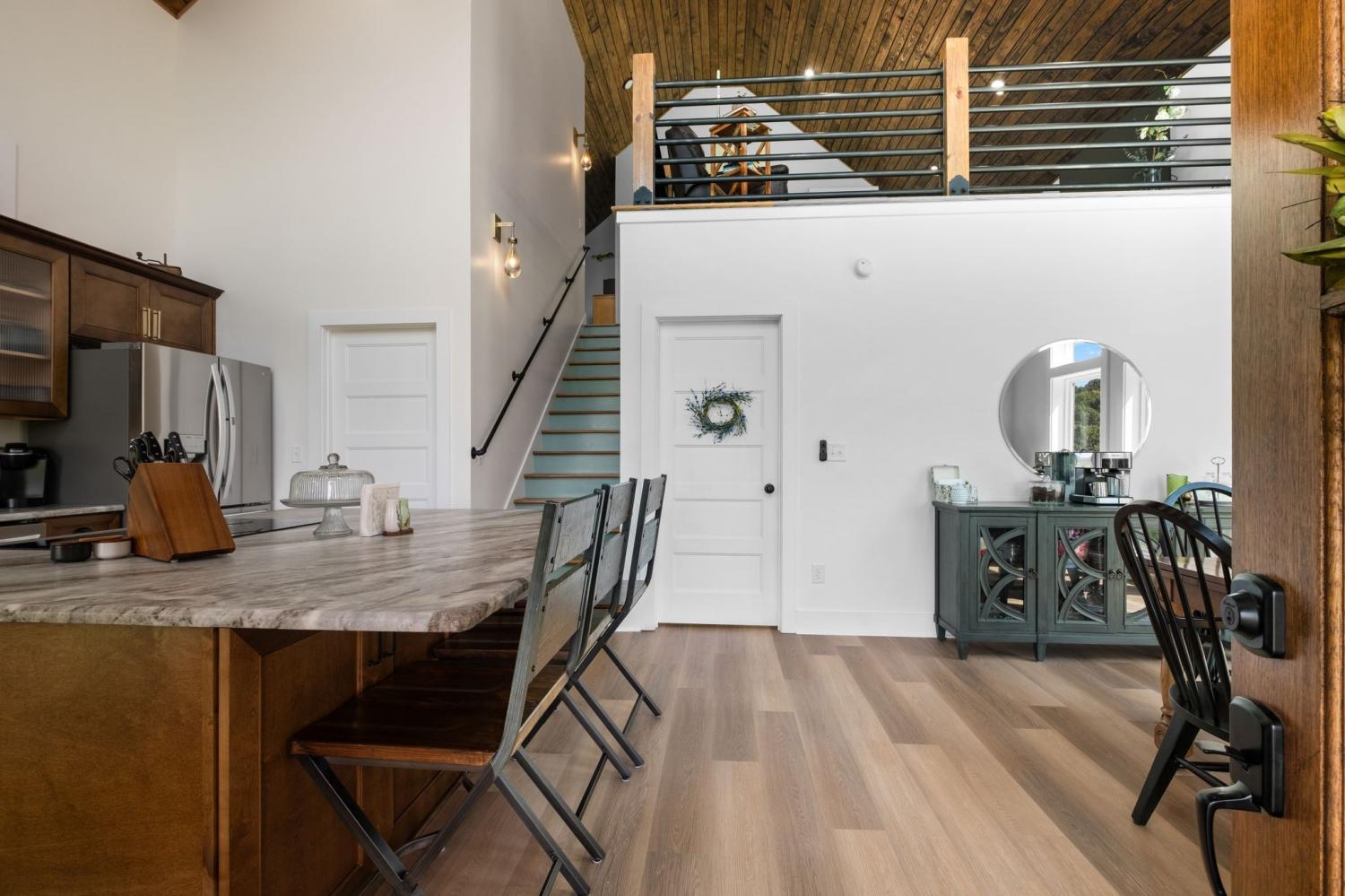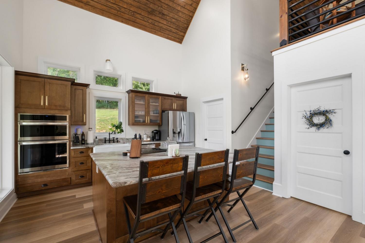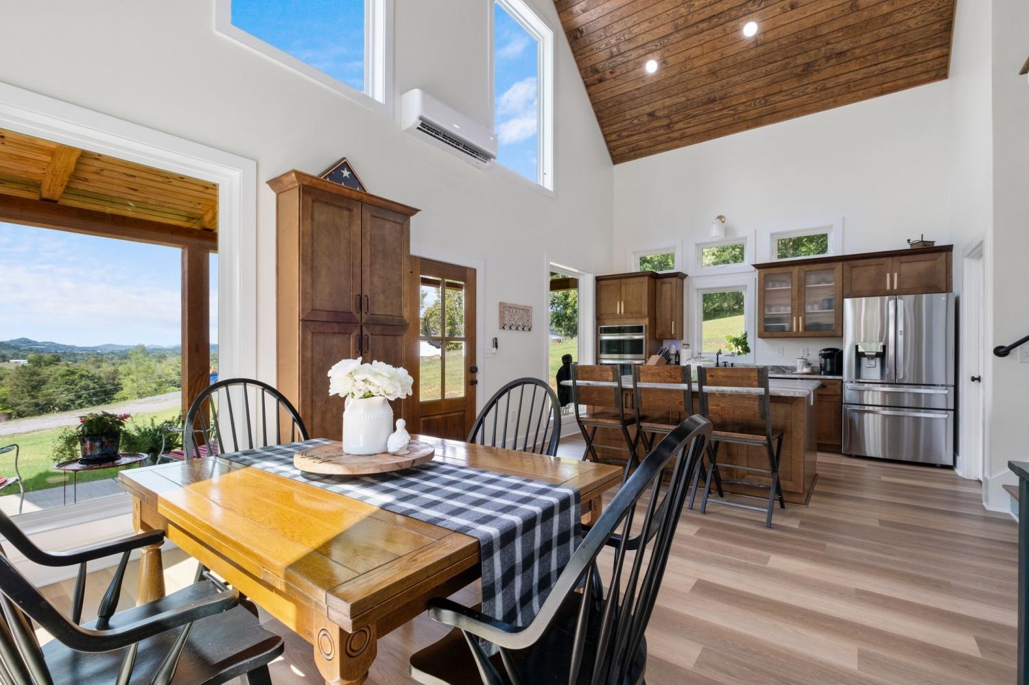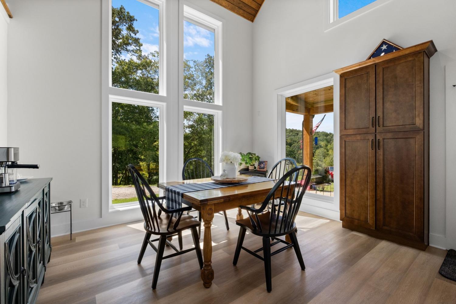 Barndominium Beauty! This newly built stunning home combines rustic charm with modern luxury, offering high-end finishes throughout. Step inside to soaring tongue and groove ceilings, an open-concept floor plan, and designer touches at every turn. The gourmet kitchen features custom cabinetry, upgraded appliances, and a spacious island made of leathered Marble, perfect for entertaining and cooking. The microwave also air fries, the oven is convection and air fryer, the cooktop is induction, and the freezer boasts craft ice. Relax in the serene primary suite with a spa-inspired bath, or enjoy gatherings in the expansive living area filled with natural light and amazing views from inside, or on the second floor balcony. Durable construction meets elegant style, creating a one-of-a-kind property that’s both functional and breathtaking. The serene land is nearly 14 acres of woods with a natural spring, deer and turkey. The detached 2 car garage offers finished space as well as room for all your toys or vehicles and a RV plug. At the base of the parcel there is room to build a shop or park recreational vehicles. Underground electric service means no wires to obstruct your view from the timber framed front porch.On demand propane powered water heater. True country luxury living, and just 45 minutes to Nashville. Bring your rocking chairs for the best porch sitting you can imagine!
